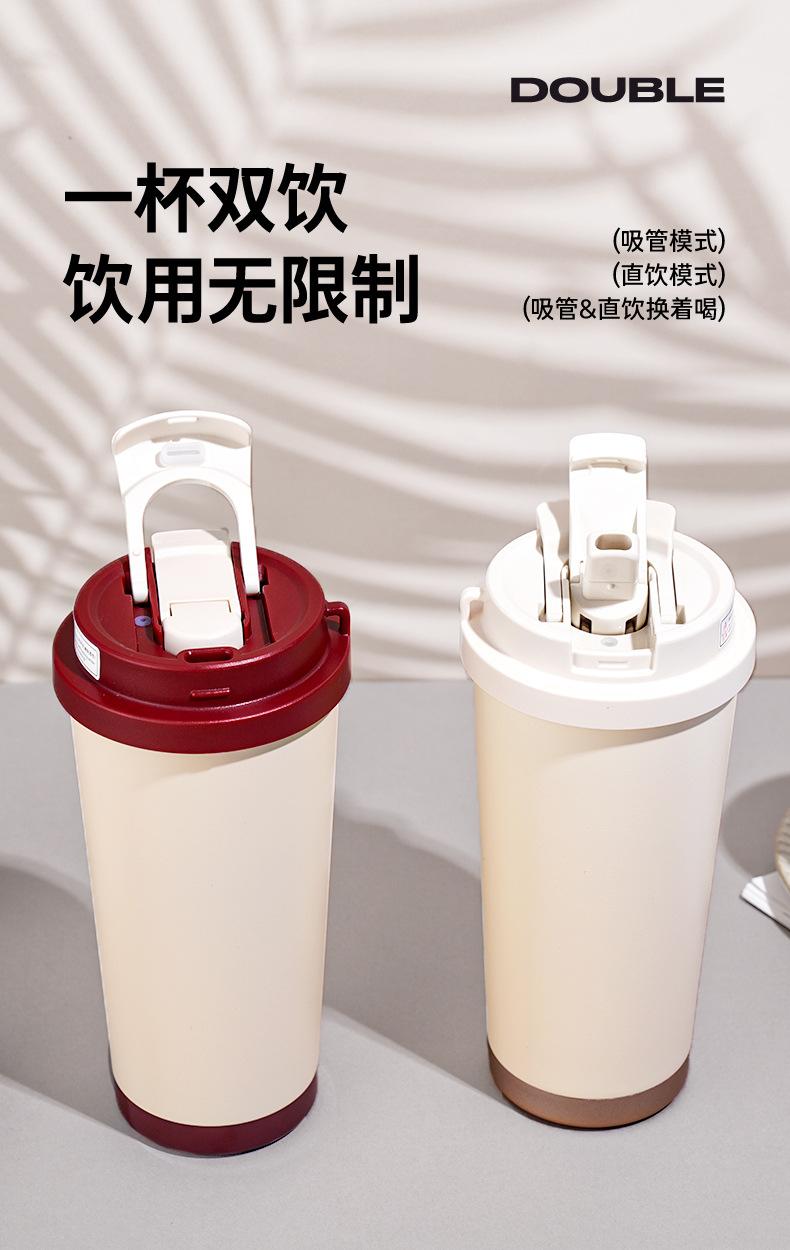 Taza térmica de café con revestimiento de acero inoxidable 316, taza doble de moda simple con pajita, taza de regalo con logotipo de fórmula