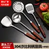 Juego de Espátulas Engrosadas de Acero Inoxidable 304 para Uso Doméstico, Utensilios de Cocina Anti-quemaduras, Cuchara Sopera, Espumadera, Juego de Espátulas con Mango de Madera