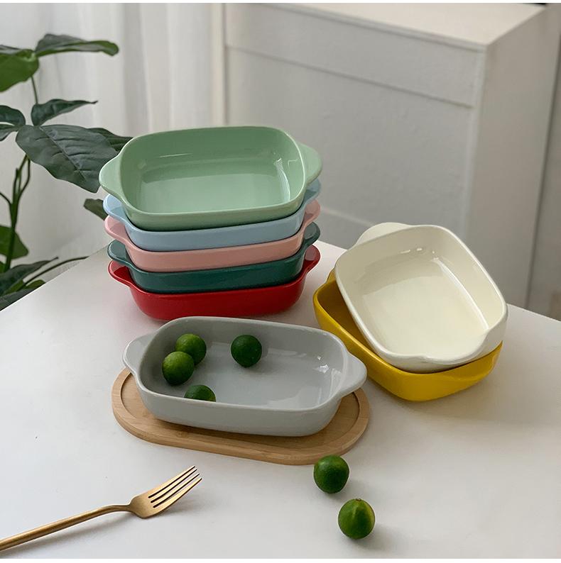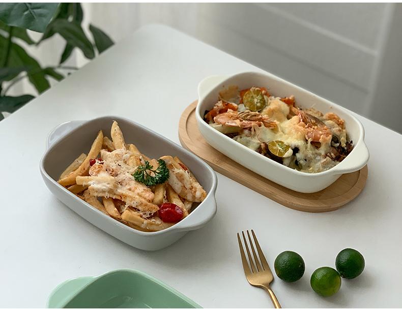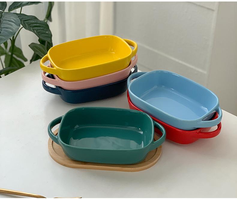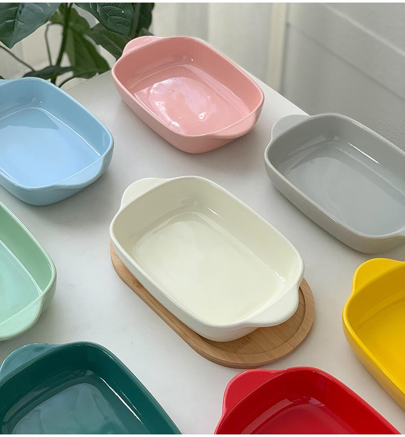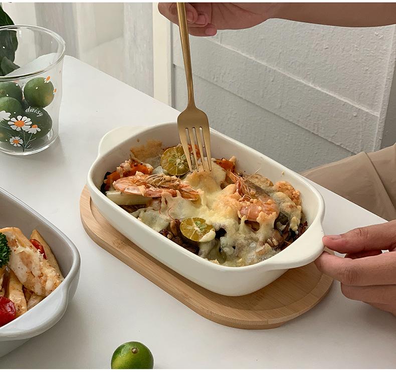Plato de cerámica para barbacoa doméstica, plato de arroz horneado, plato occidental, plato para hornear, plato hondo para tiramisú, plato hondo para hornear binaural
