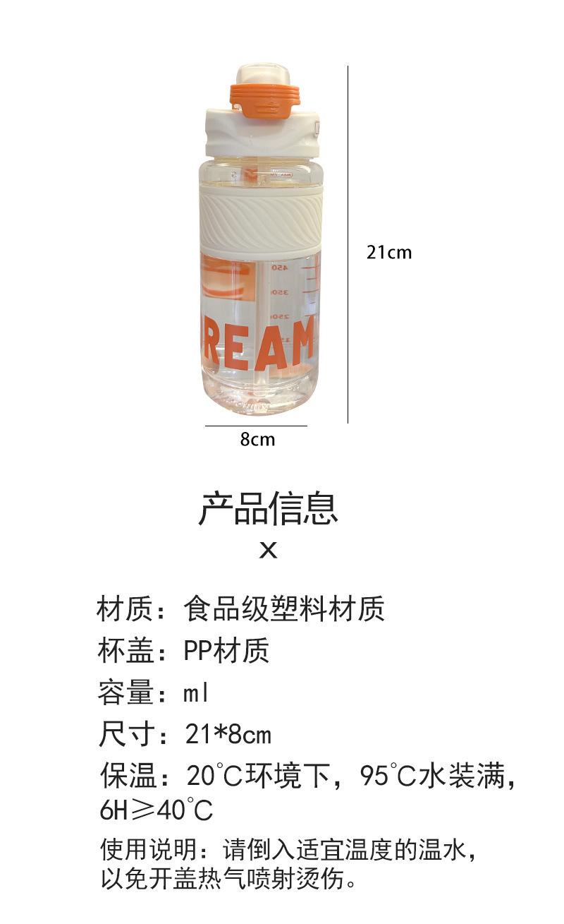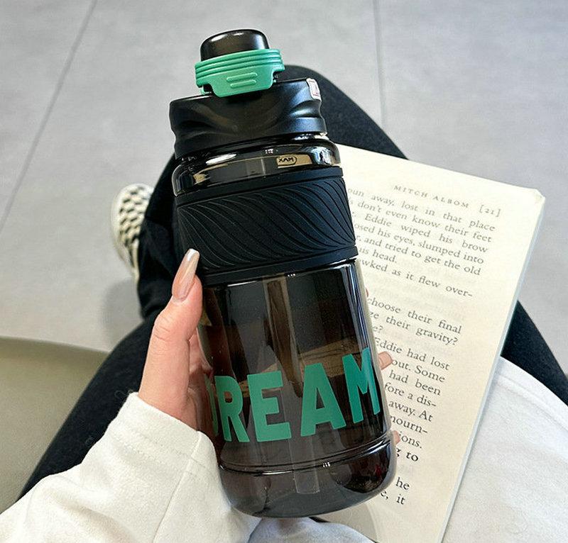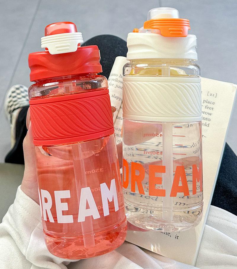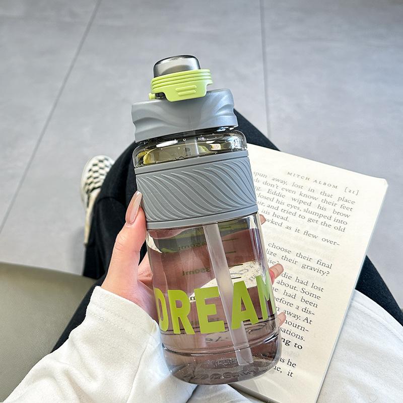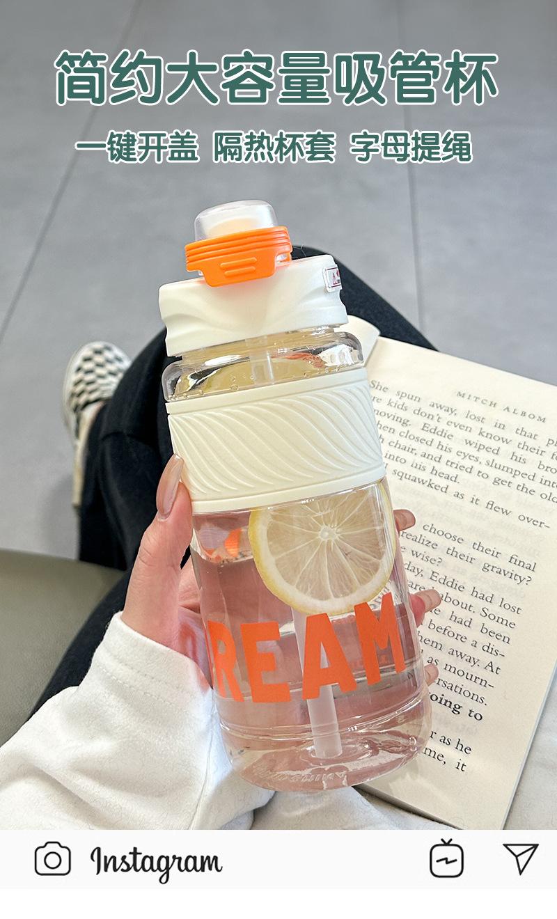 Taza de agua deportiva simple de gran capacidad, taza de plástico de verano de alto color con pajita, botella de agua deportiva, taza de té