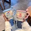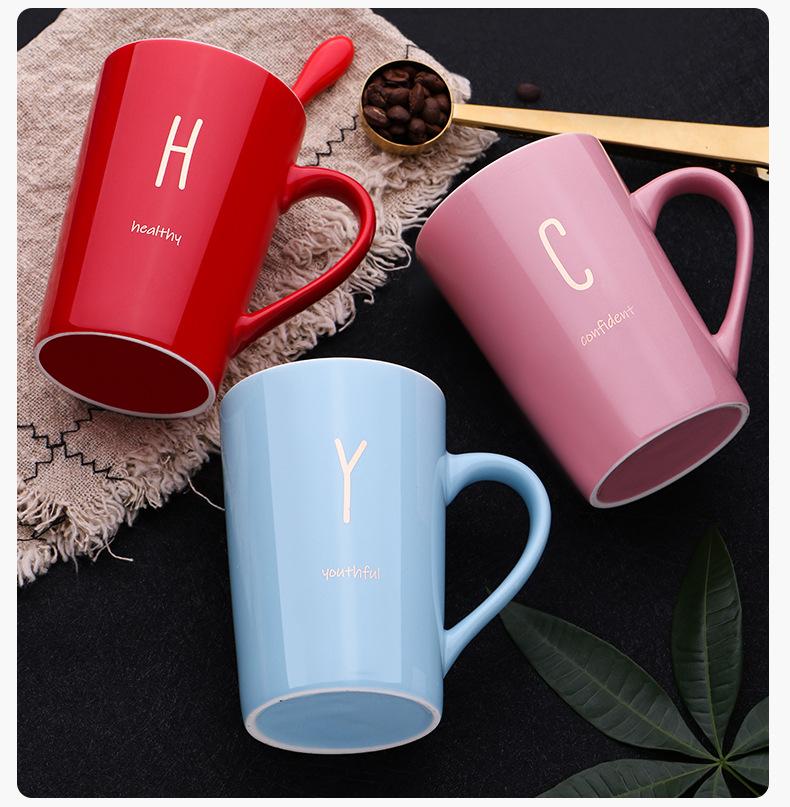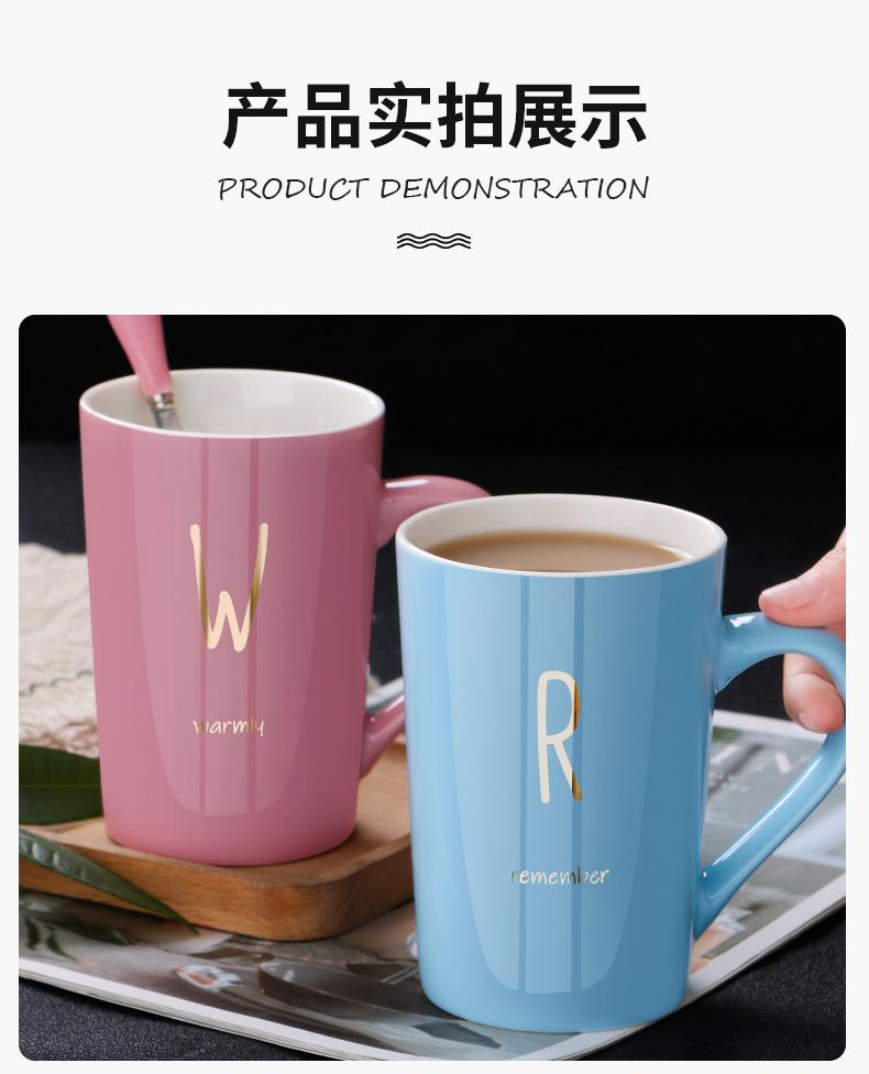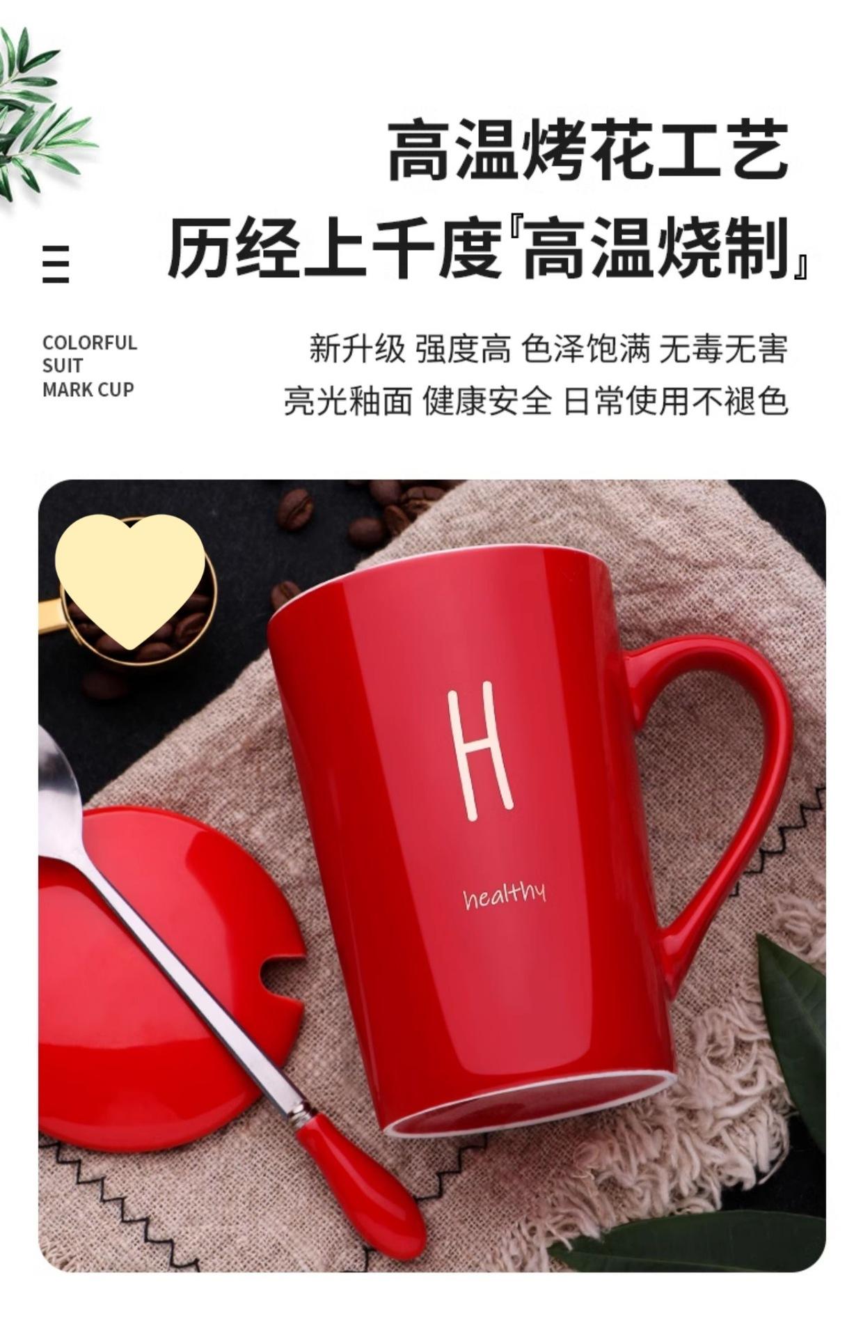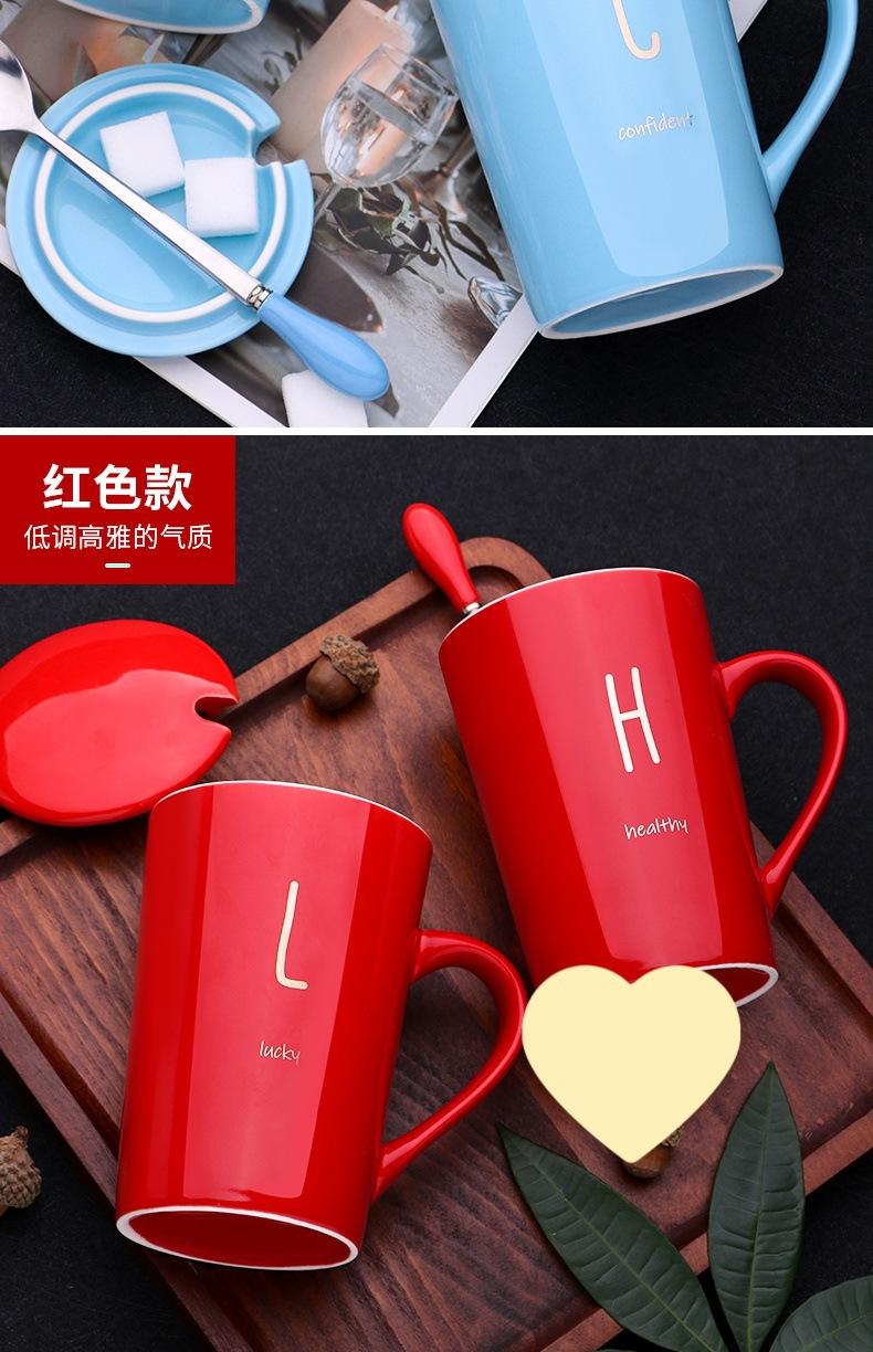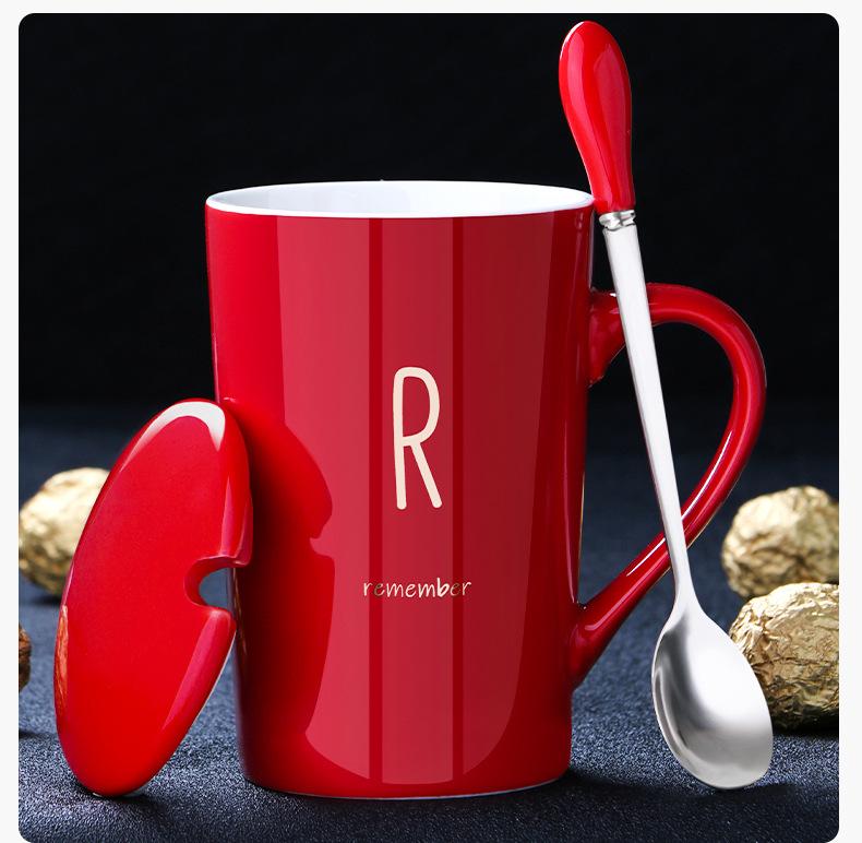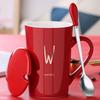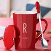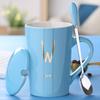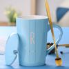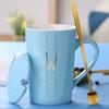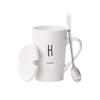 Taza de cerámica creativa personalizada con tapa y cuchara, taza de agua potable, moderna taza de café, té y leche para hombres y mujeres.