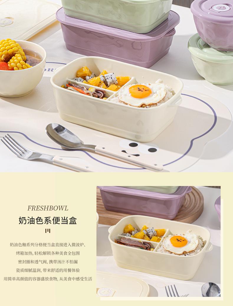 [cream series] lunch box with lid-cream yellow, [cream series] lunch box with lid-milk green, [cream series] l...