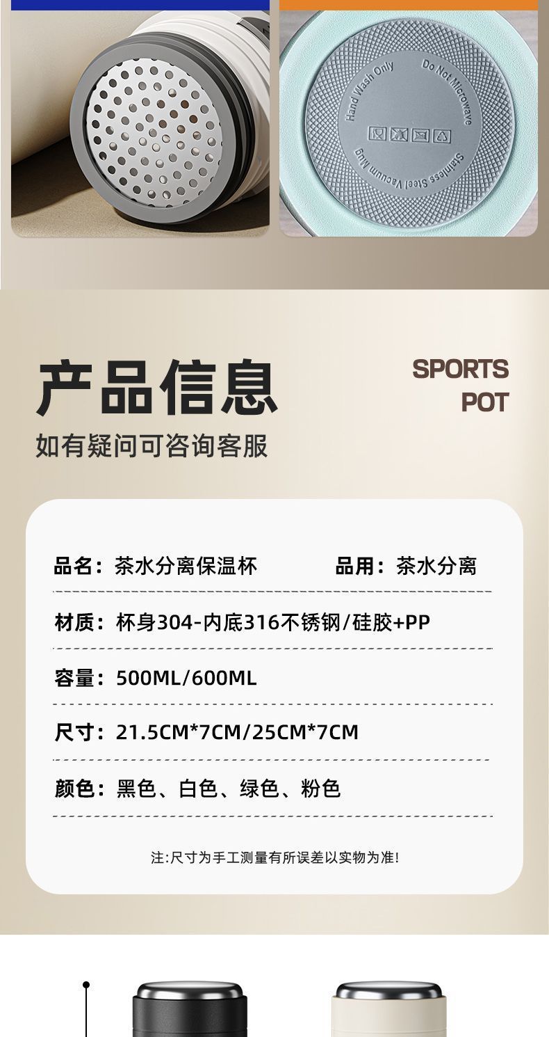 Especificaciones del producto: 500ml: 6.5*22CM/320g 600ml: 6.5*25cm/355g