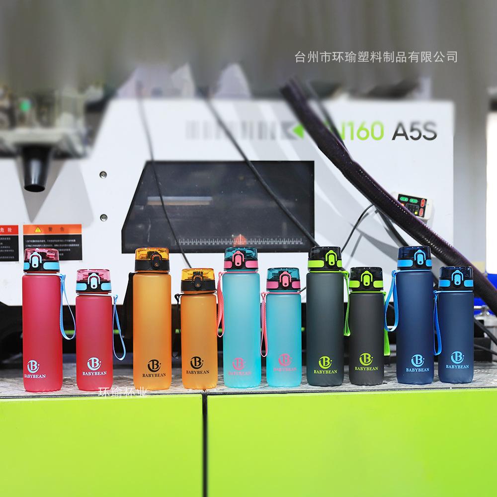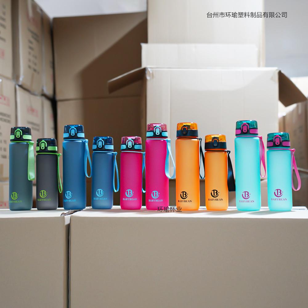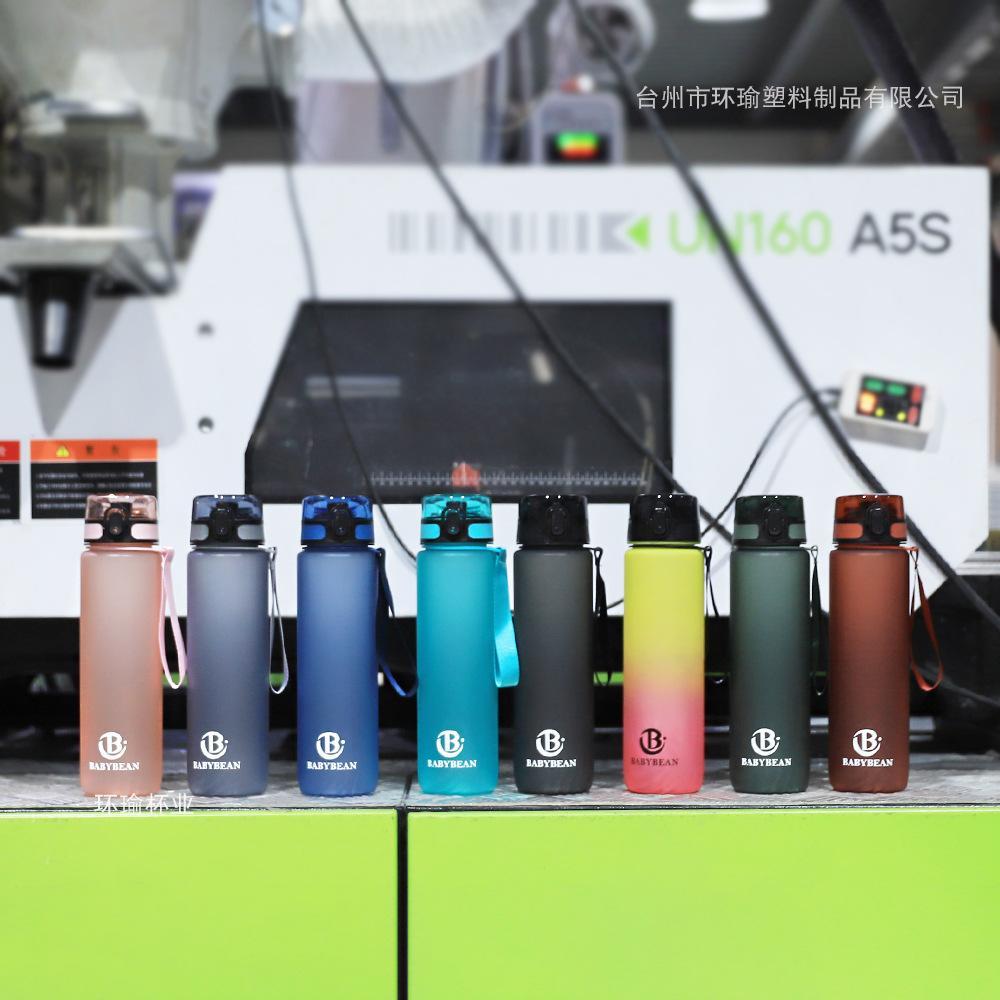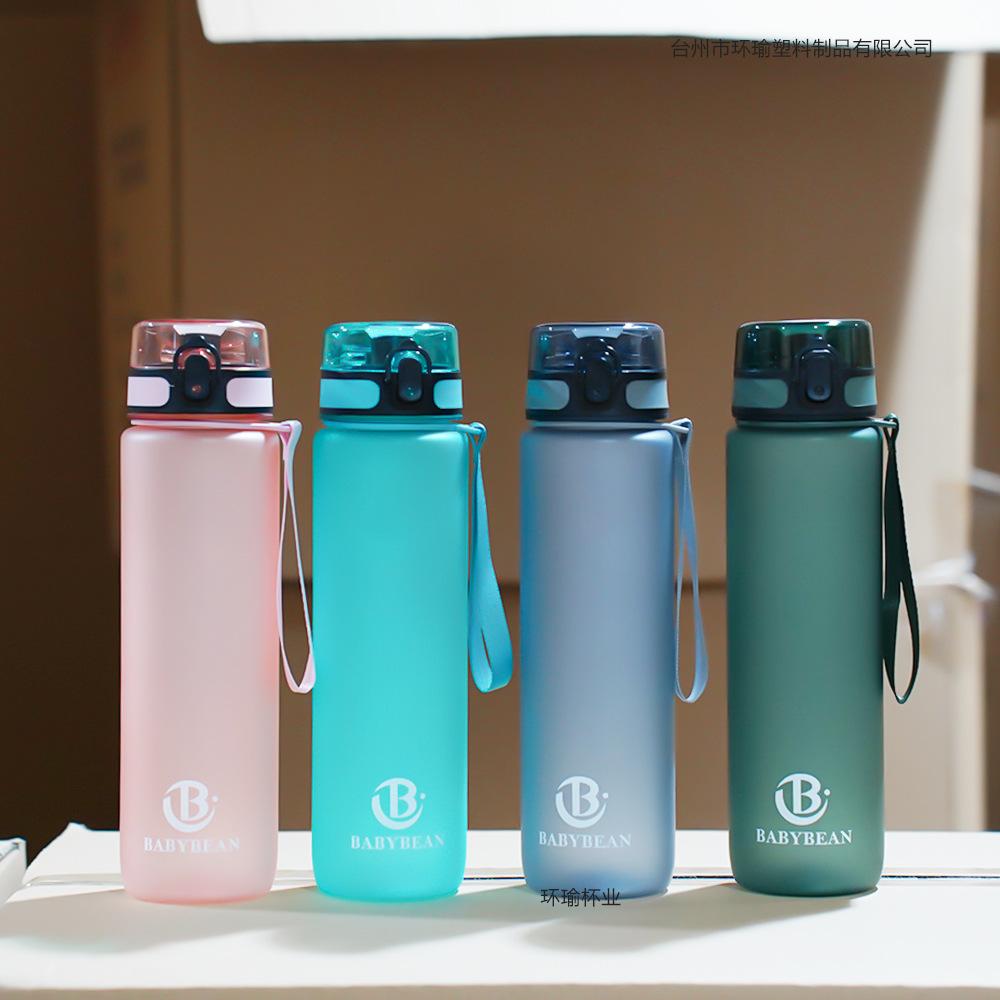 Taza de agua transfronteriza de 1L 750ml con tapa elástica, taza para beber directamente con cuerda, taza de plástico esmerilado, cantimplora deportiva para exteriores