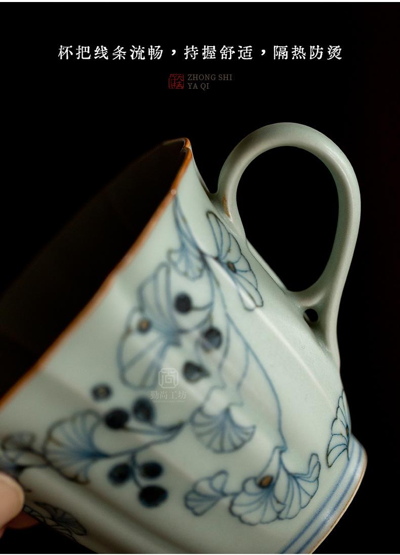 Taza de café antigua de Azure Ruyao, taza de cerámica azul y blanca para oficina, taza personal, taza de té para el hogar y la oficina.