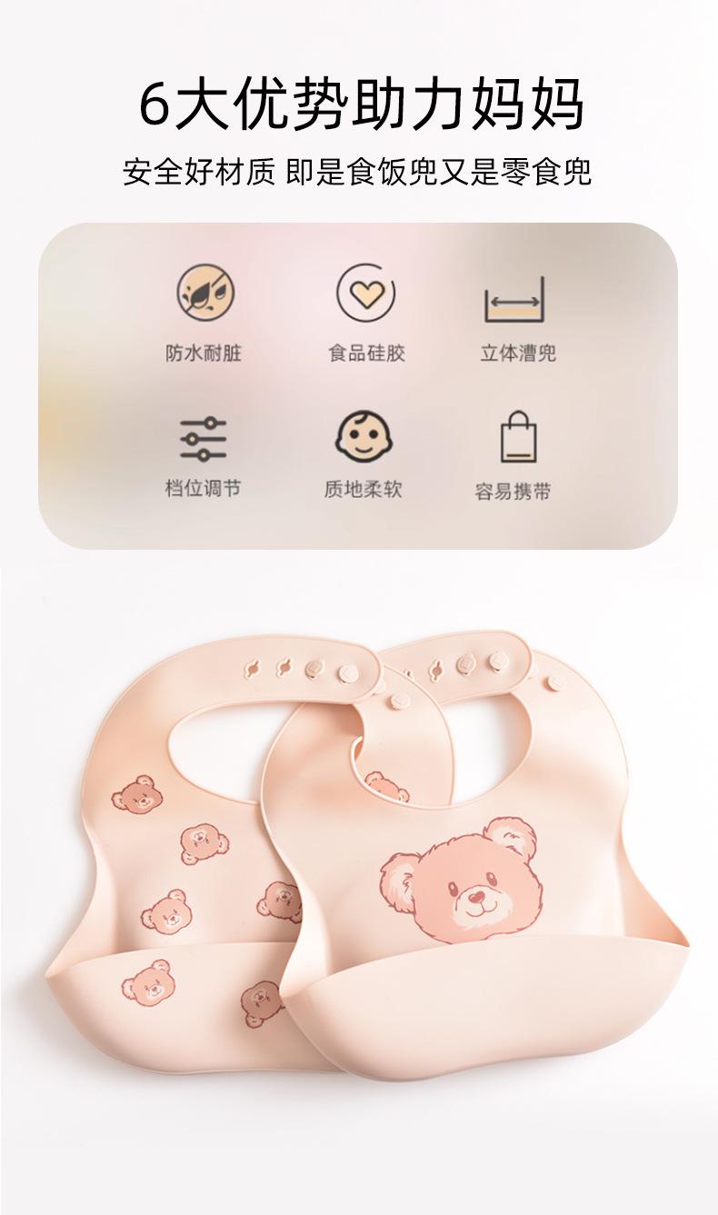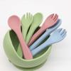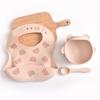 3D beige bear head + beige bear bowl + beige silicone fork spoon