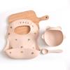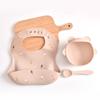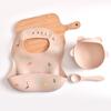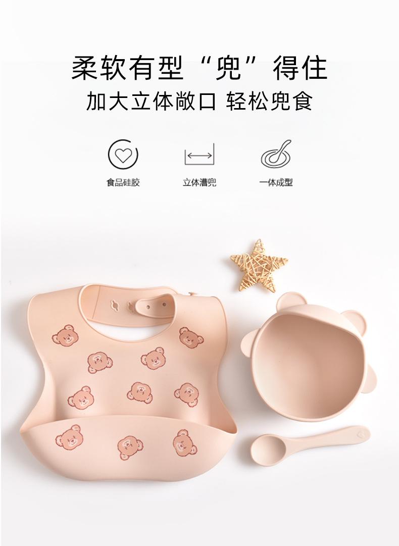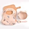 Cuenco de suplemento alimenticio para niños con ventosa, babero de comida, entrenamiento especial para bebés, tenedor y cuchara de silicona, vajilla para niños.