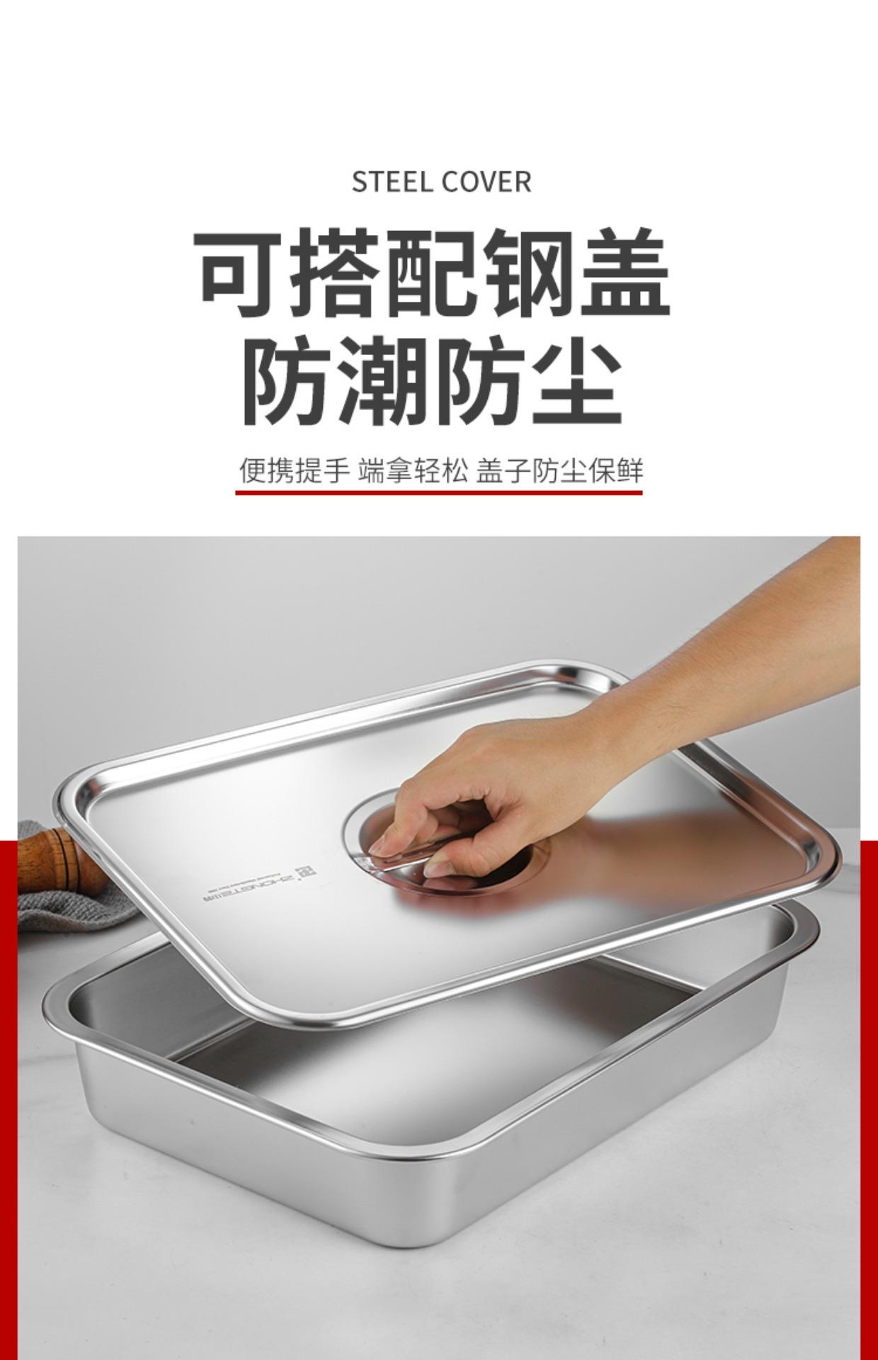 Lavabo Cuadrado de Acero Inoxidable 304 Bandeja Rectangular Lavabo para Alimentos de Cantina Lavabo para Buffet Lavabo para Porciones Plato para Pescado a la Plancha con Tapa Caja Cuadrada