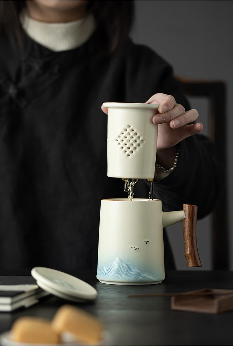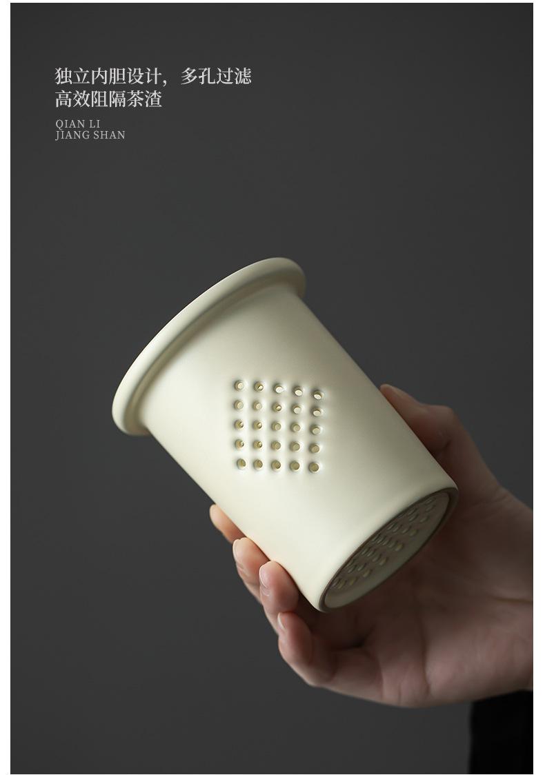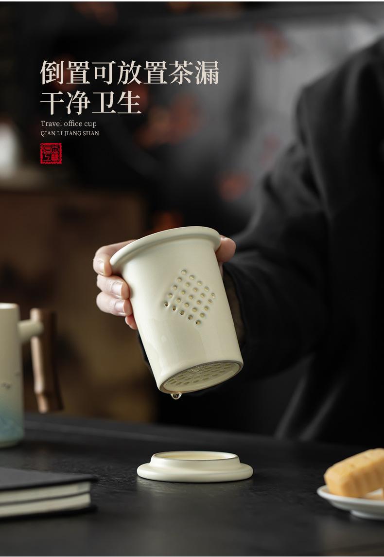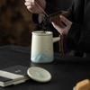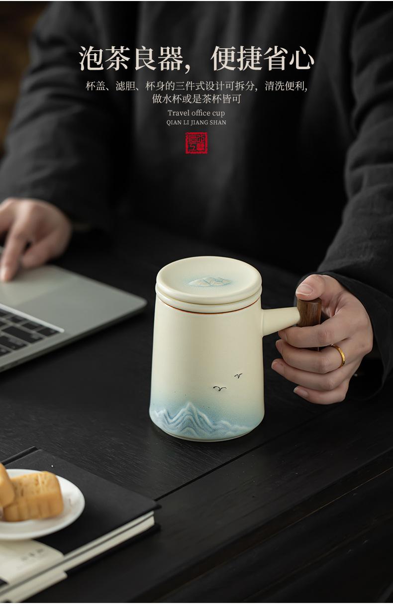 Taza de té de cerámica Far Mountain con filtro, taza de separación de té, taza de agua de oficina, taza de té portátil con tapa