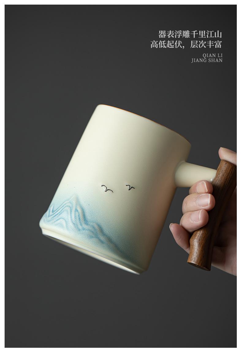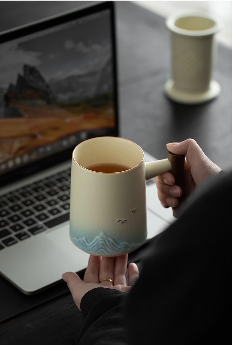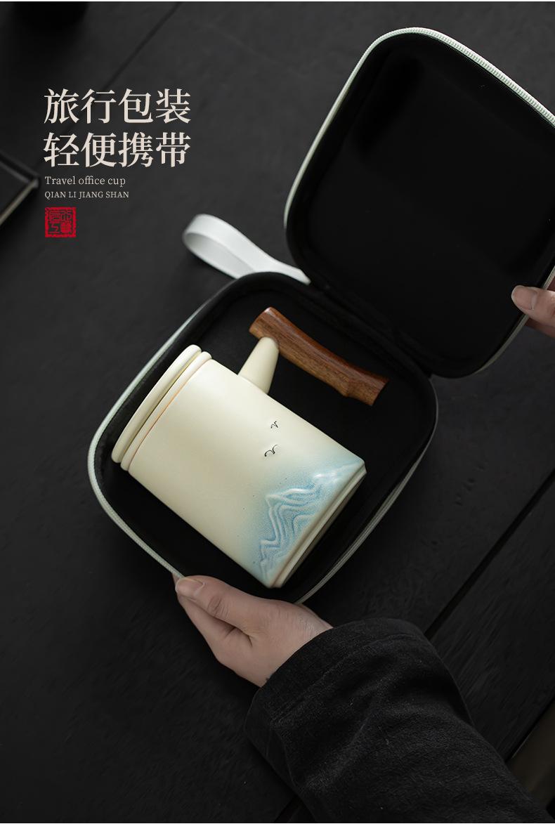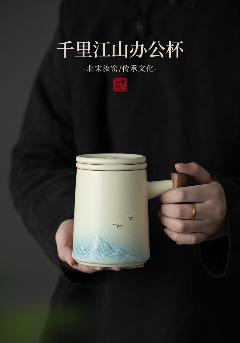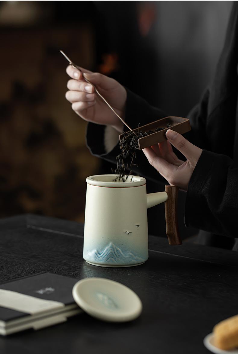 Taza de té de cerámica Far Mountain con filtro, taza de separación de té, taza de agua de oficina, taza de té portátil con tapa