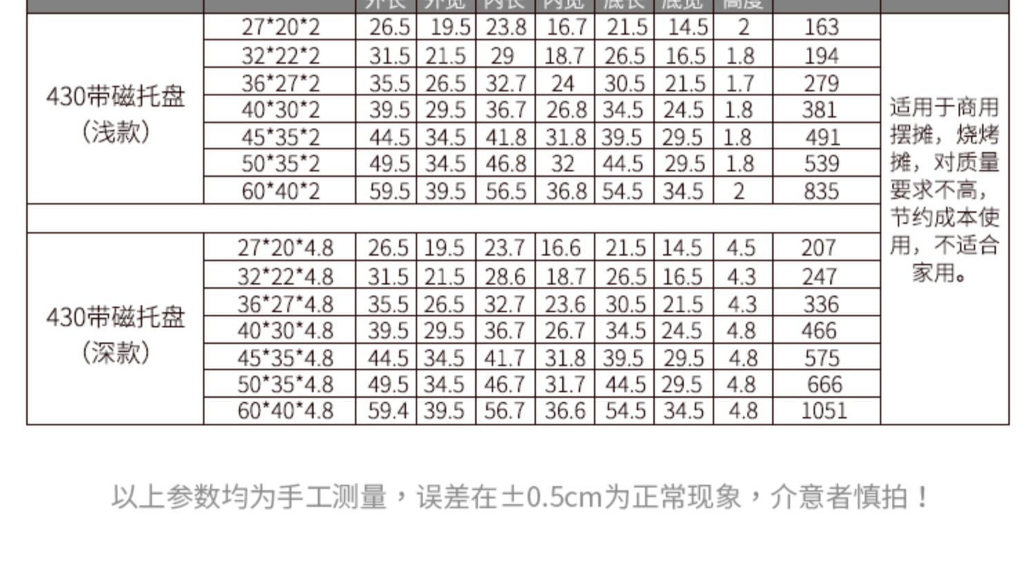 Shallow plate 60*40*2cm 07 extra thick (magnetic), Shallow plate 50*35*2cm 07 extra thick (magnetic), Shallow ...