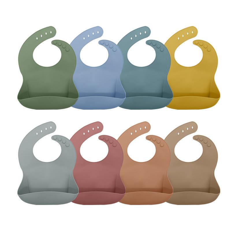 Baberos de silicona para bebés con impresión por almohadilla, de grado alimenticio OEM, disponibles en stock transfronterizo.