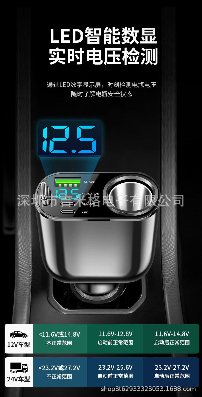 6. Diseño de contacto elástico de metal, adecuado para puertos de encendedor de cigarrillos de diferentes tamaños, puede soportar una entrada de voltaje amplio de 12 V/24 V, compatible con la mayoría de los modelos del mercado.