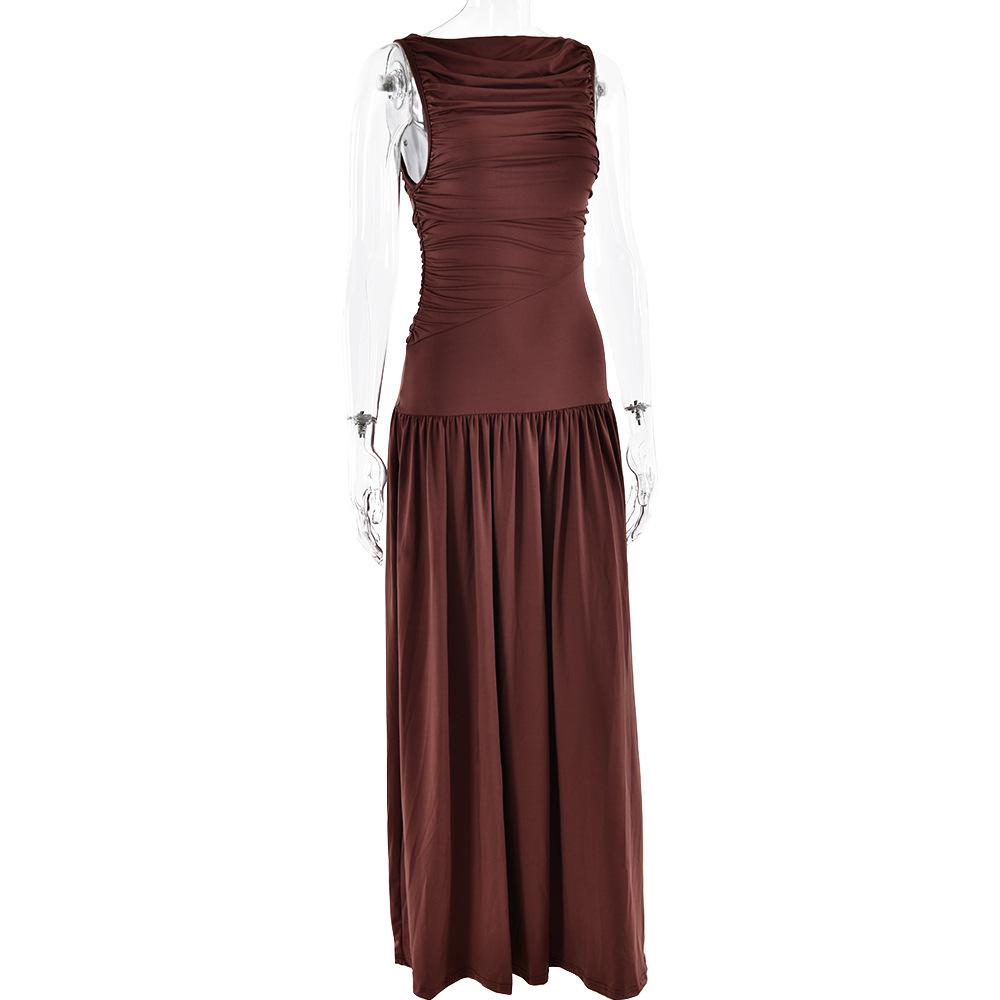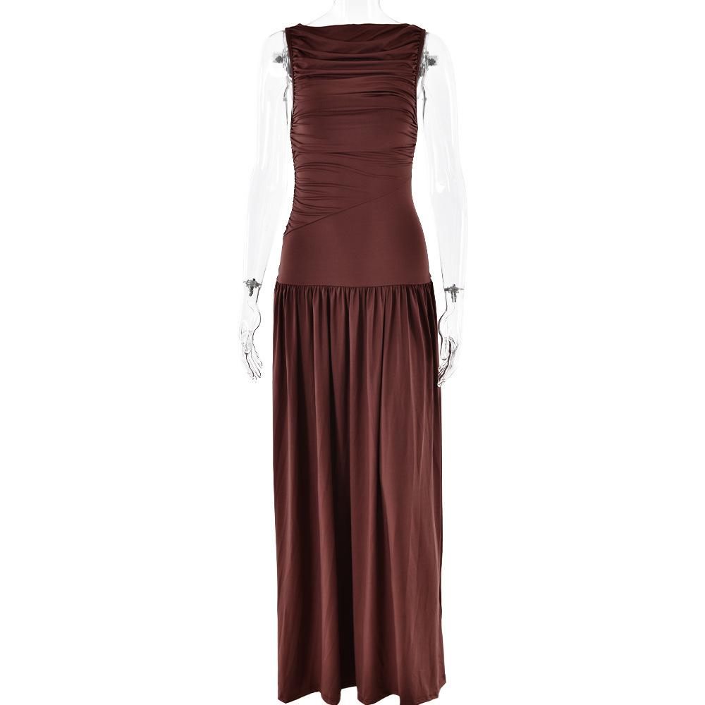 Vestido ajustado plisado sin mangas, sexy, de color sólido, de estilo europeo y americano, nueva moda transfronteriza, venta al por mayor