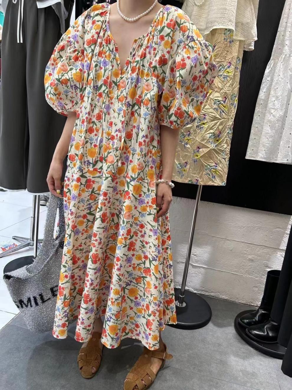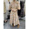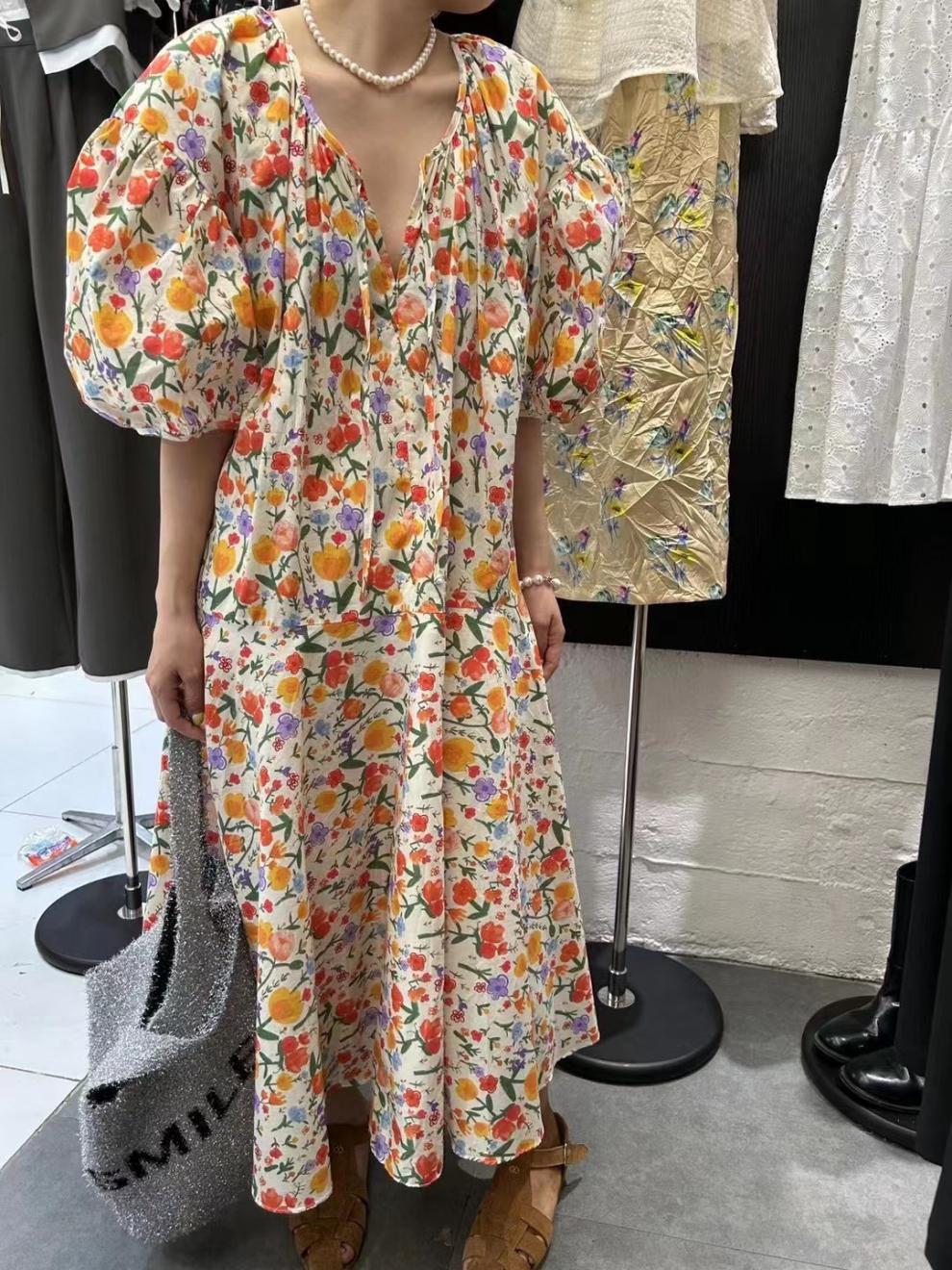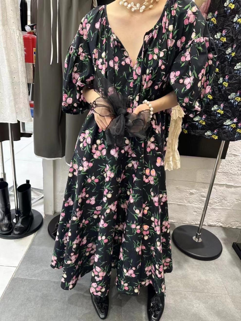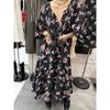 Diseño Nicho Vestido Cuello en V Floral Manga Abullonada 2025 Nuevo para Mujer Retro Francés Cintura Alta Ajustado Falda Larga