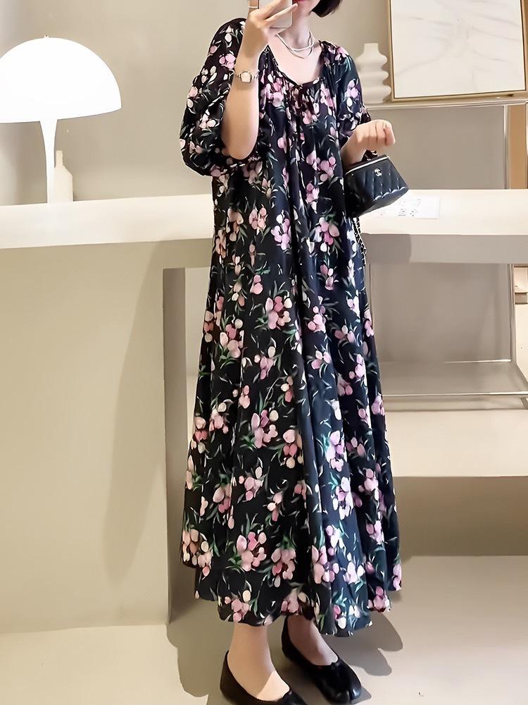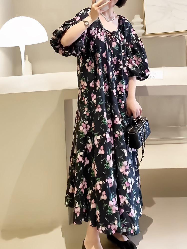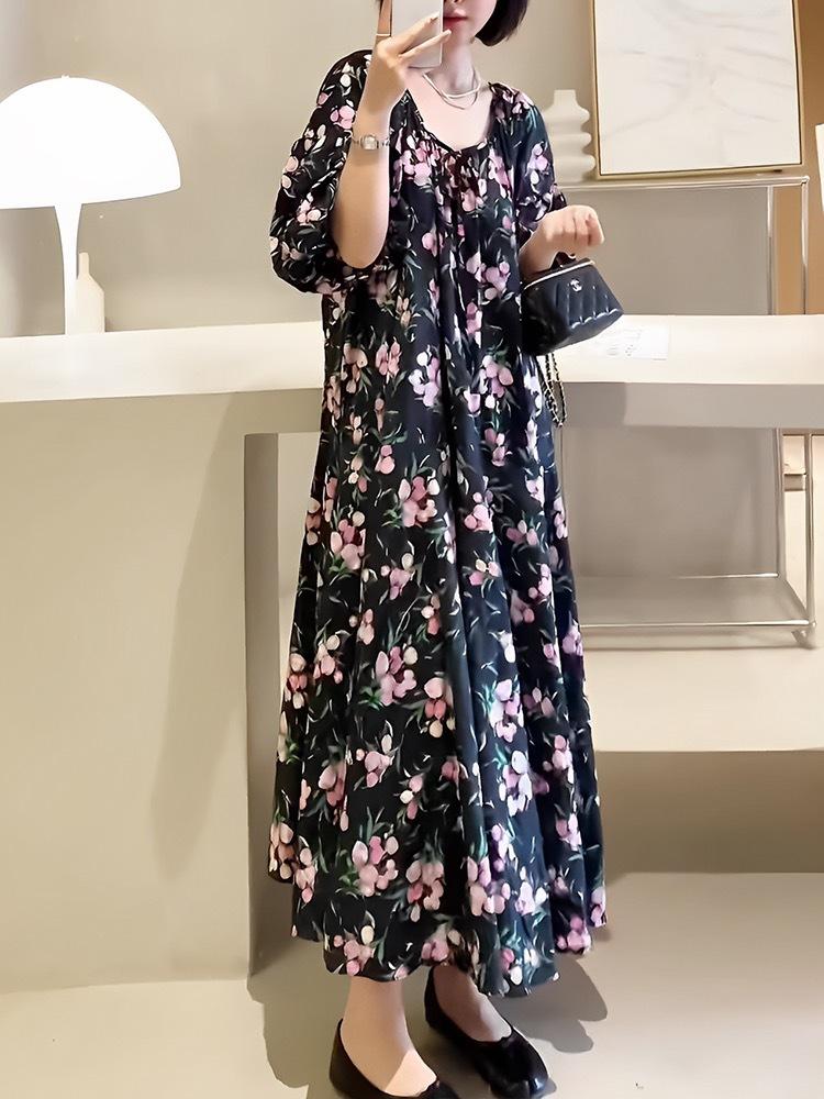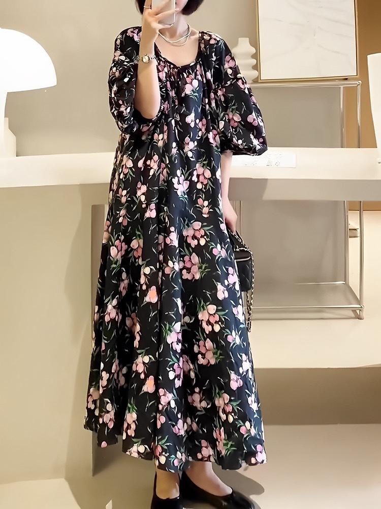 Diseño Nicho Vestido Cuello en V Floral Manga Abullonada 2025 Nuevo para Mujer Retro Francés Cintura Alta Ajustado Falda Larga