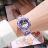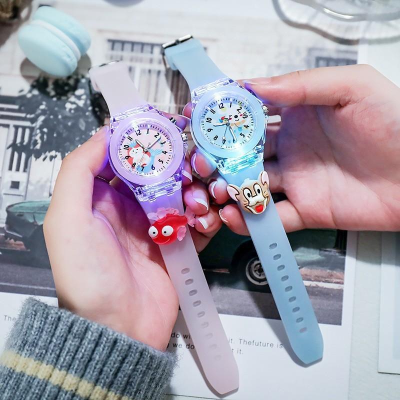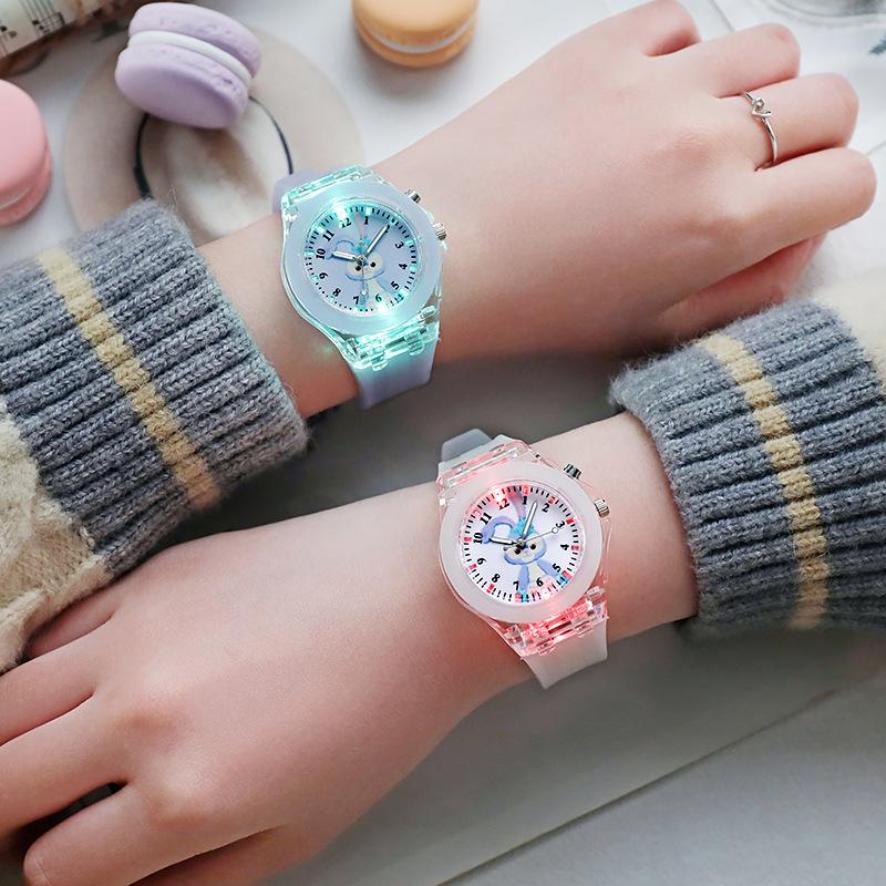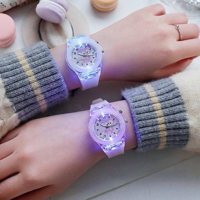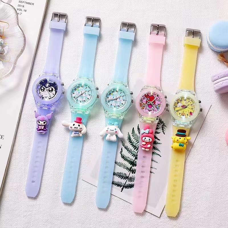 Reloj de dibujos animados tridimensional 3D Sanrio colorido luminoso reloj de cuarzo para niños melodía gato KT estudiante puntero reloj de pulsera