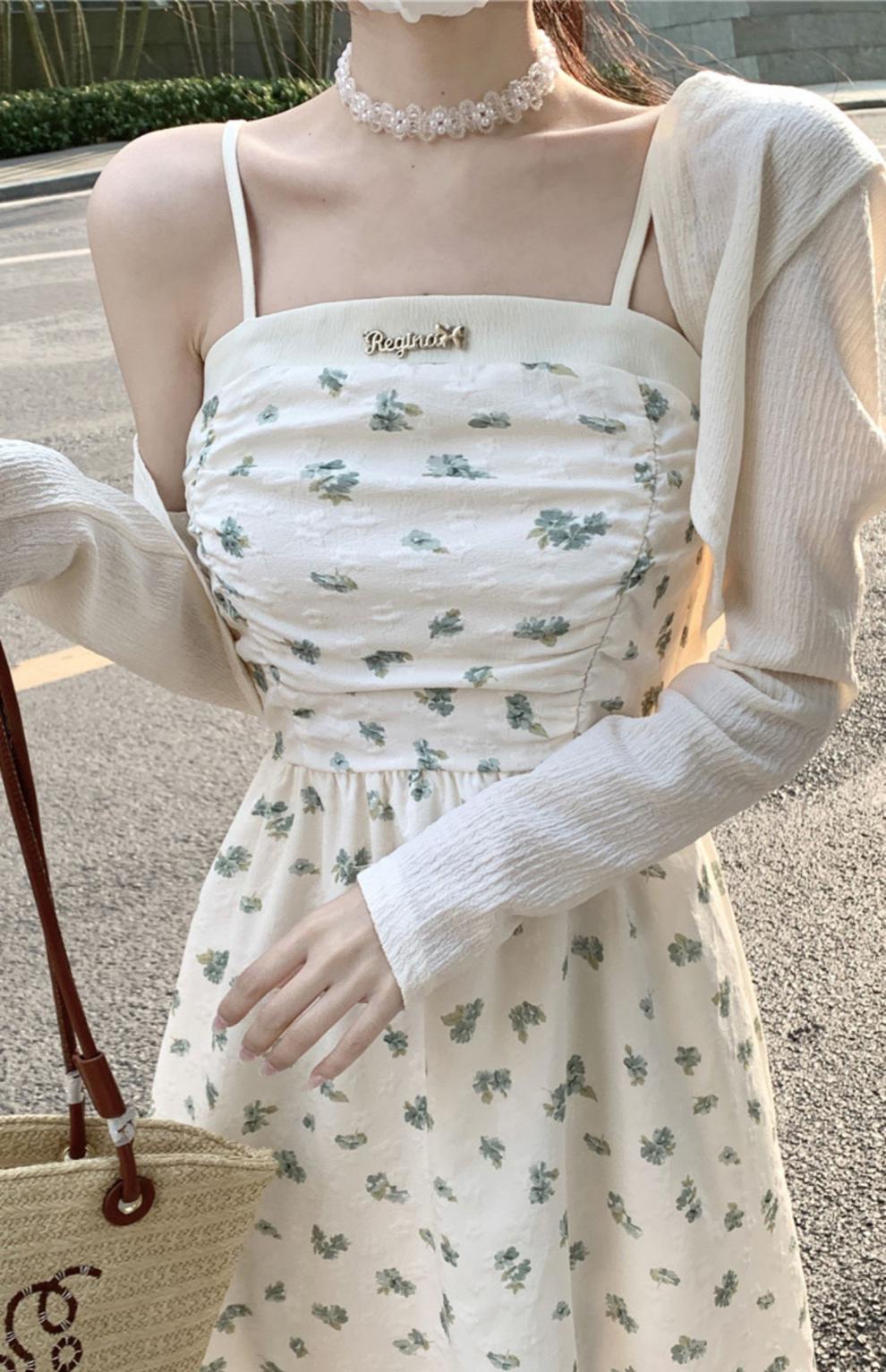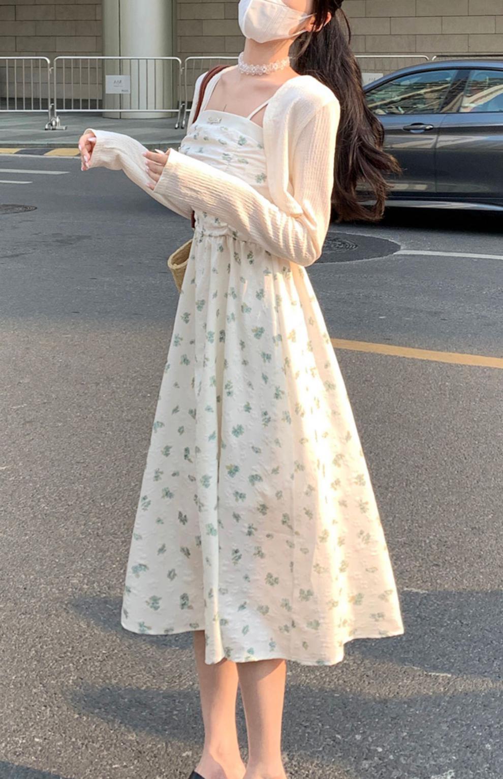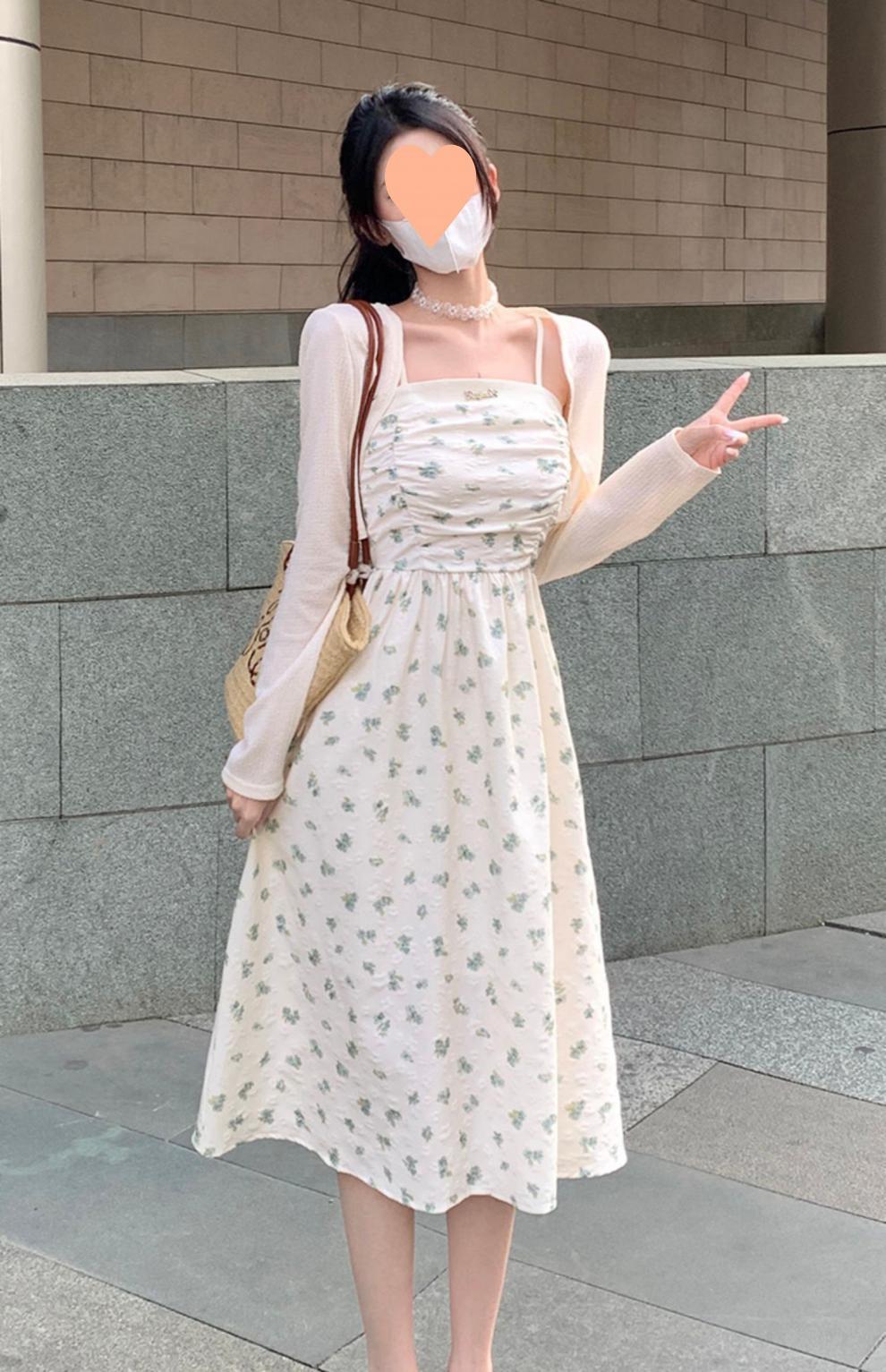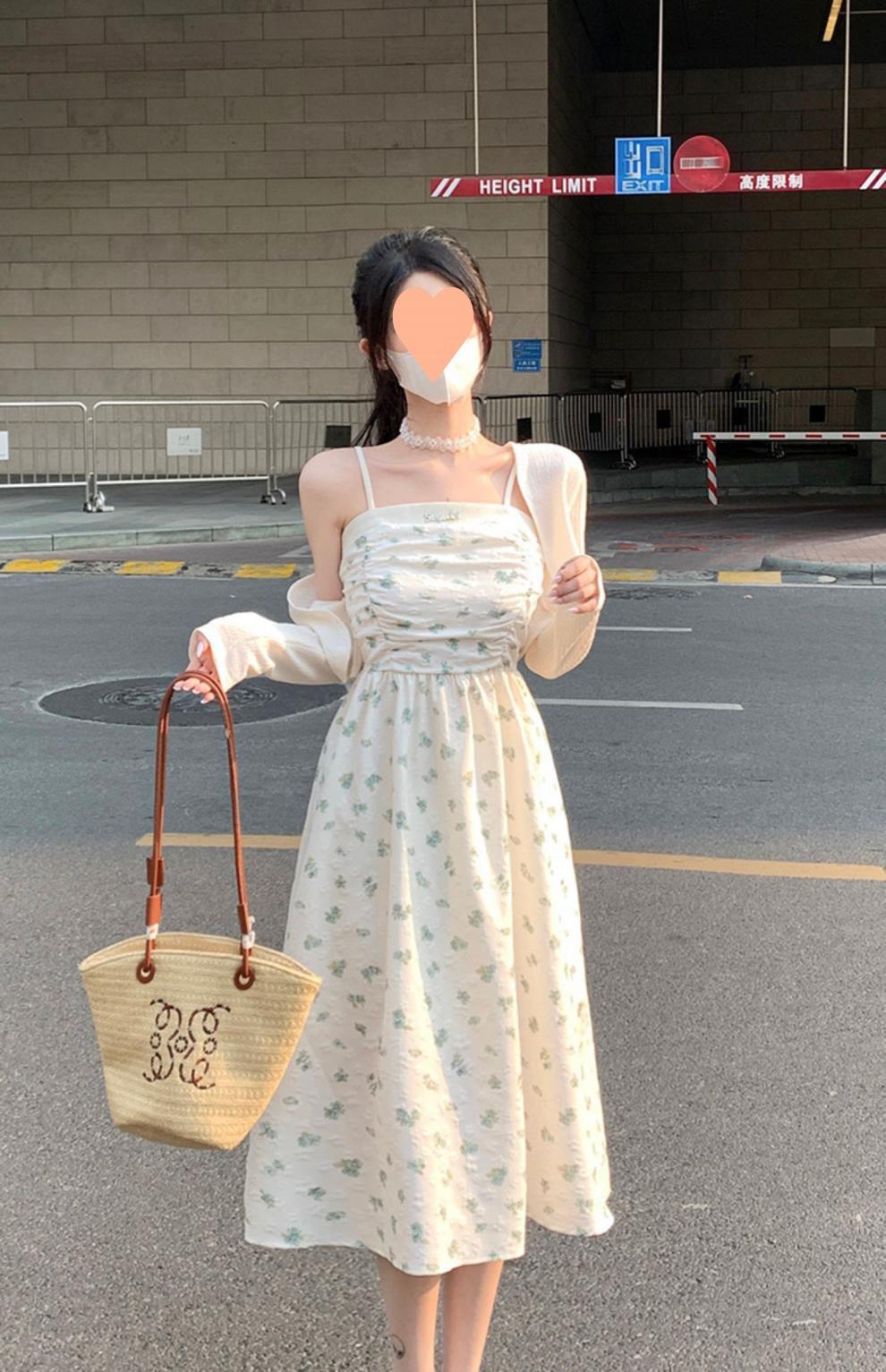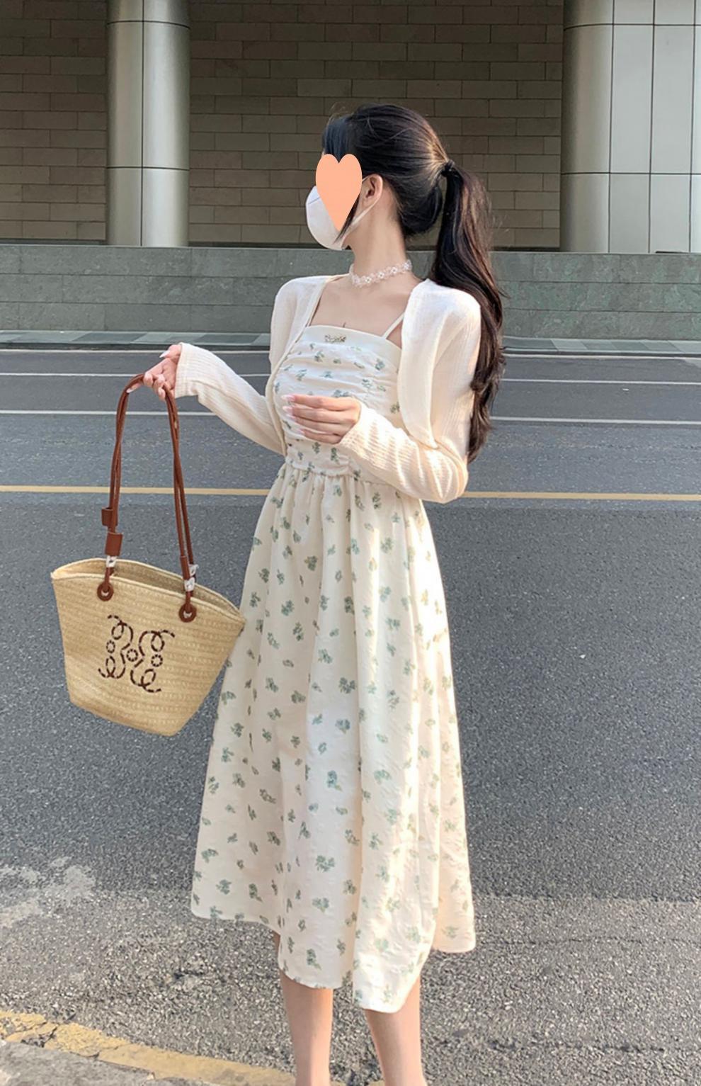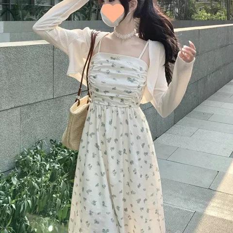 [Original + Rango] Vestido de Dos Piezas a la Moda Look Adelgazante Cintura Elegante Verano 2025 Floral Falda Larga
