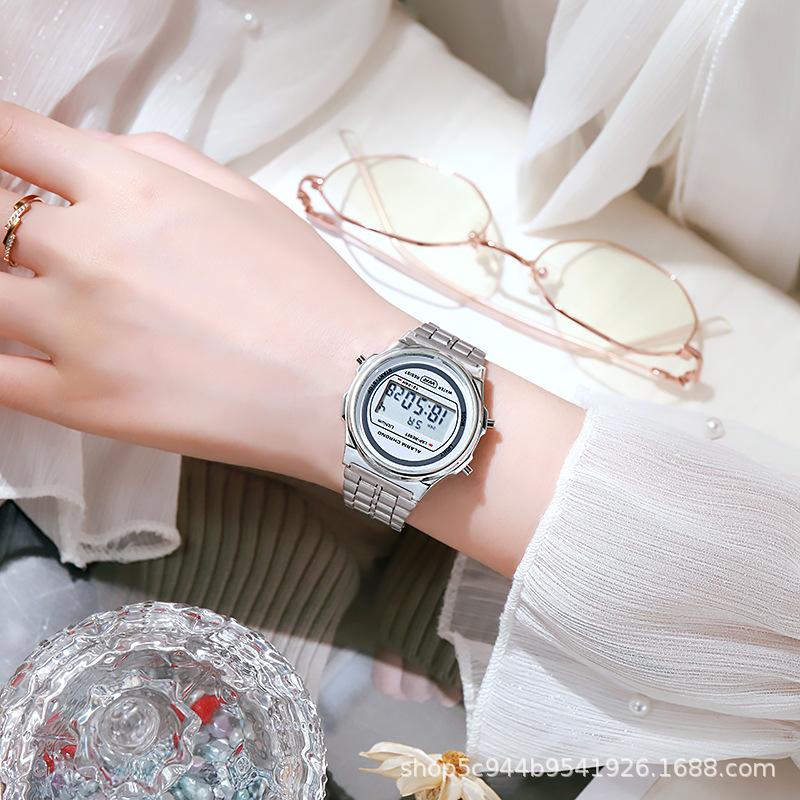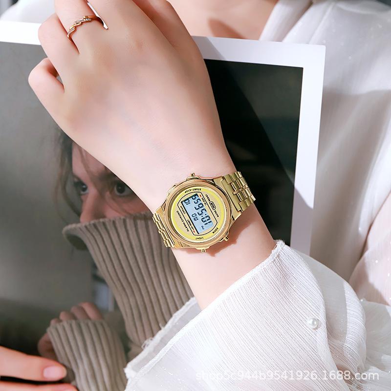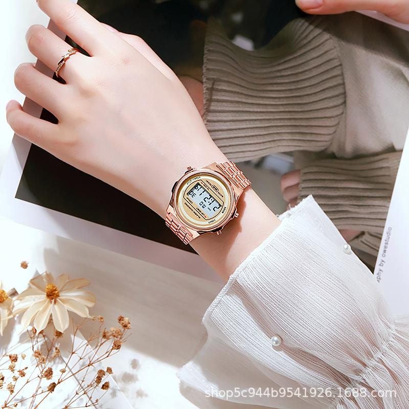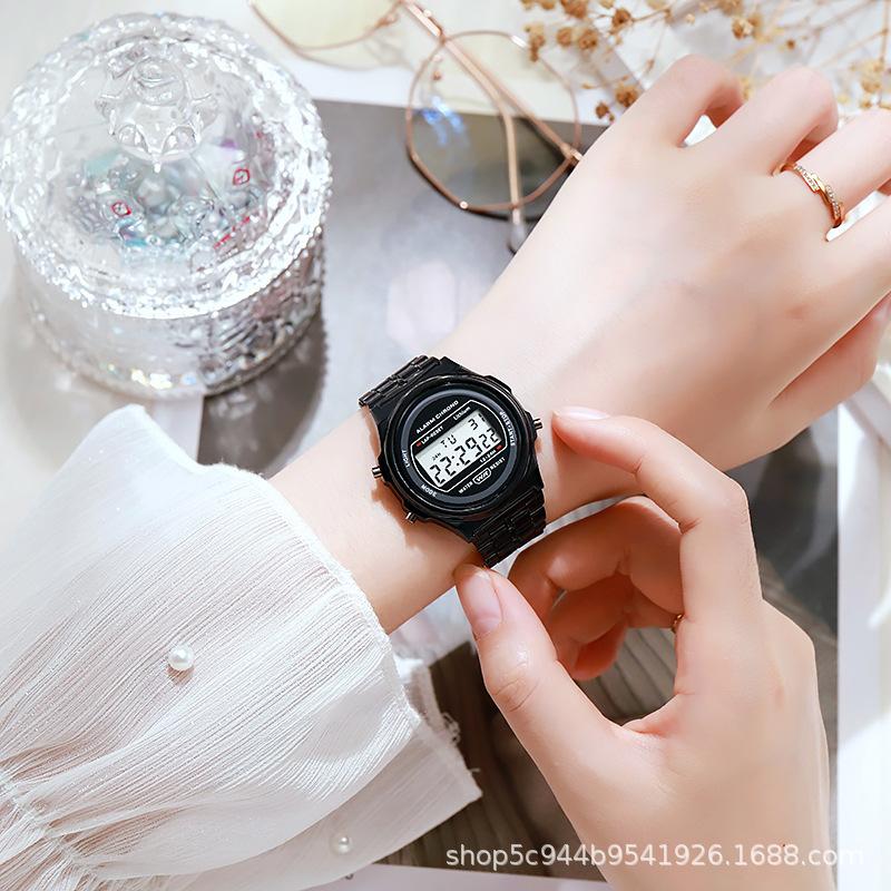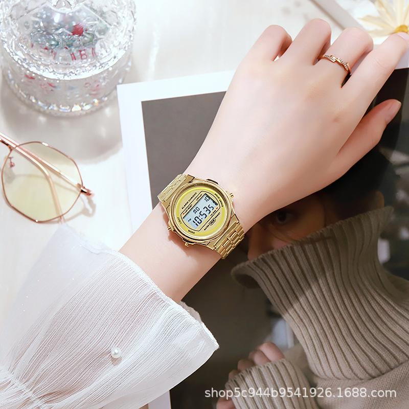 Reloj electrónico LED con correa de acero 2023, ultrafino, dorado y plateado, luz fría, F91W, correa de acero, estilo Harajuku, moda, multifunción, mesa