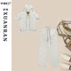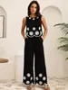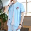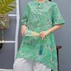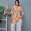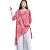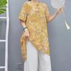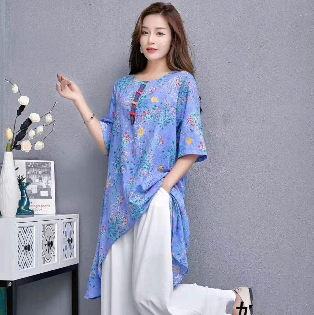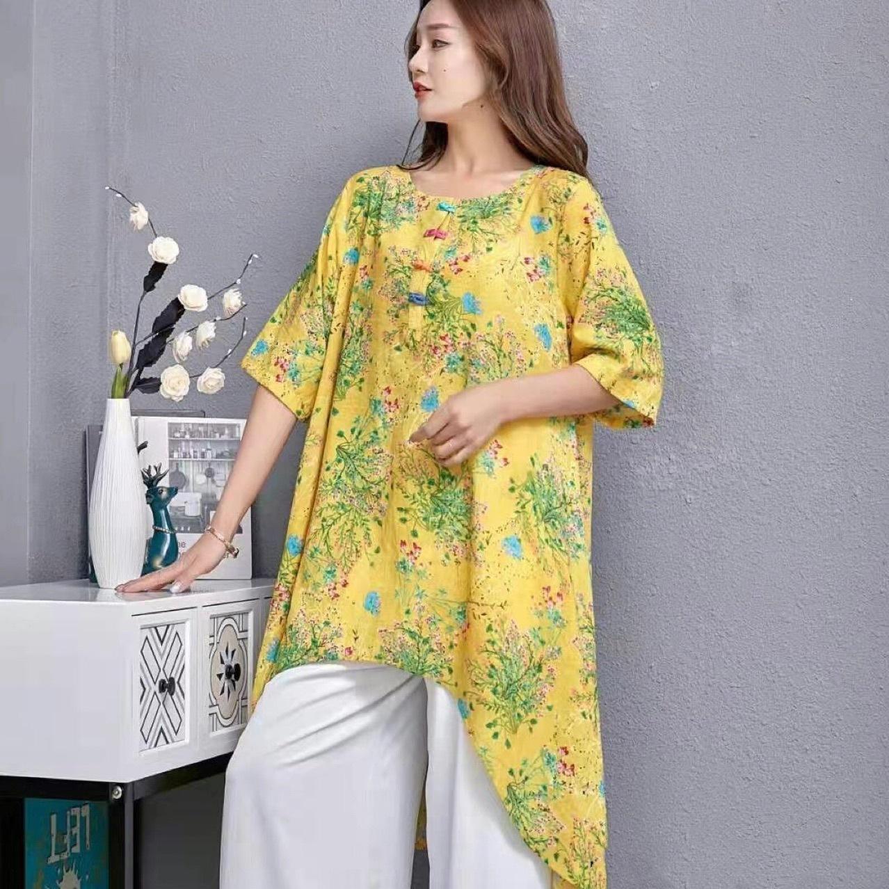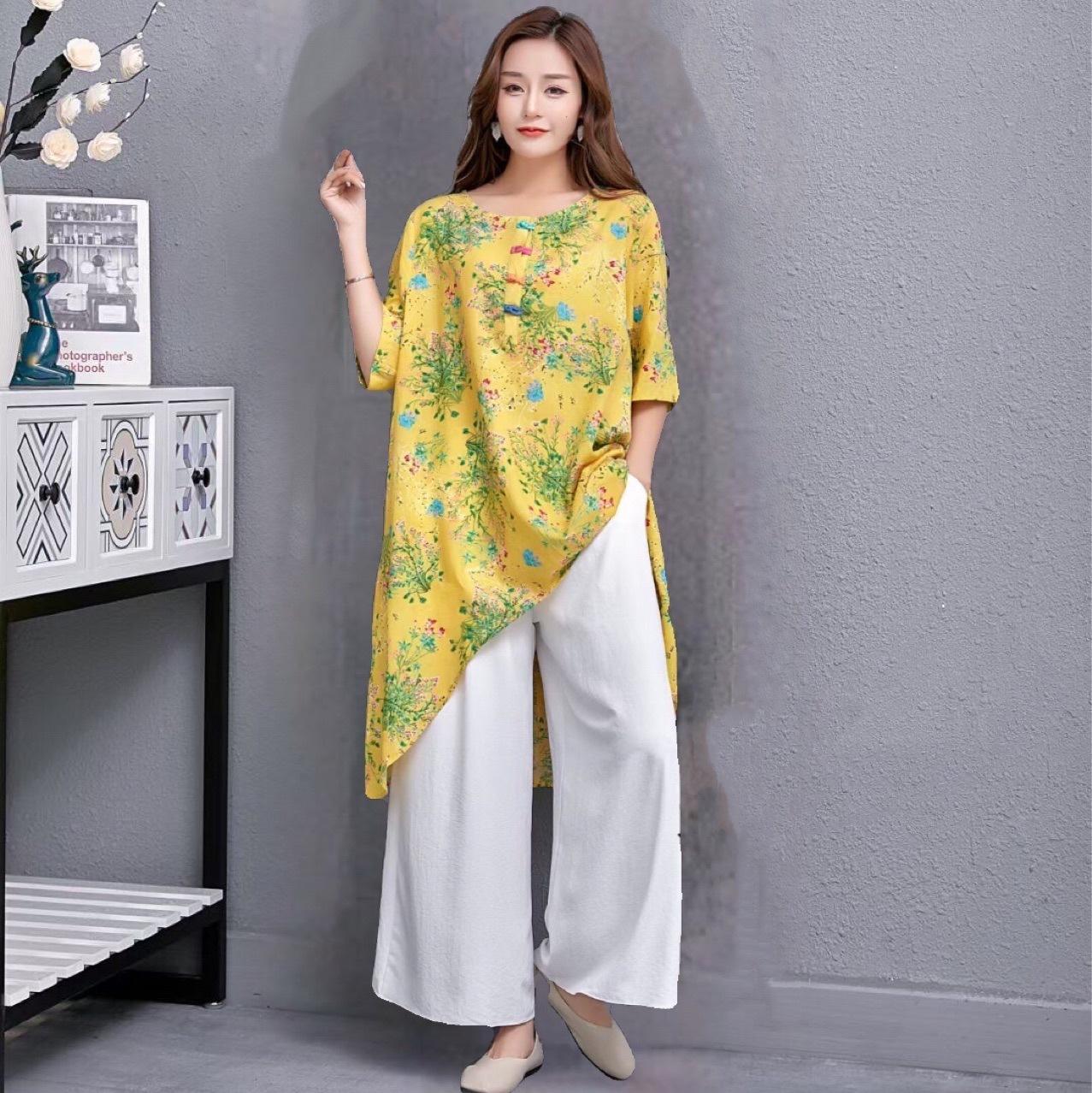 Ropa de Mujer de Estilo Étnico 2022 Verano Nuevo Algodón y Lino Estampado Delgado Top de Mujer y Pantalones de Pierna Recta Conjunto Casual