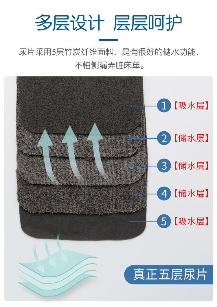 Pañal lavable de carbón de bambú para adultos, absorbente, para personas mayores, lavable, absorbente, con cojín de toalla largo.
