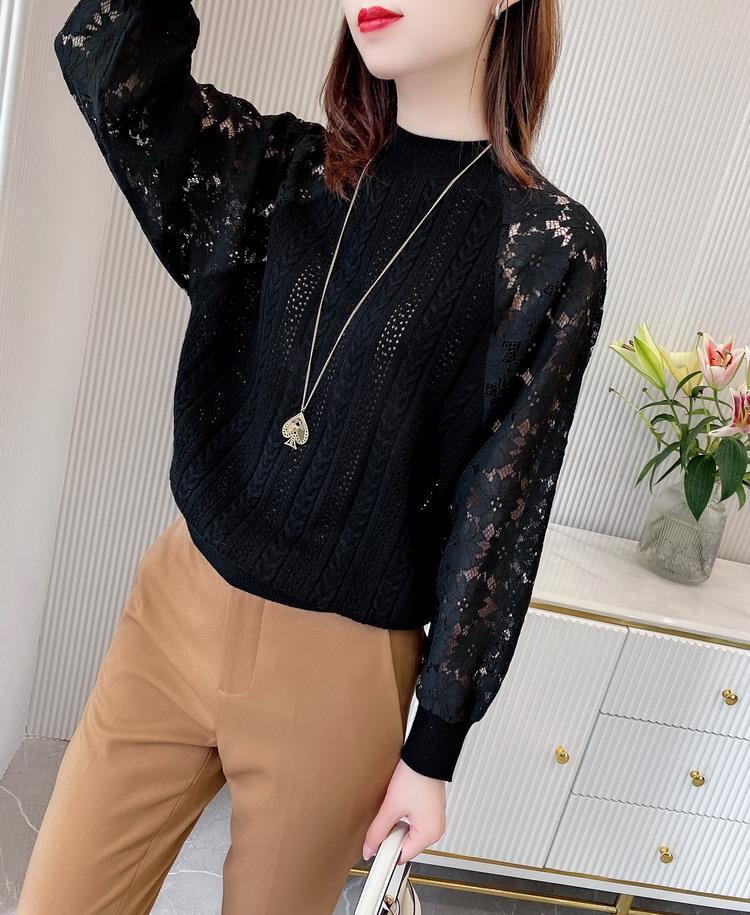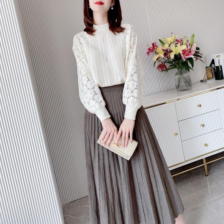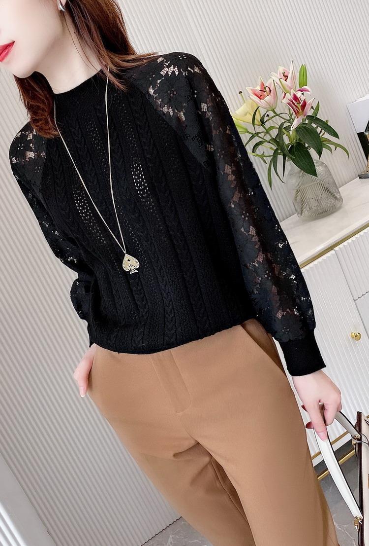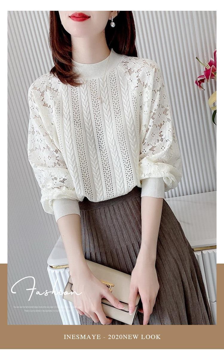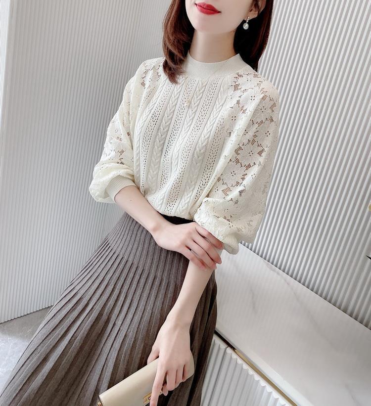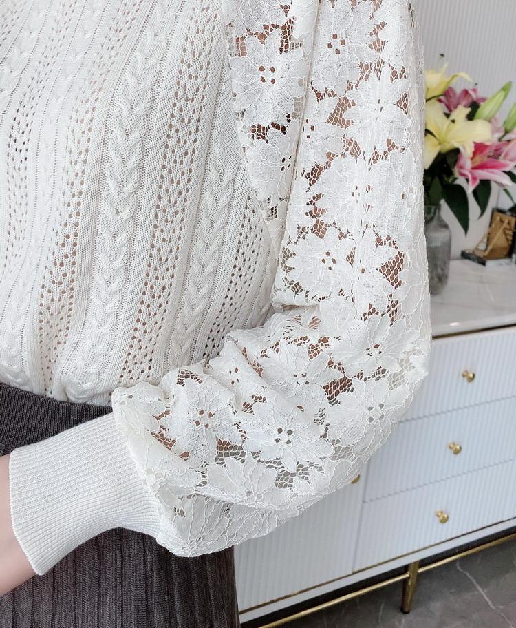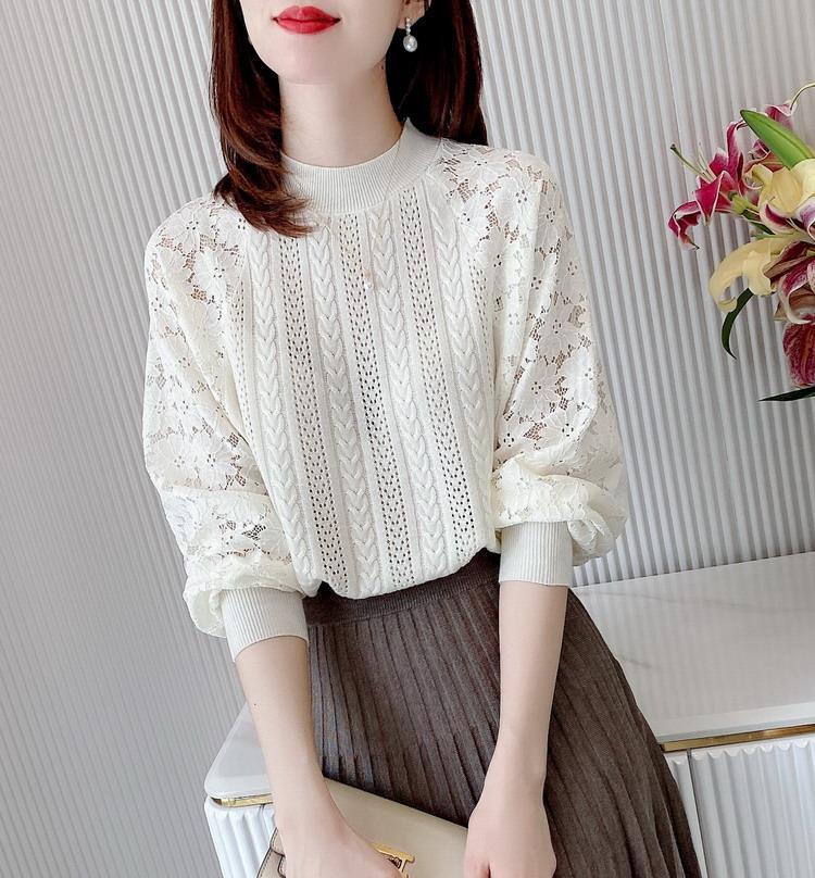 Suéter de Punto Calado con Manga Hueca Torcido de Manga Larga Primavera y Otoño Nuevo Suéter Holgado de Moda de Estilo Occidental para Mujer