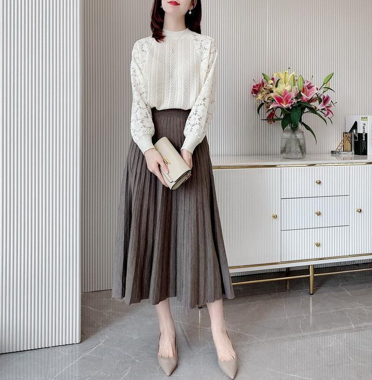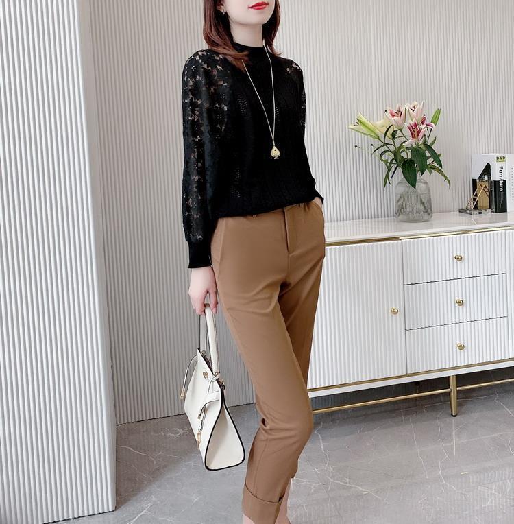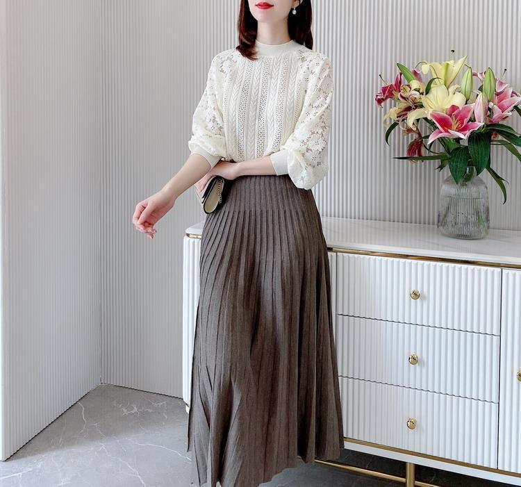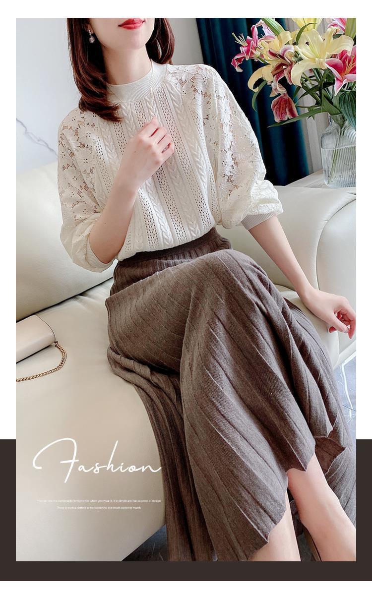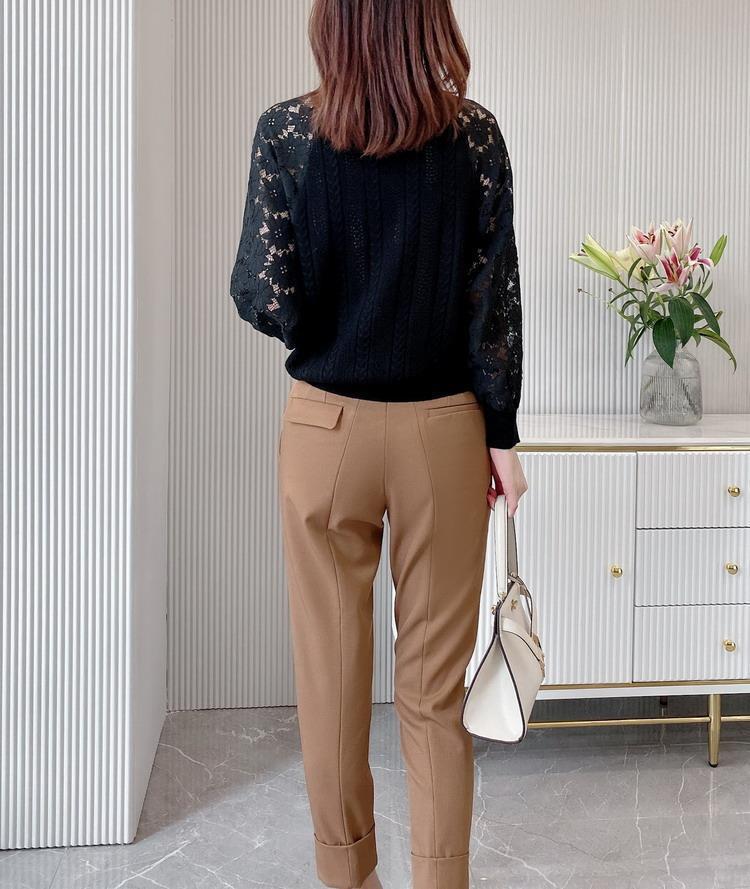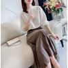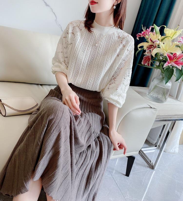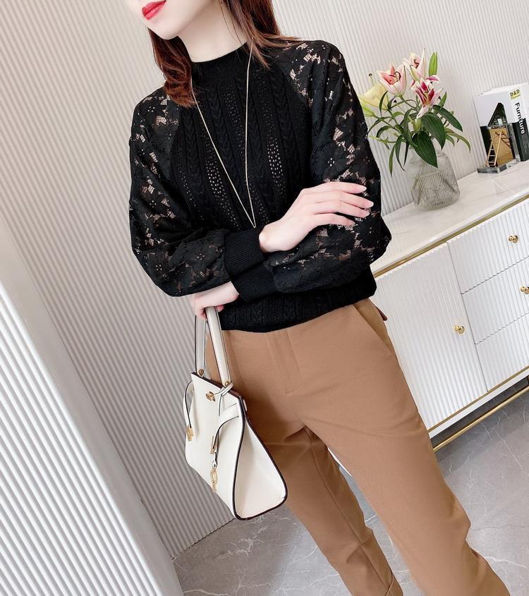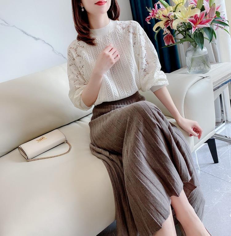 Suéter de Punto Calado con Manga Hueca Torcido de Manga Larga Primavera y Otoño Nuevo Suéter Holgado de Moda de Estilo Occidental para Mujer