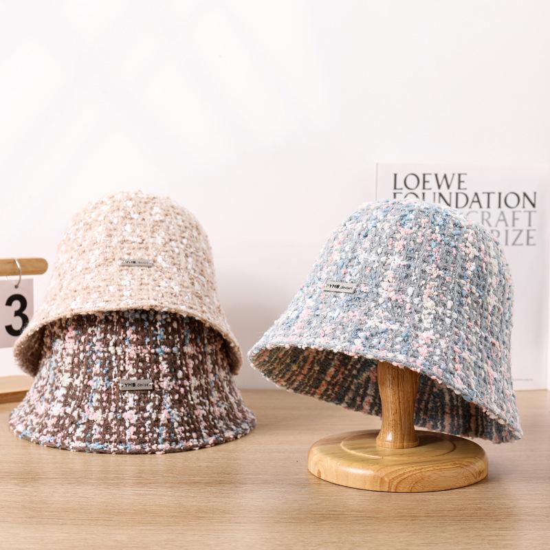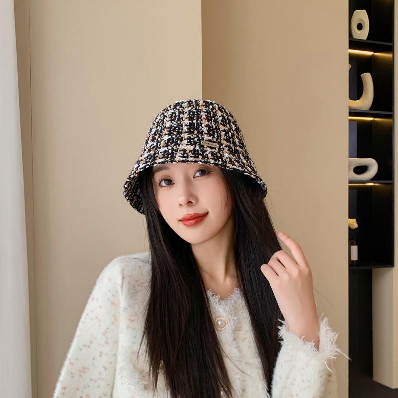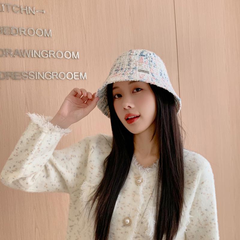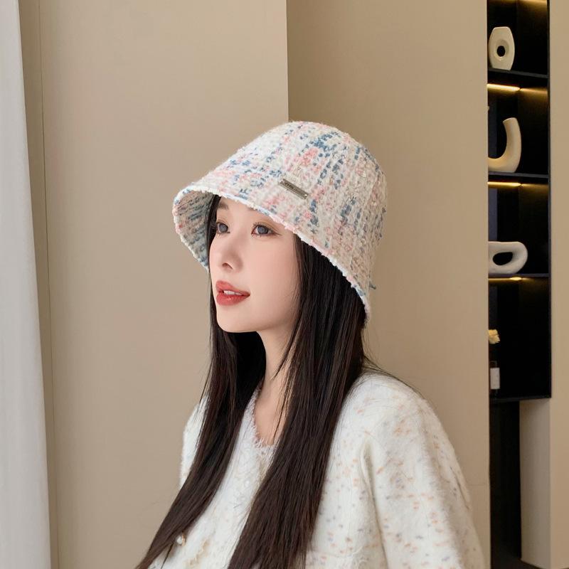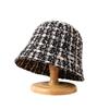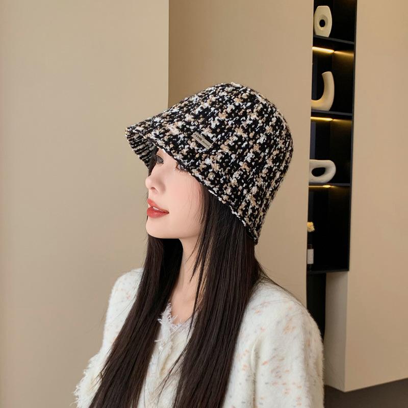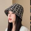 Sombrero de cuenco pequeño para la cara de otoño e invierno para mujer, dulce, a la moda, de punto a cuadros, floral, estilo pescador, estilo Chanel, estilo coreano, sombrero que combina con todo