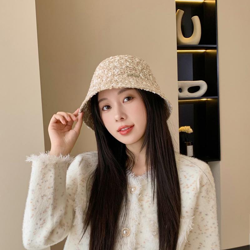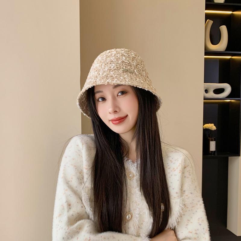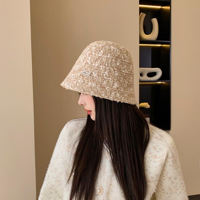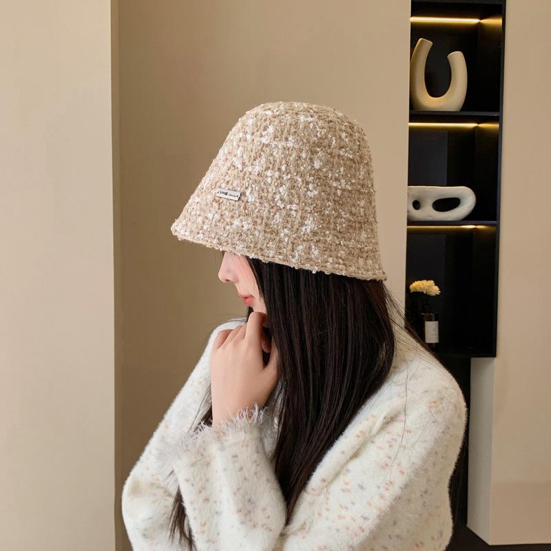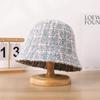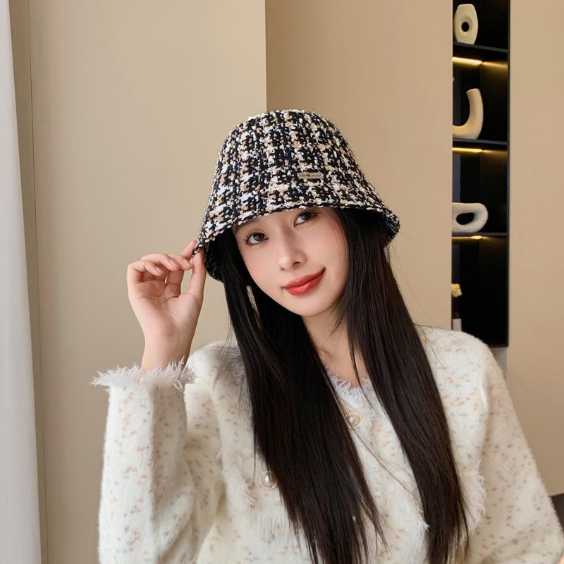Sombrero de cuenco pequeño para la cara de otoño e invierno para mujer, dulce, a la moda, de punto a cuadros, floral, estilo pescador, estilo Chanel, estilo coreano, sombrero que combina con todo
