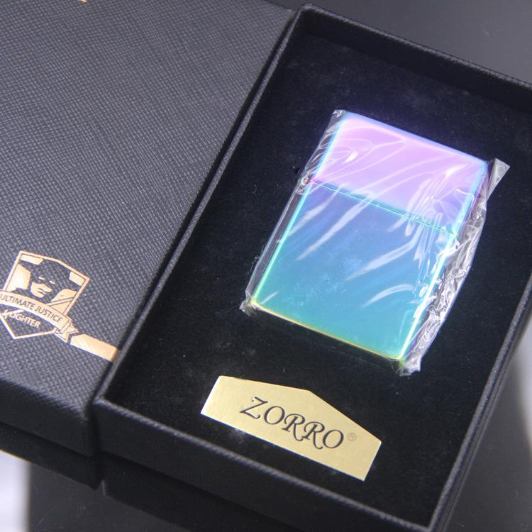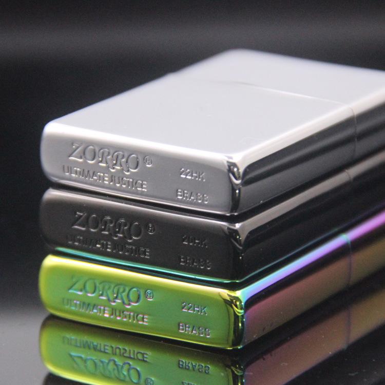 Encendedor de placa de luz de metal simple moderno Zorro, encendedor retro con rueda de molienda, máquina de queroseno, una variedad de opciones