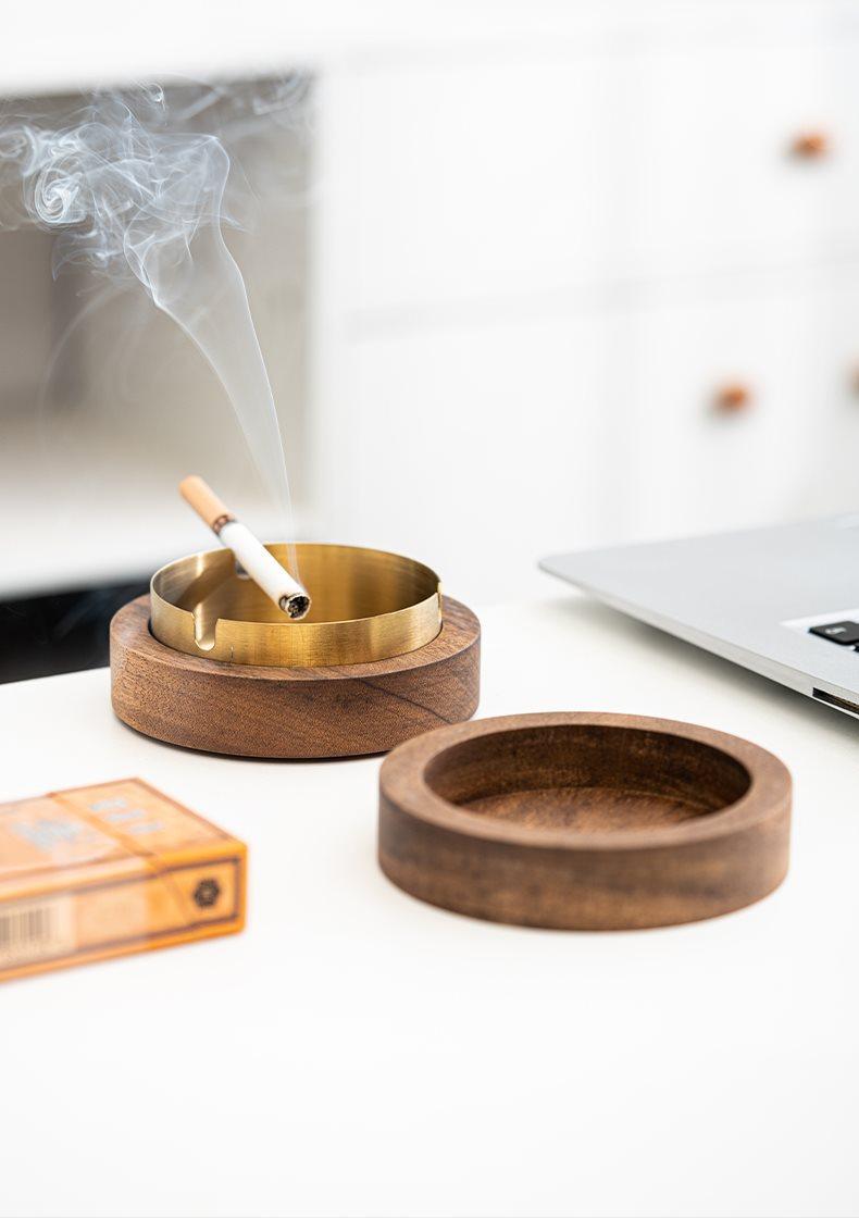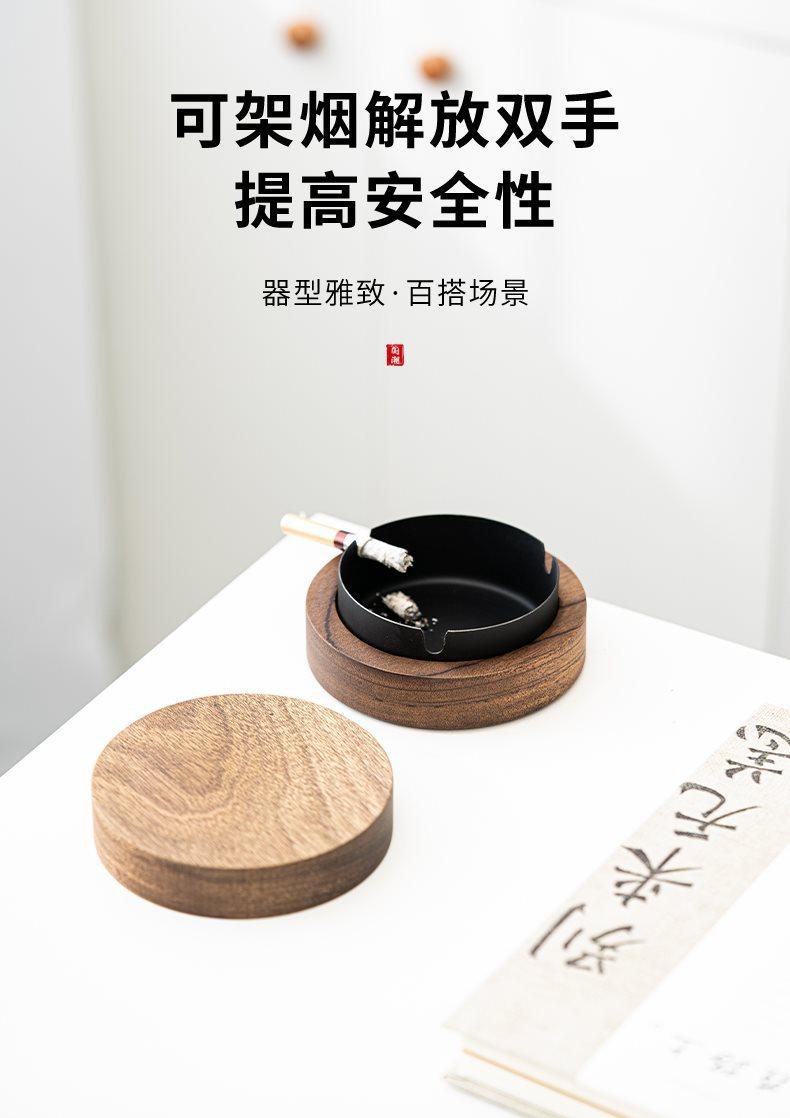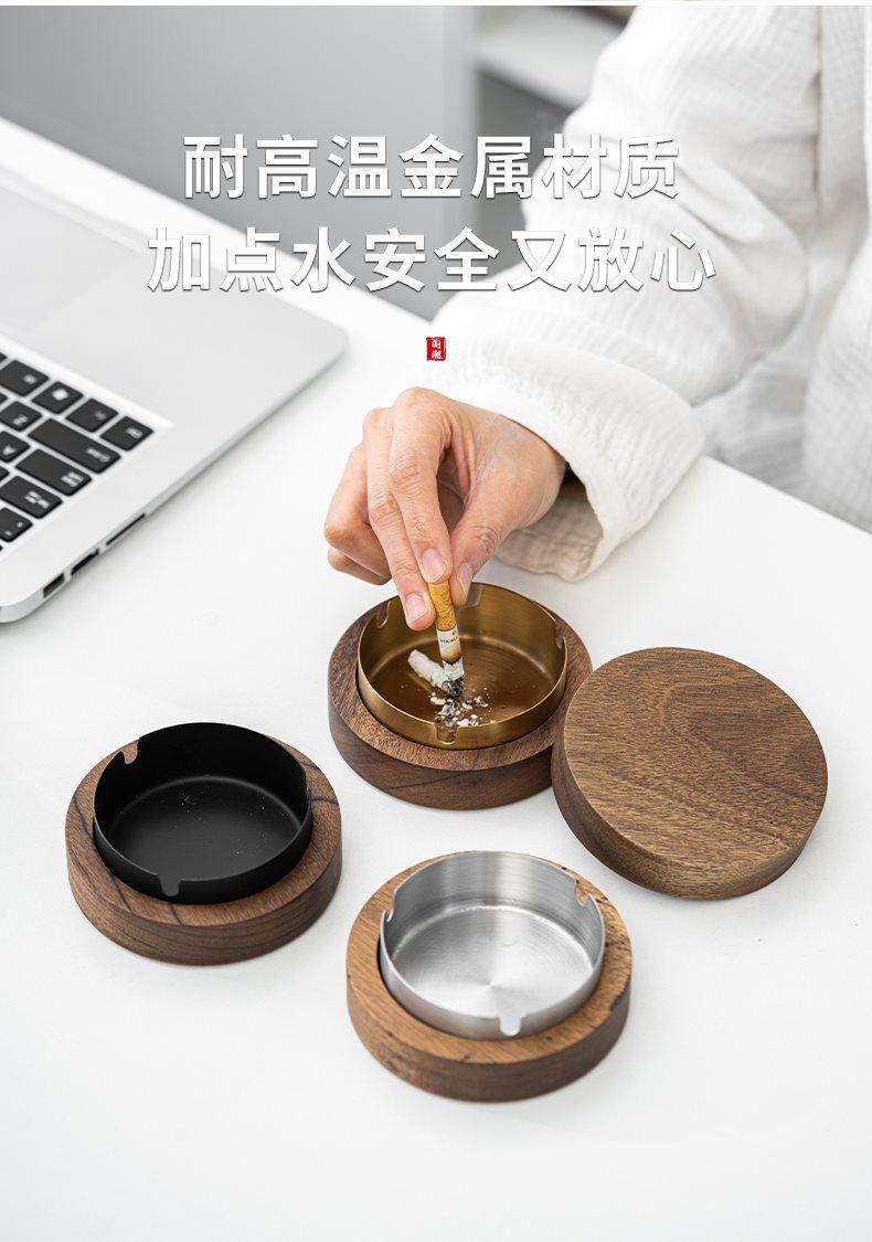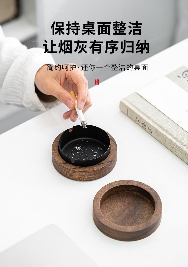 Cenicero de nogal, creativo, personalizado, moderno, ligero, de lujo, con cubierta antipolvo, de madera maciza, para el hogar y la oficina.