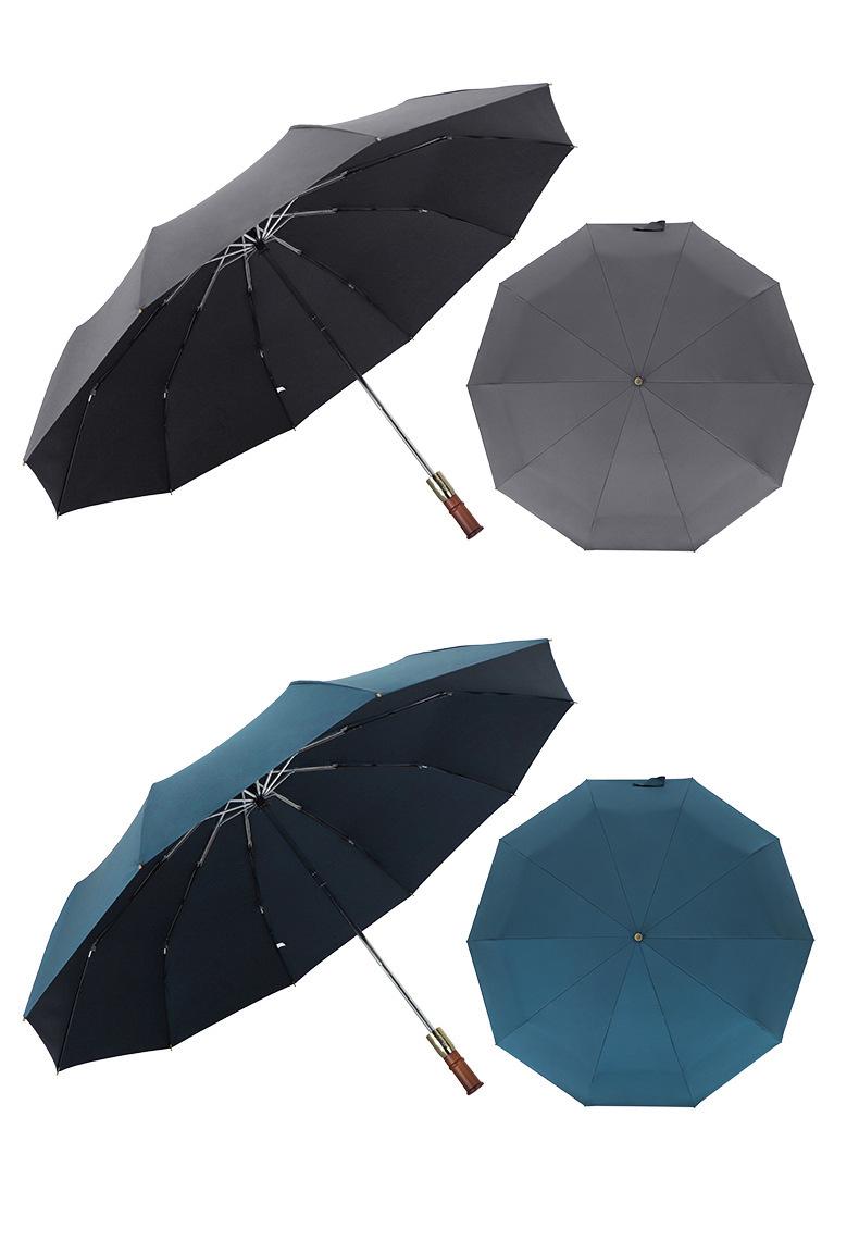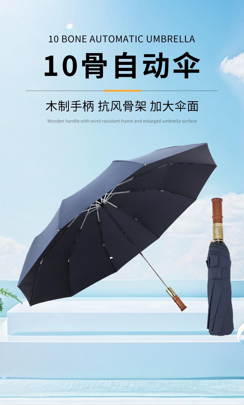 Paraguas automático de 10 huesos con mango de madera maciza, paraguas soleado, paraguas plegable de negocios para hombres, paraguas con logotipo impreso, paraguas de regalo publicitario.