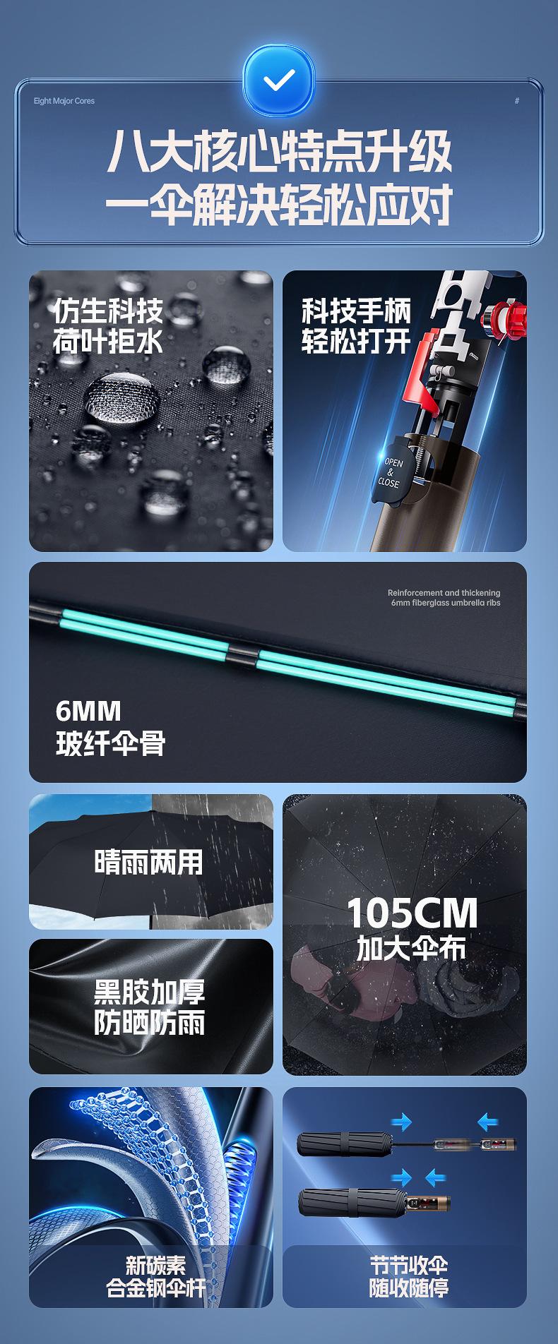 Paraguas de Seguridad Antirrebote Totalmente Automático, Doble Uso para Lluvia y Sol, Paraguas de Protección Solar, Paraguas Parasol de Vinilo al por Mayor