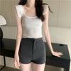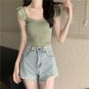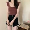 Chaleco de punto francés con volantes y manga corta volada para mujer, diseño nicho de verano, corto, grande, sin mangas con cuello U