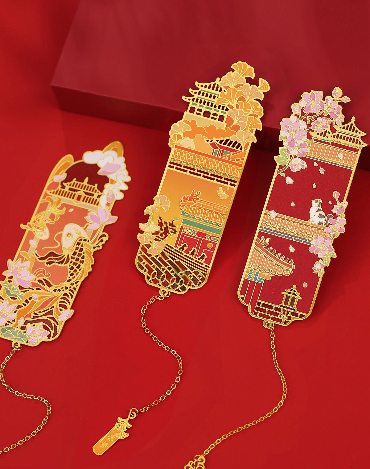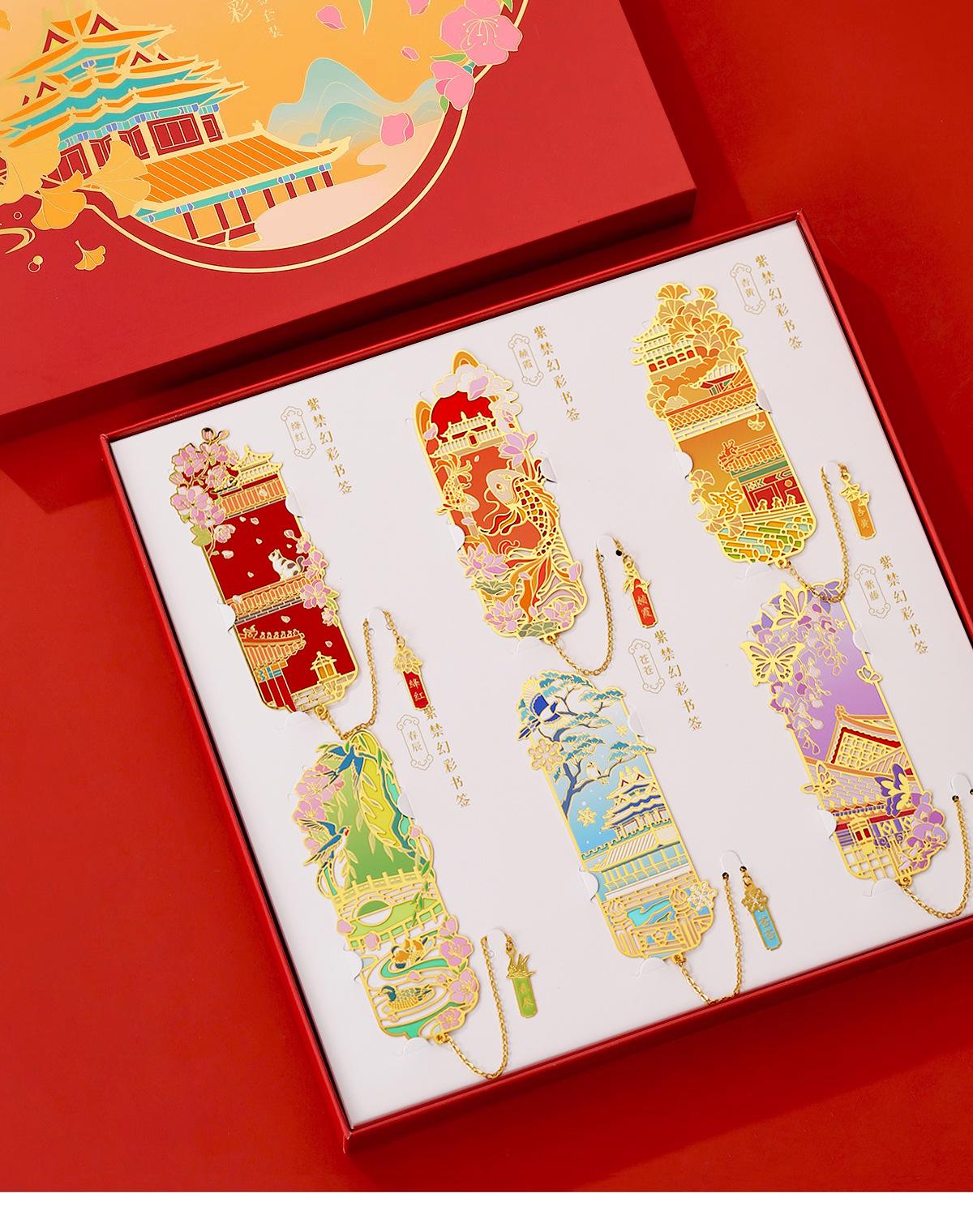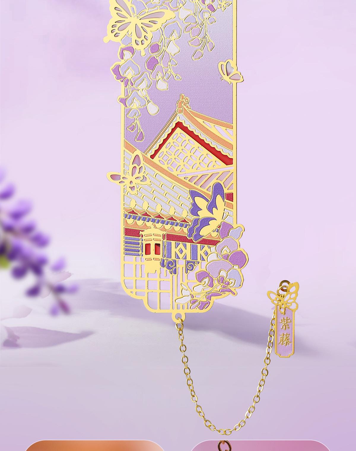 Marcador de Metal Sinfonía Prohibida Púrpura Palacio Estilo Clásico Chino Caja de Regalo Museo Regalo Cultural y Creativo Estilo Antiguo