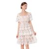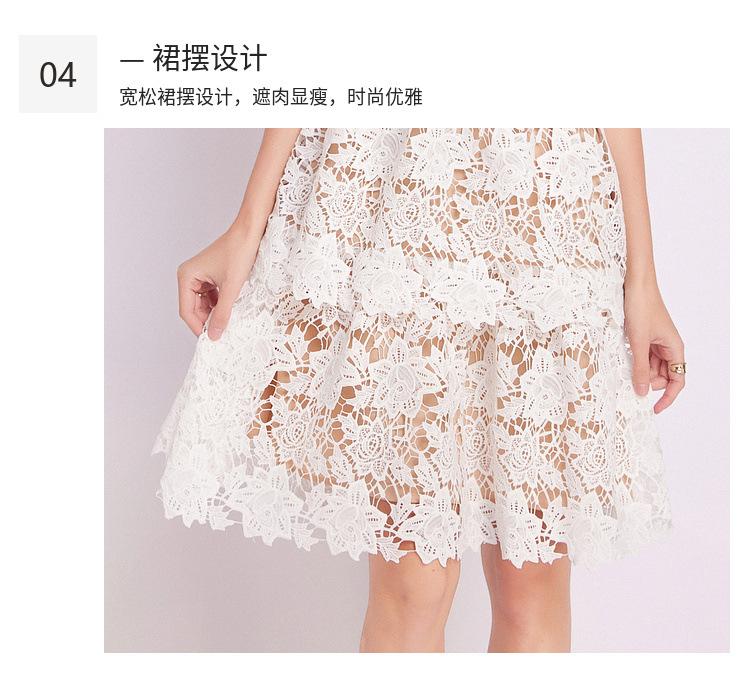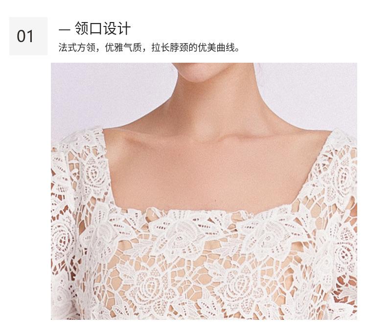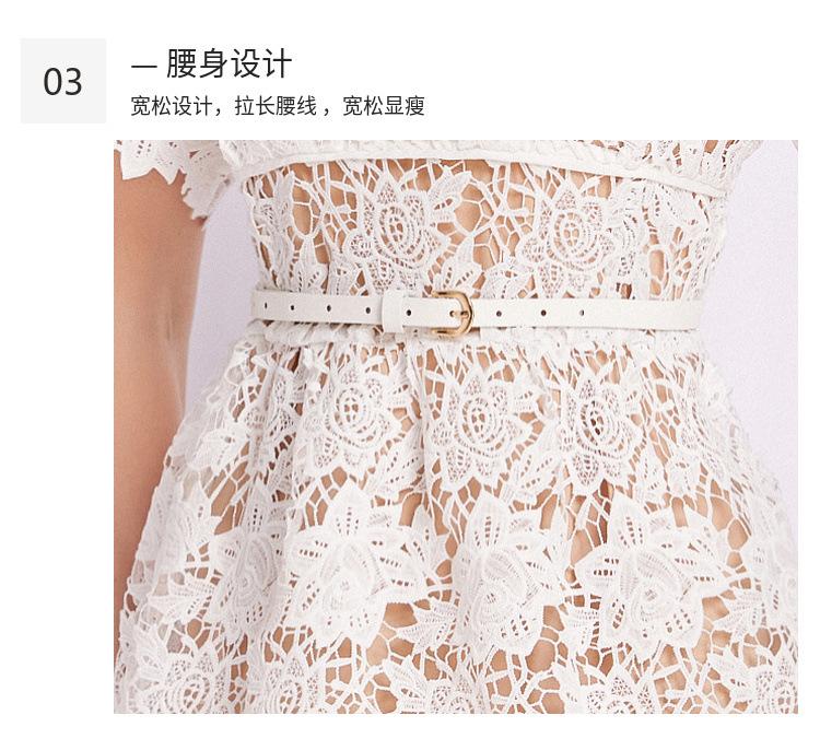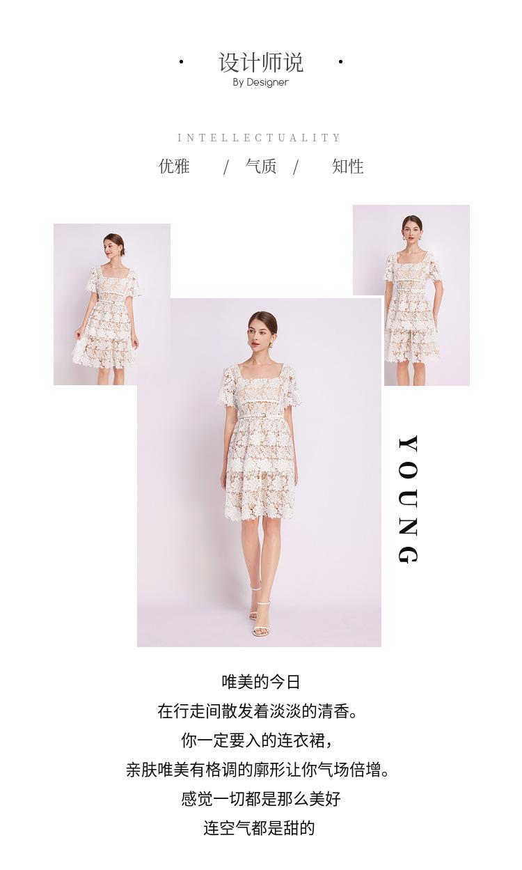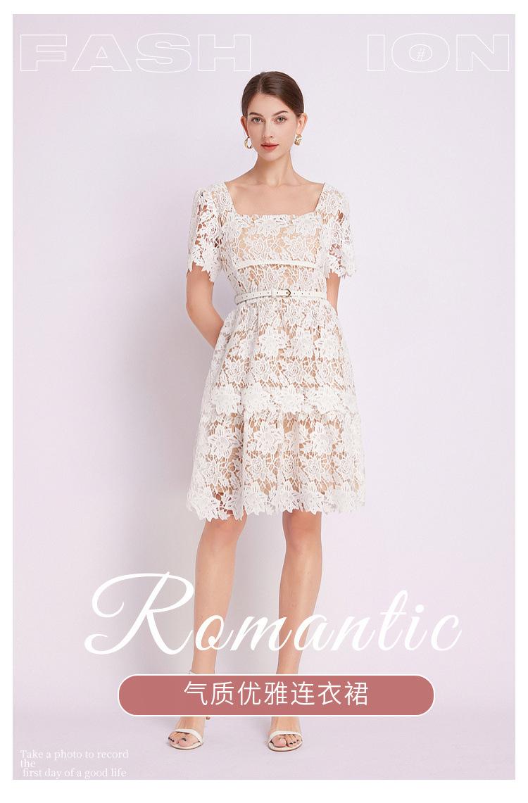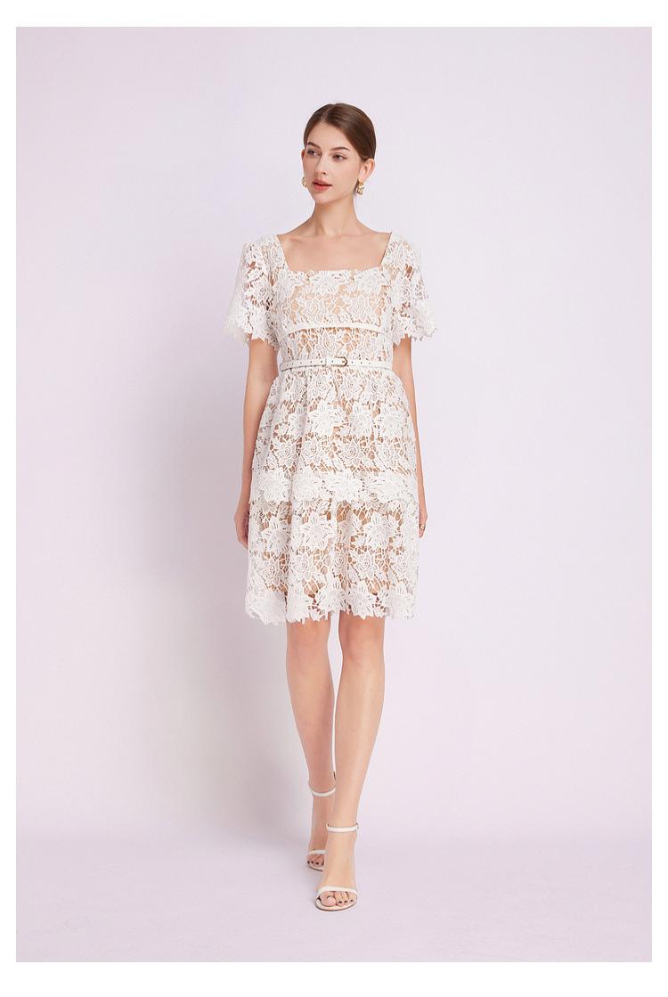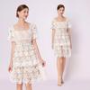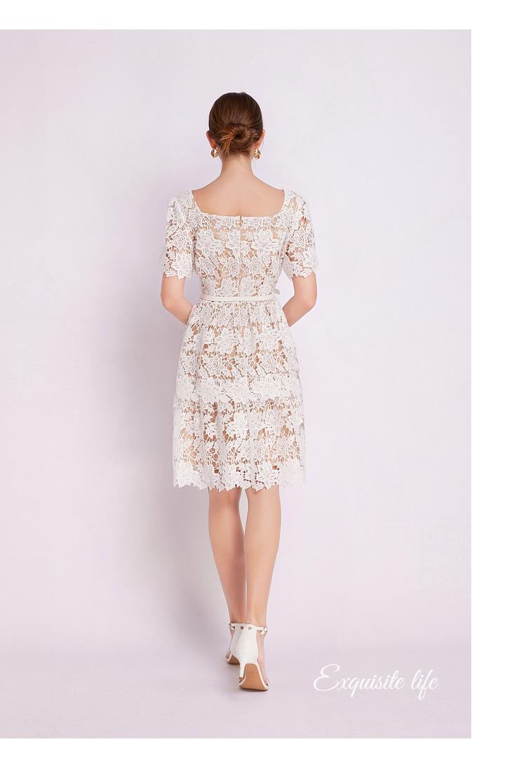 Vestido de Diosa de la Estación Europea 2024 Otoño y Verano Nuevo Color Sólido Encaje Soluble en Agua Cuello Cuadrado Manga Corta Vestido de Pastel