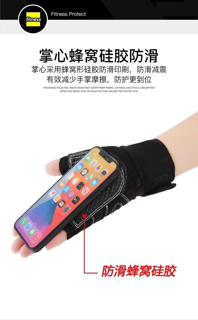 Nuevos guantes de fitness para hombres y mujeres, antideslizantes, con protección para la muñeca, para barra, equipo deportivo de ciclismo, guantes de medio dedo, comercio exterior transfronterizo