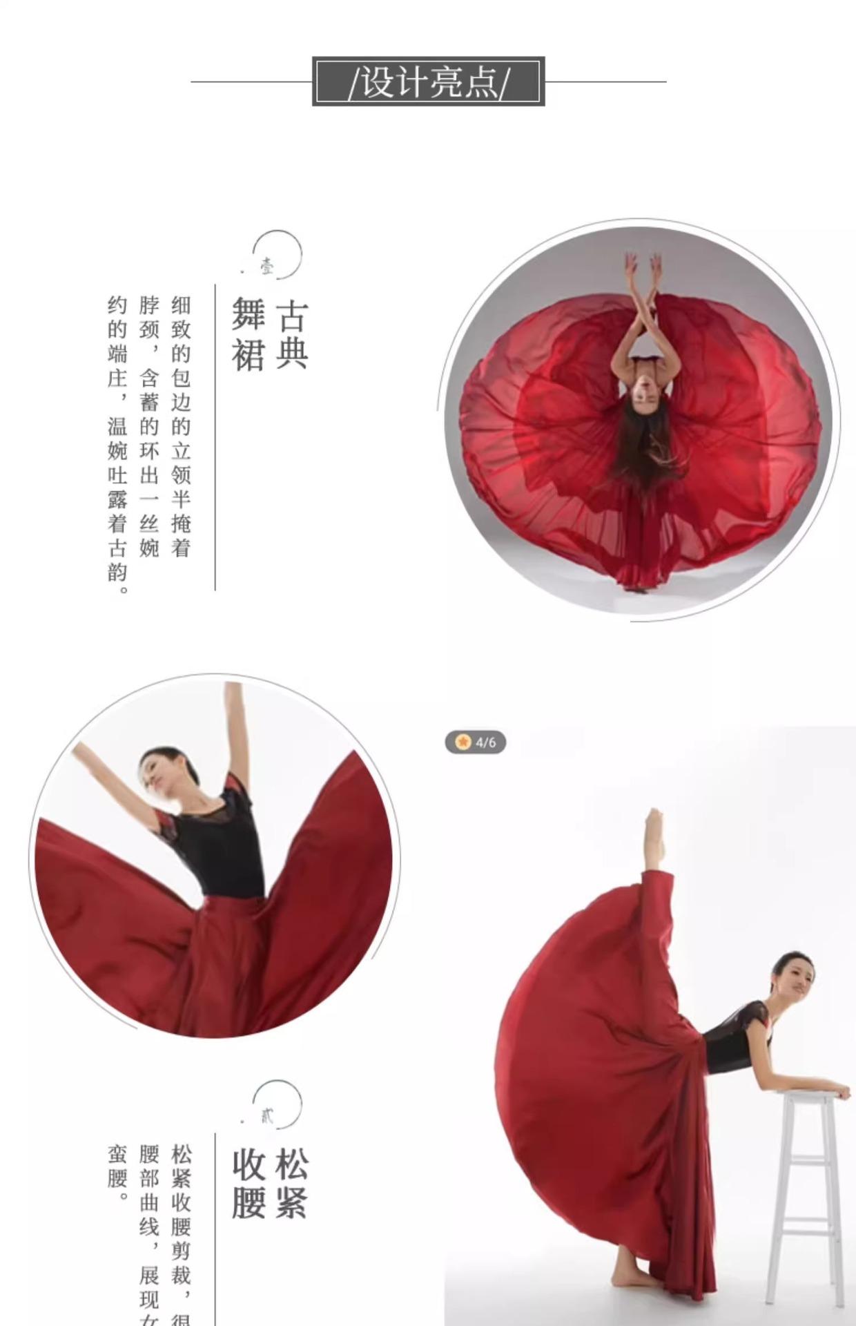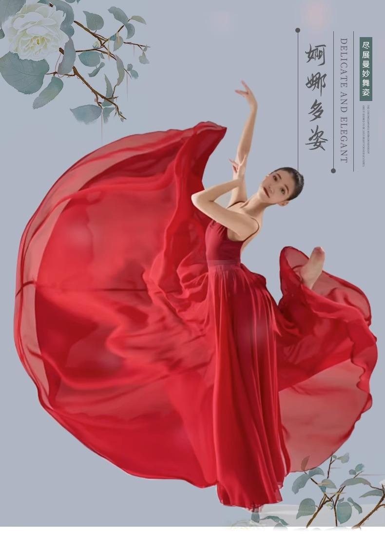 Ropa de danza clásica, falda de gasa para mujer, elegante falda de práctica de rendimiento de danza nacional moderna china de 720 grados con vuelo grande