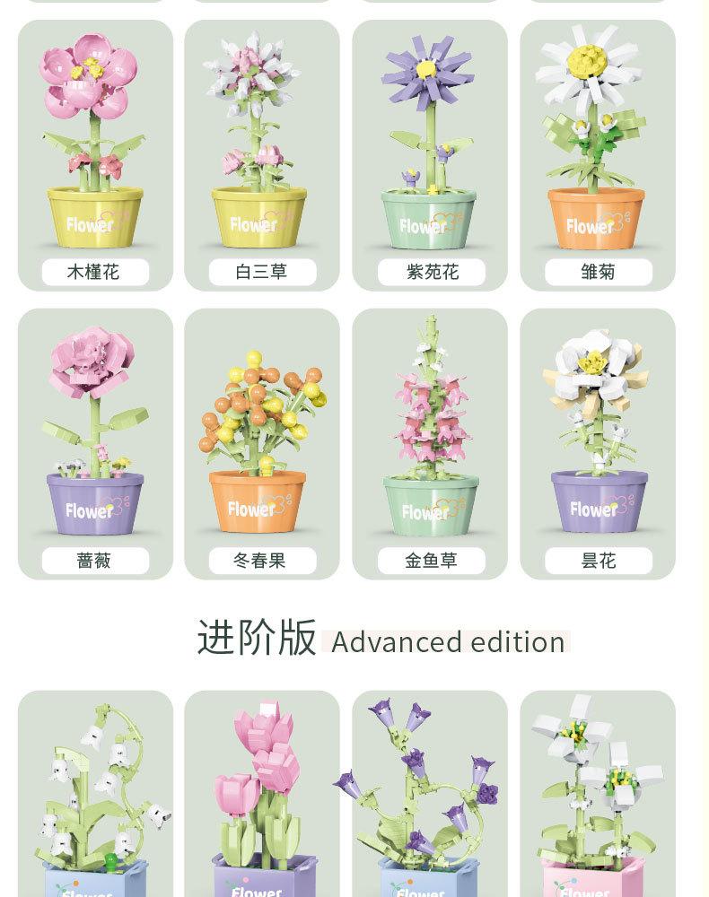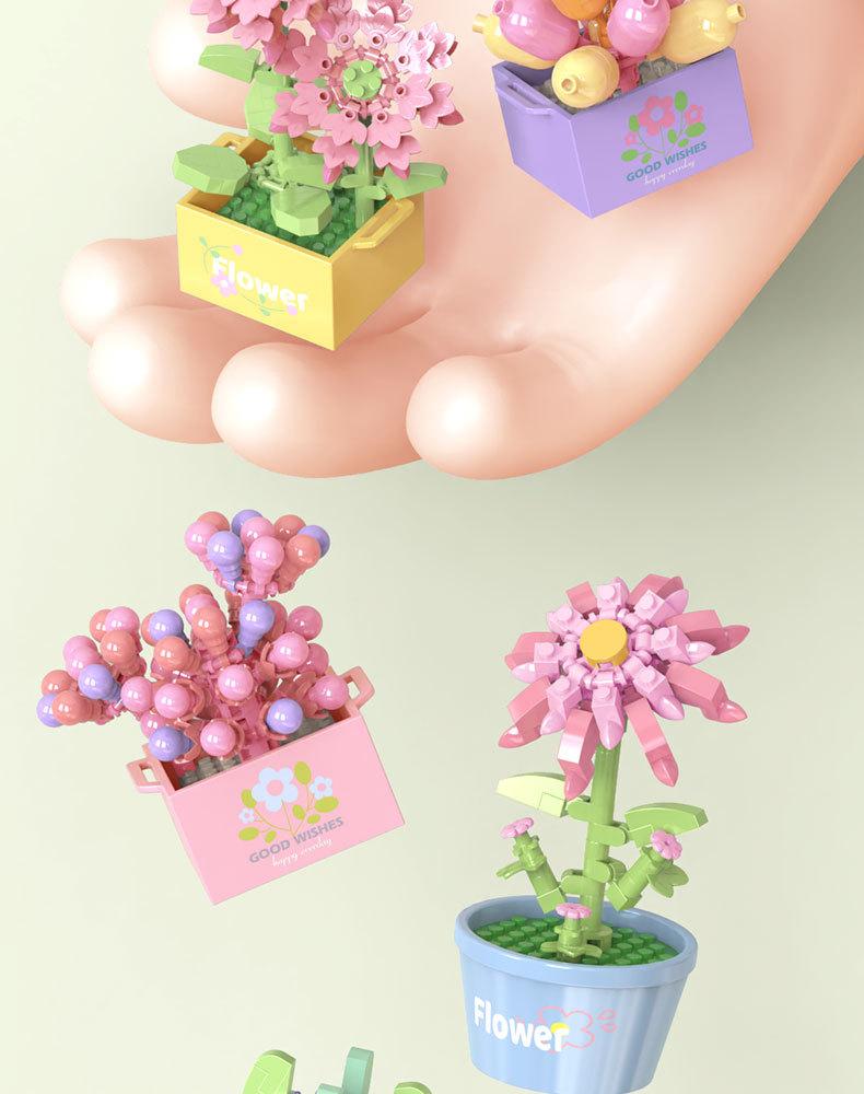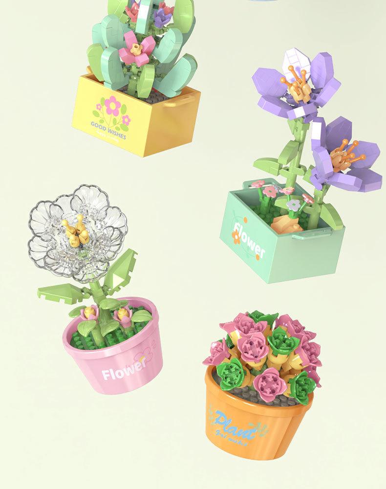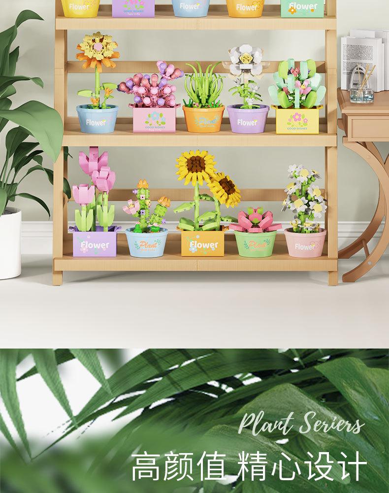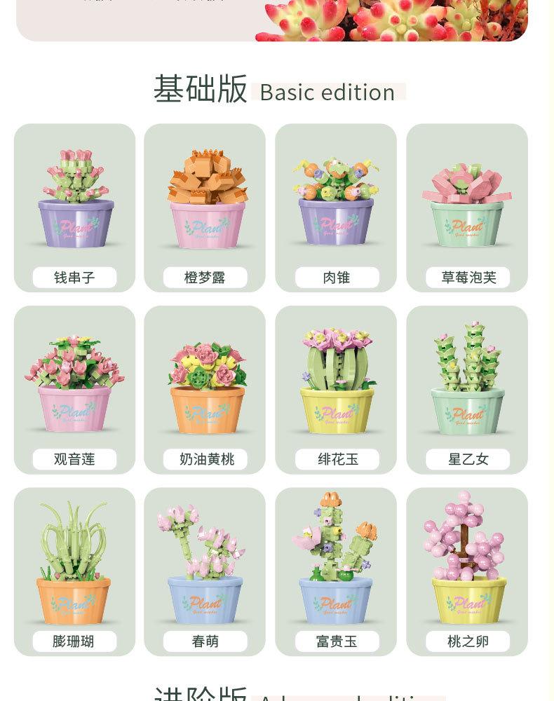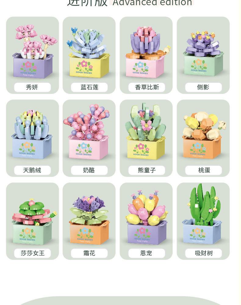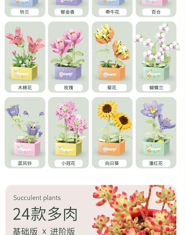 Bloques de Construcción Lele Brothers Flor Compatible con Lego Educativo para Niños Ensamblado Suculenta en Maceta Micropartícula Juguete Regalo para Niño