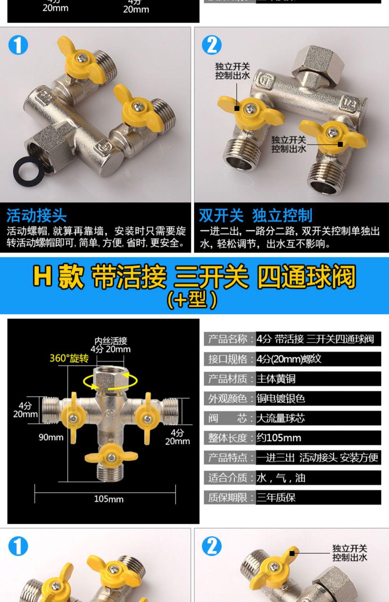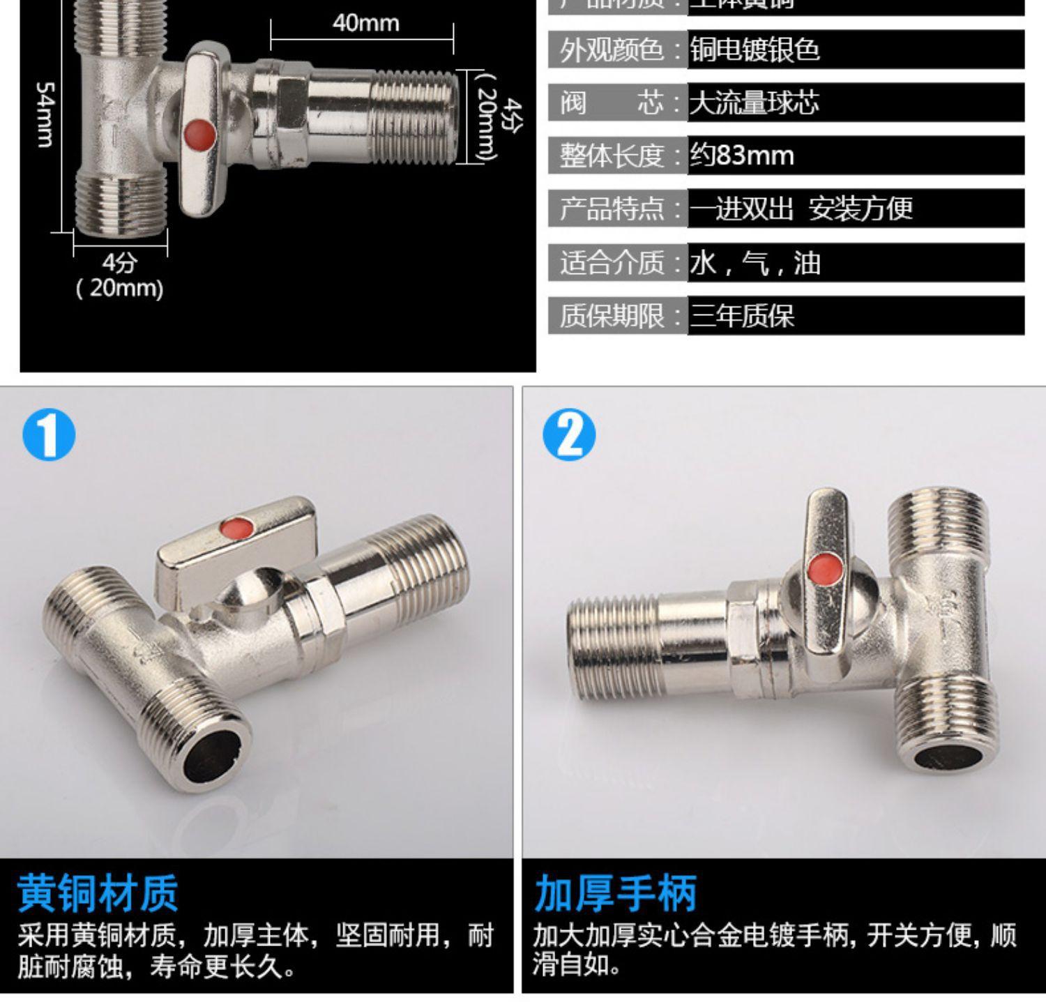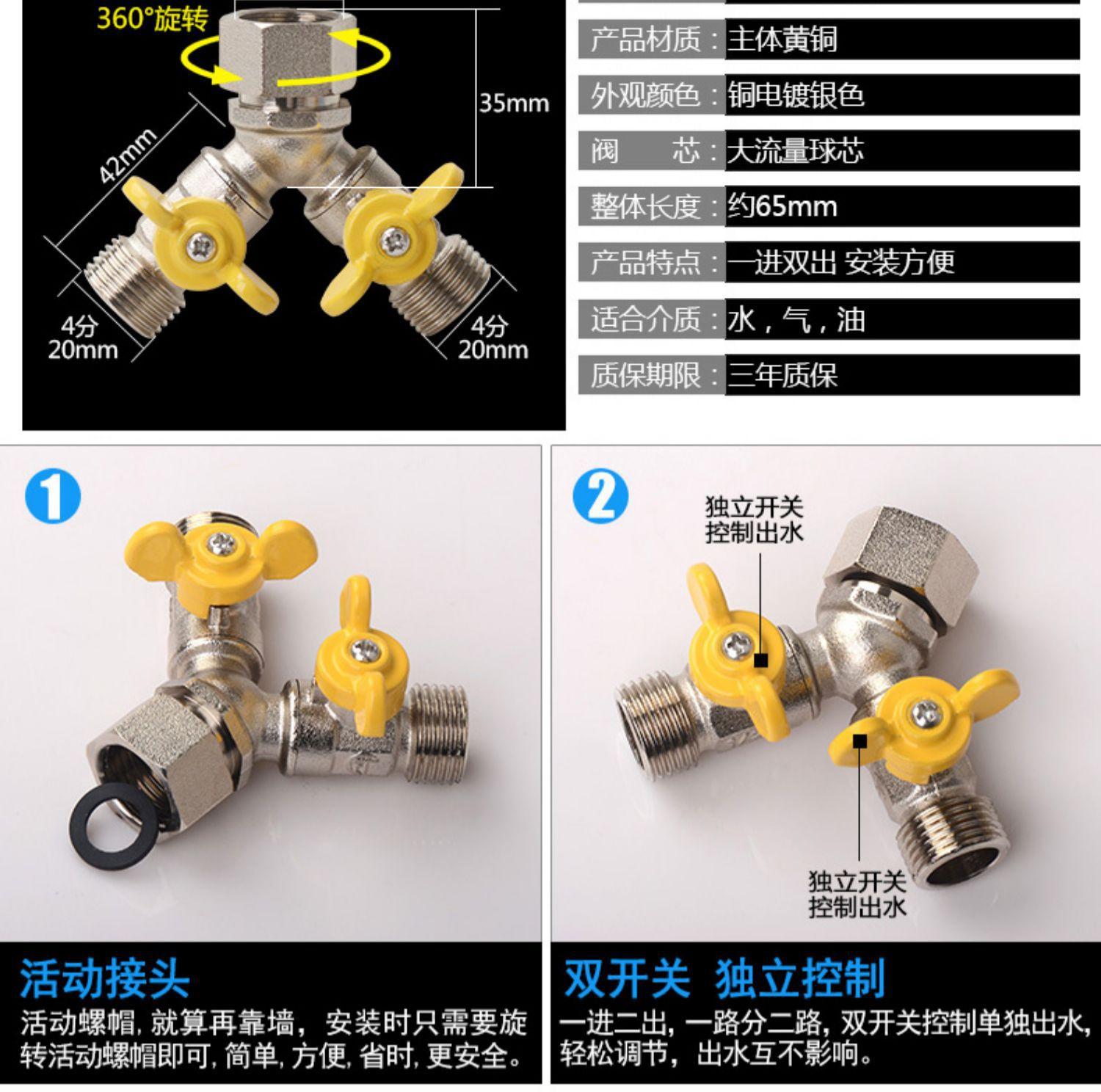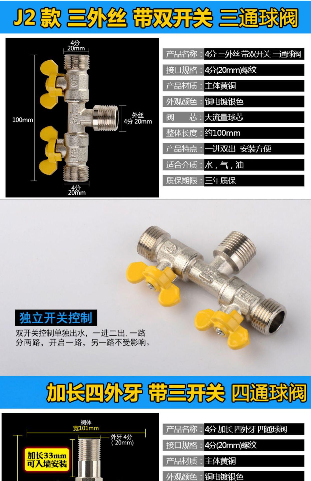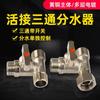 Separador de agua con válvula de bola de tres vías y 4 puntos de cobre, accesorios de interruptor de unión de tubería de agua, interior y exterior, para lavadoras, una de entrada, dos de salida y cuatro