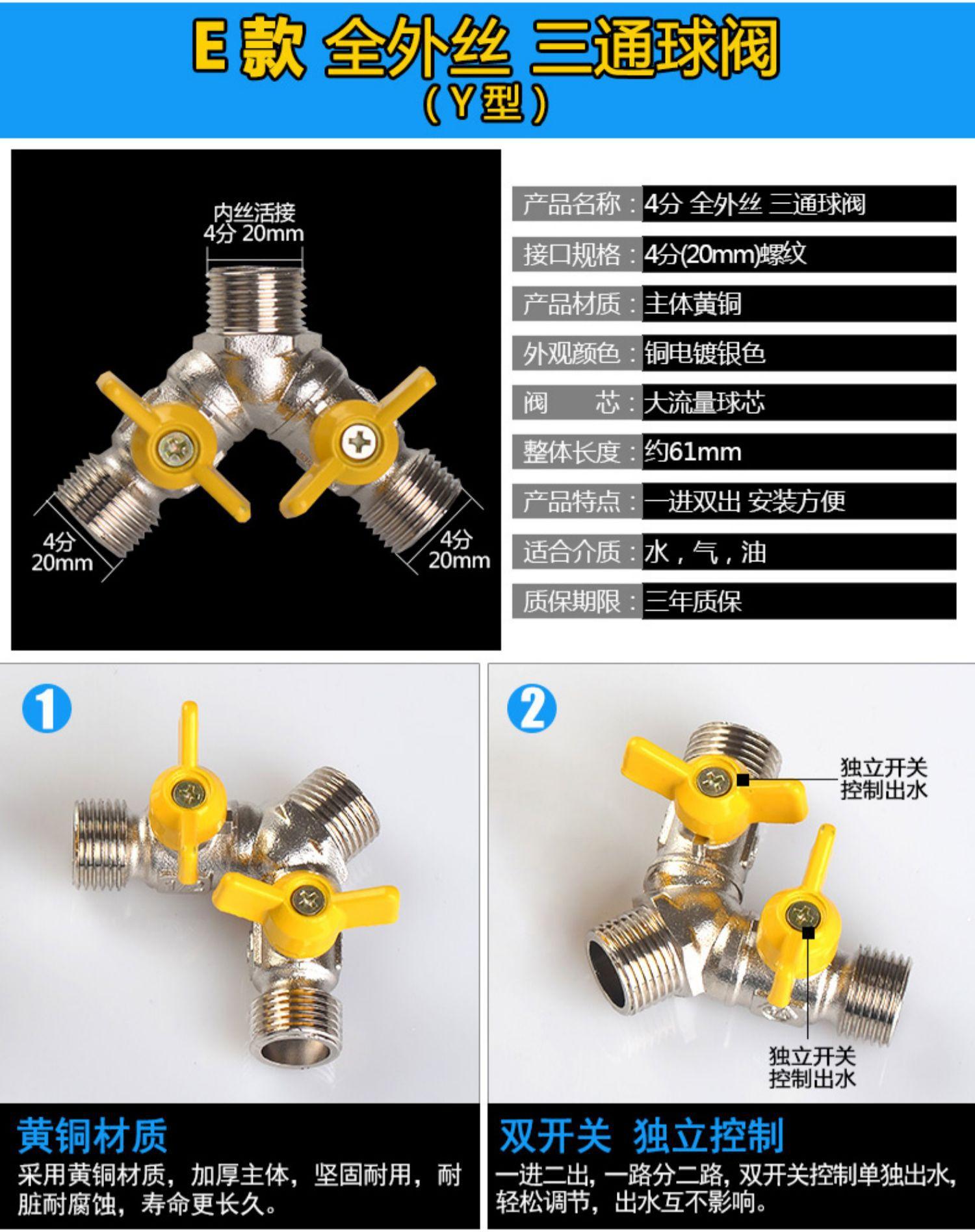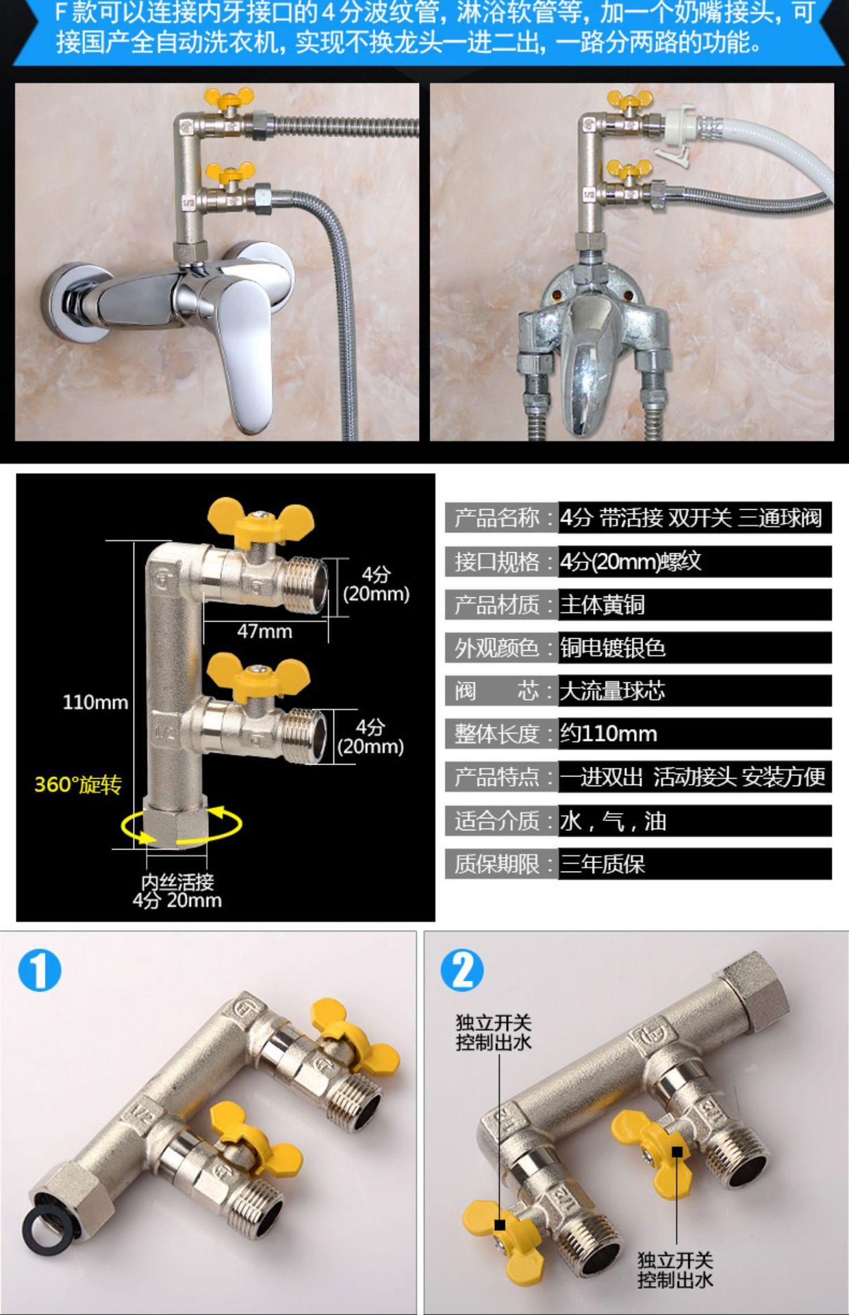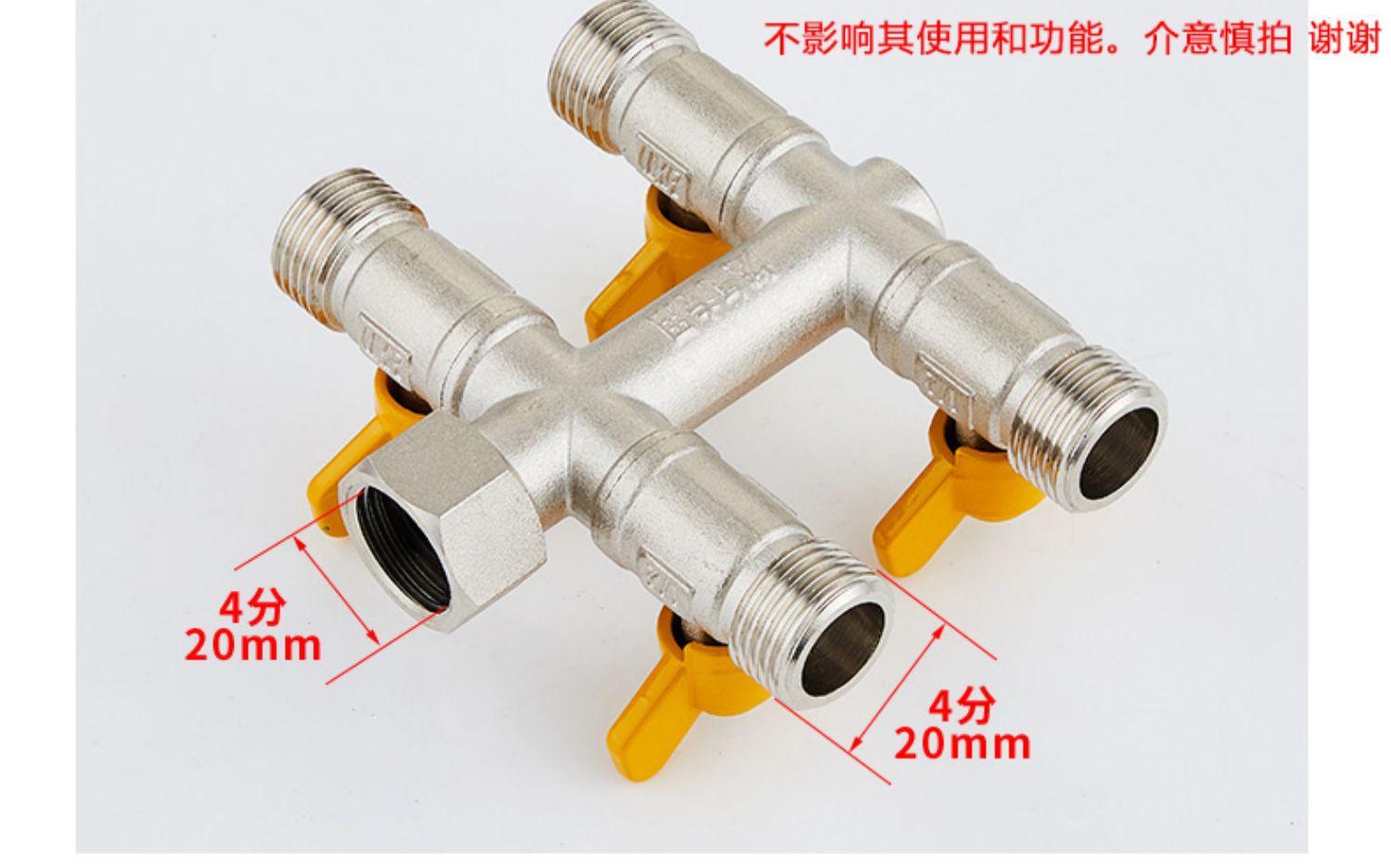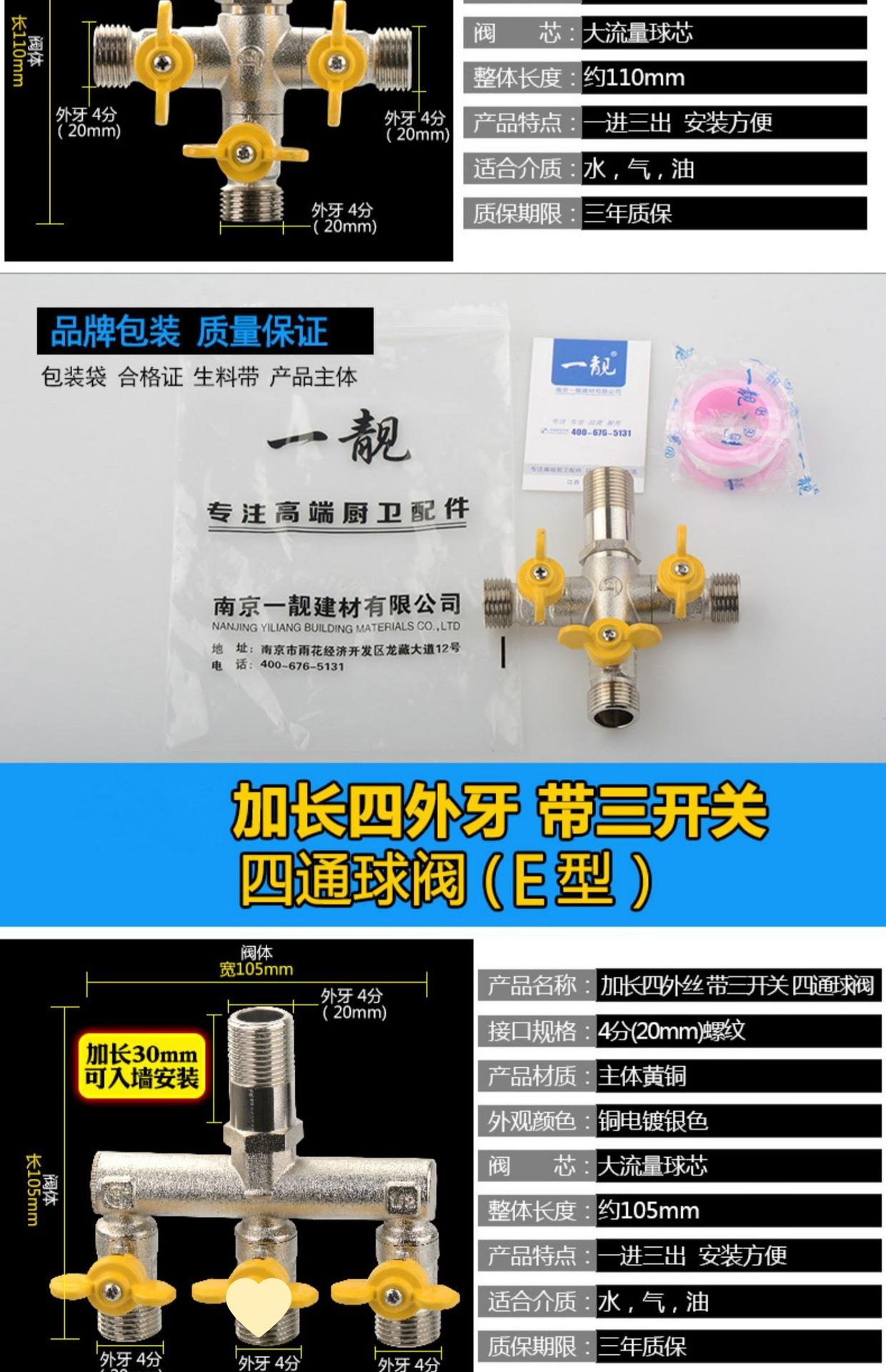 Separador de agua con válvula de bola de tres vías y 4 puntos de cobre, accesorios de interruptor de unión de tubería de agua, interior y exterior, para lavadoras, una de entrada, dos de salida y cuatro