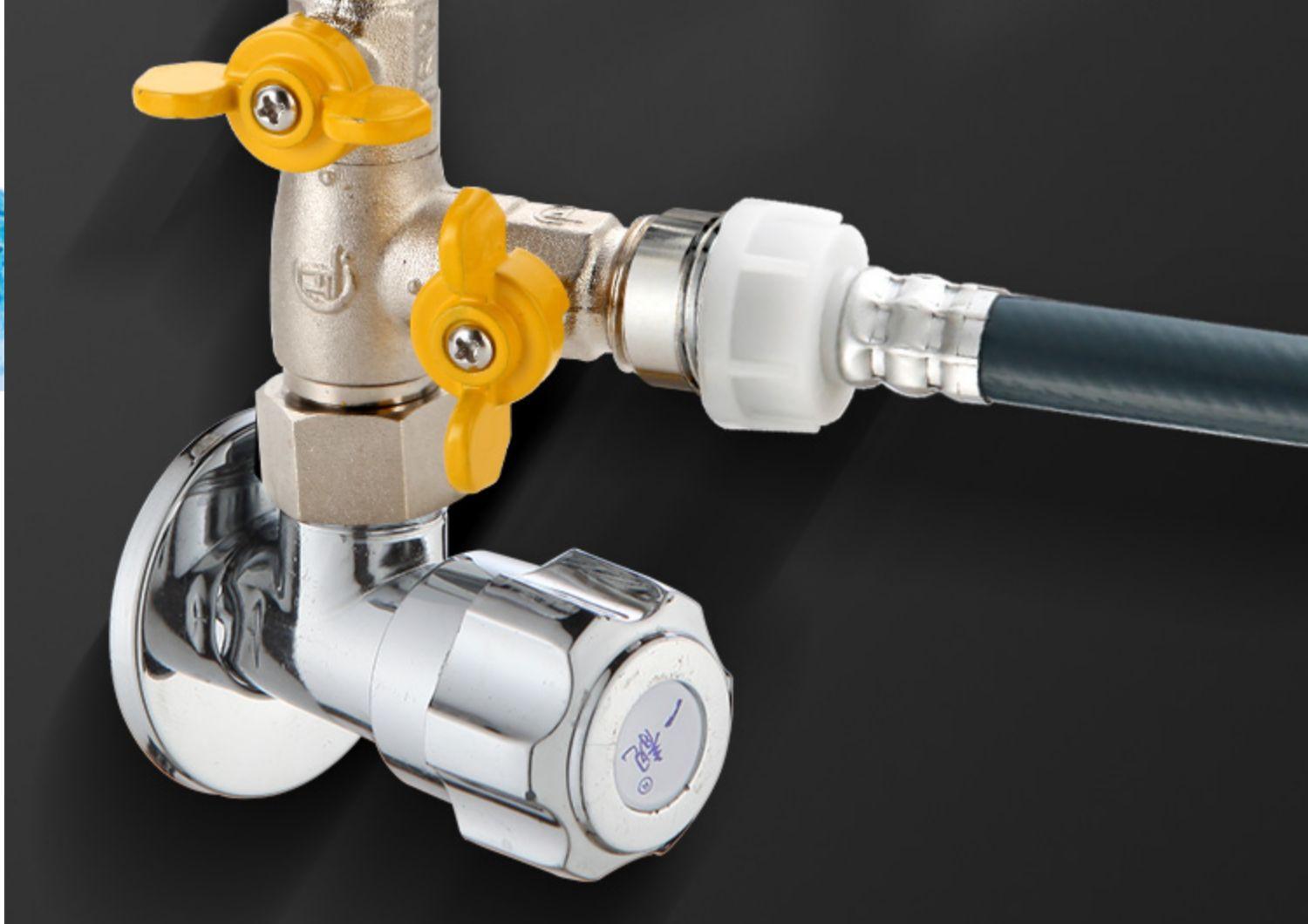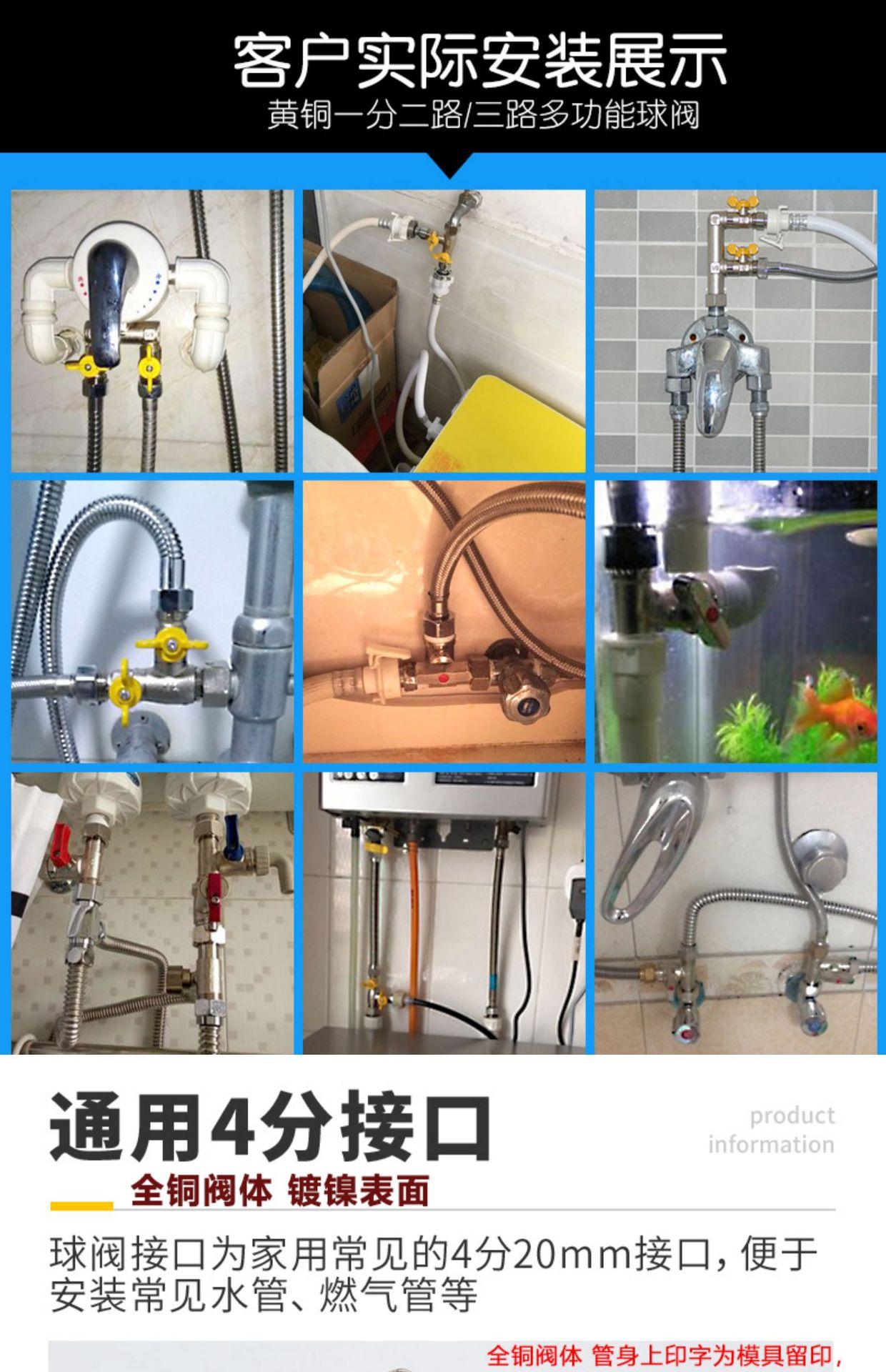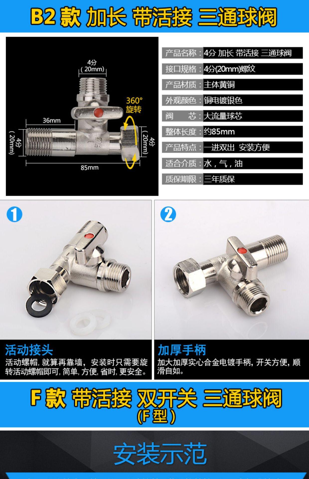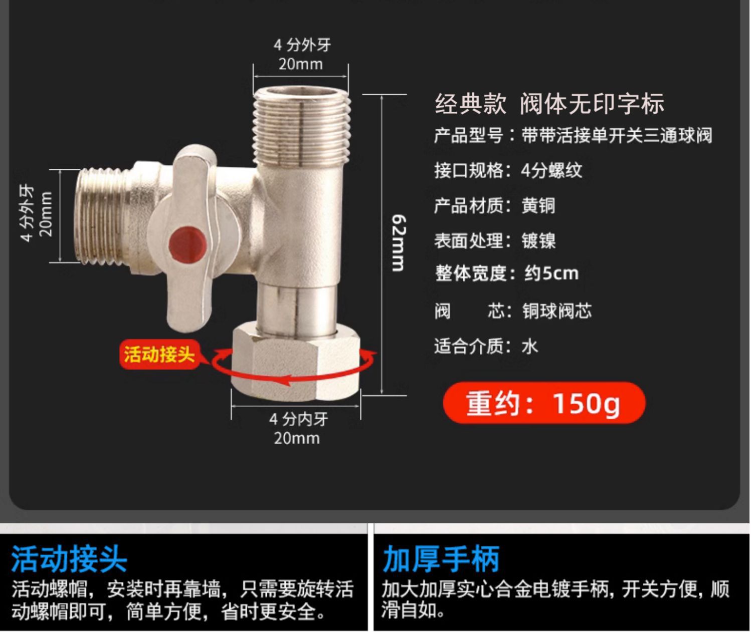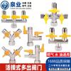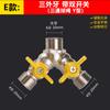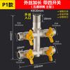 Separador de agua con válvula de bola de tres vías y 4 puntos de cobre, accesorios de interruptor de unión de tubería de agua, interior y exterior, para lavadoras, una de entrada, dos de salida y cuatro