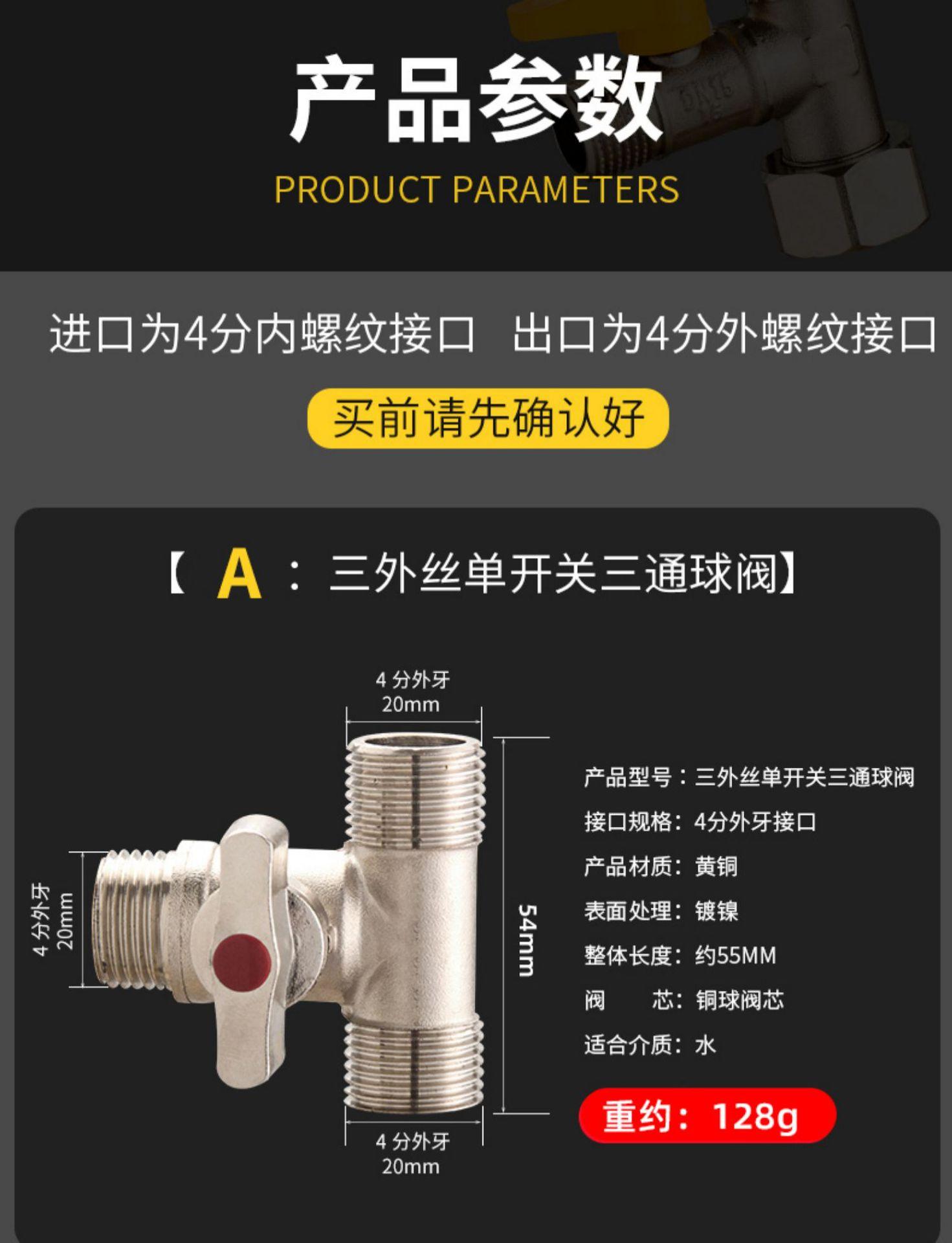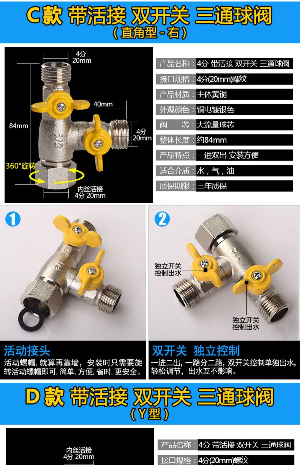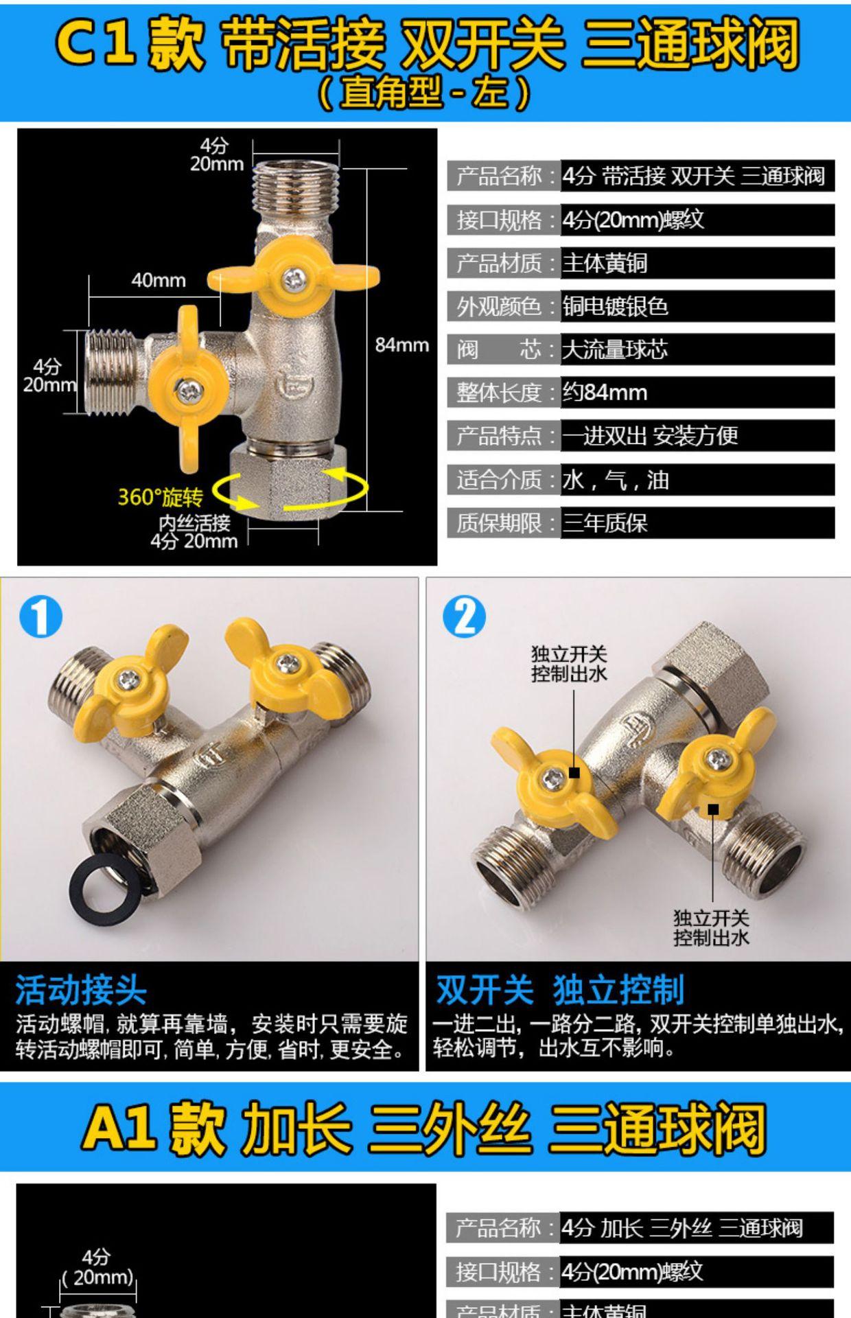 Type a: 4-point three-way ball valve, single switch, three outer wire, Type c: union three-way ball valve with...