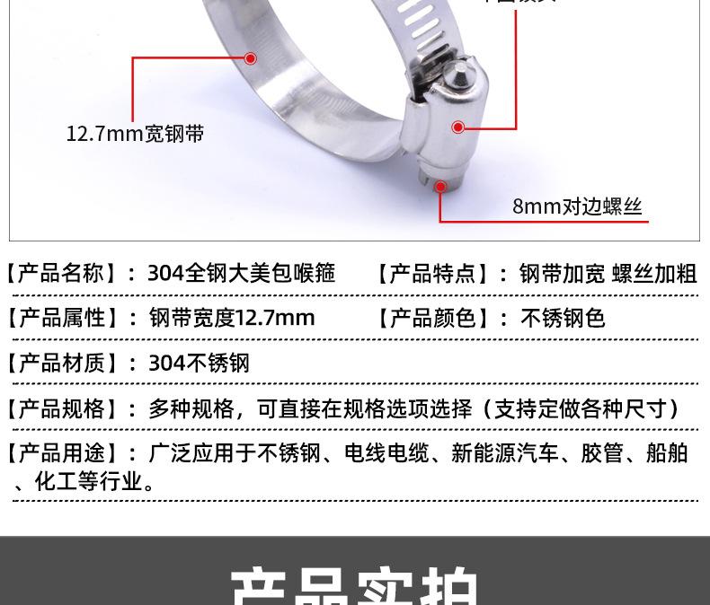 Nueva abrazadera de aro de garganta de acero inoxidable 304, aro de sujeción, abrazadera americana grande, ancho de 12,7 mm