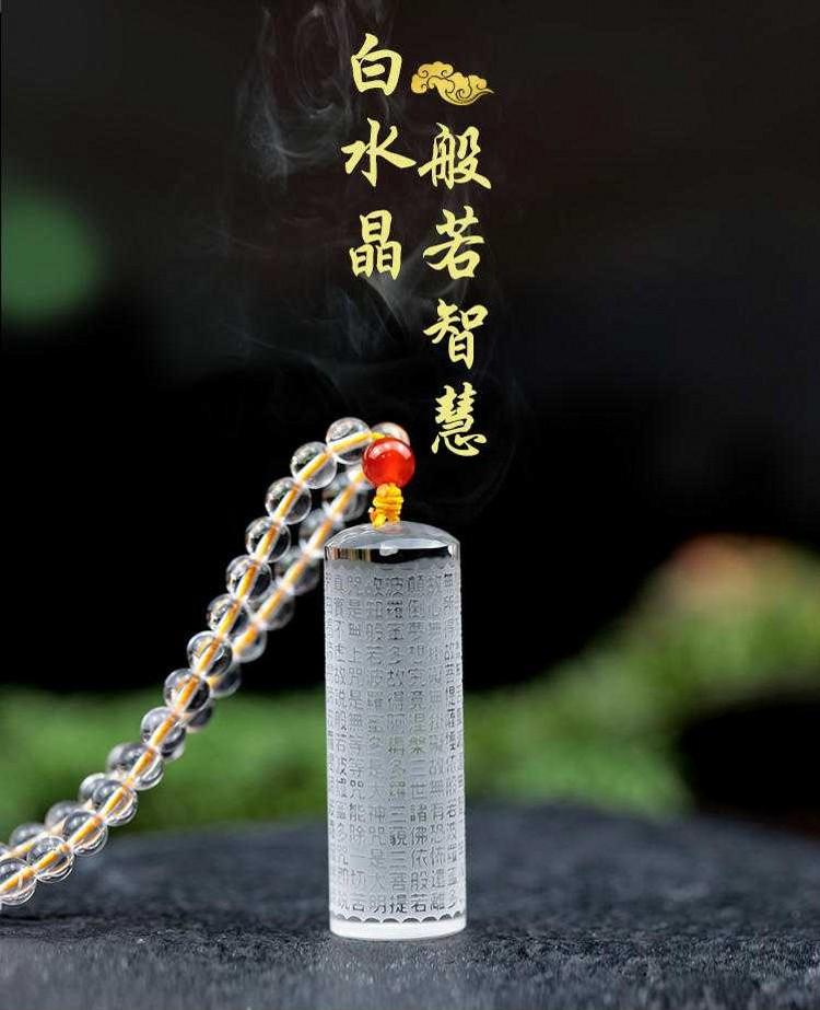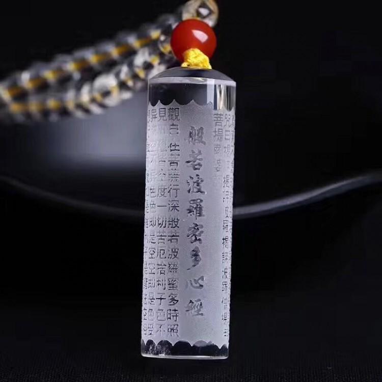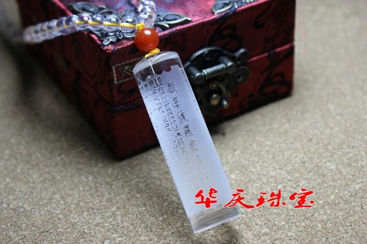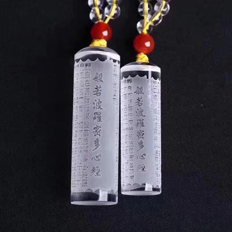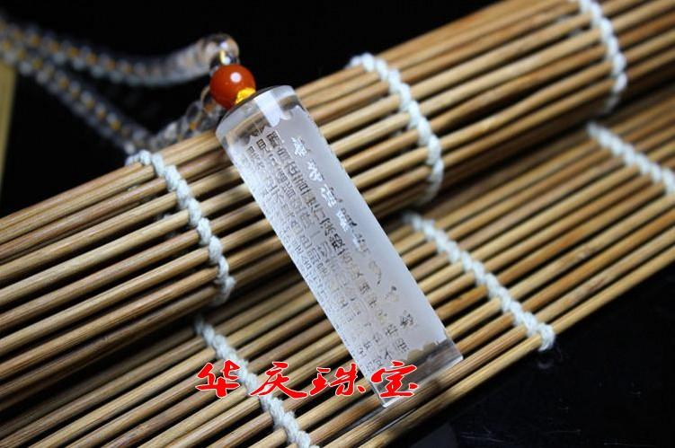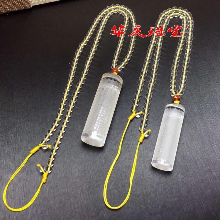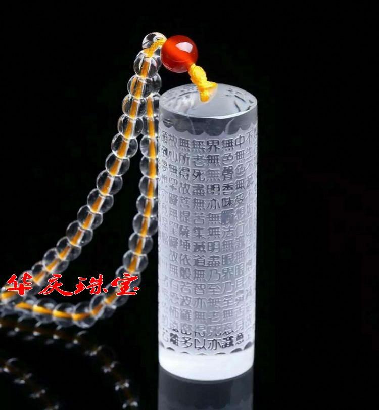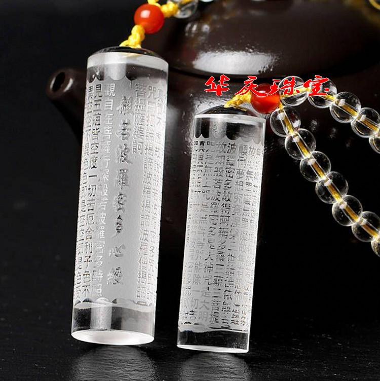 Colgante de cristal blanco natural al por mayor para hombre, collar cilíndrico con sello redondo, Prajna Paramita, Sutra del Corazón, cadena de suéter para hombre y mujer.