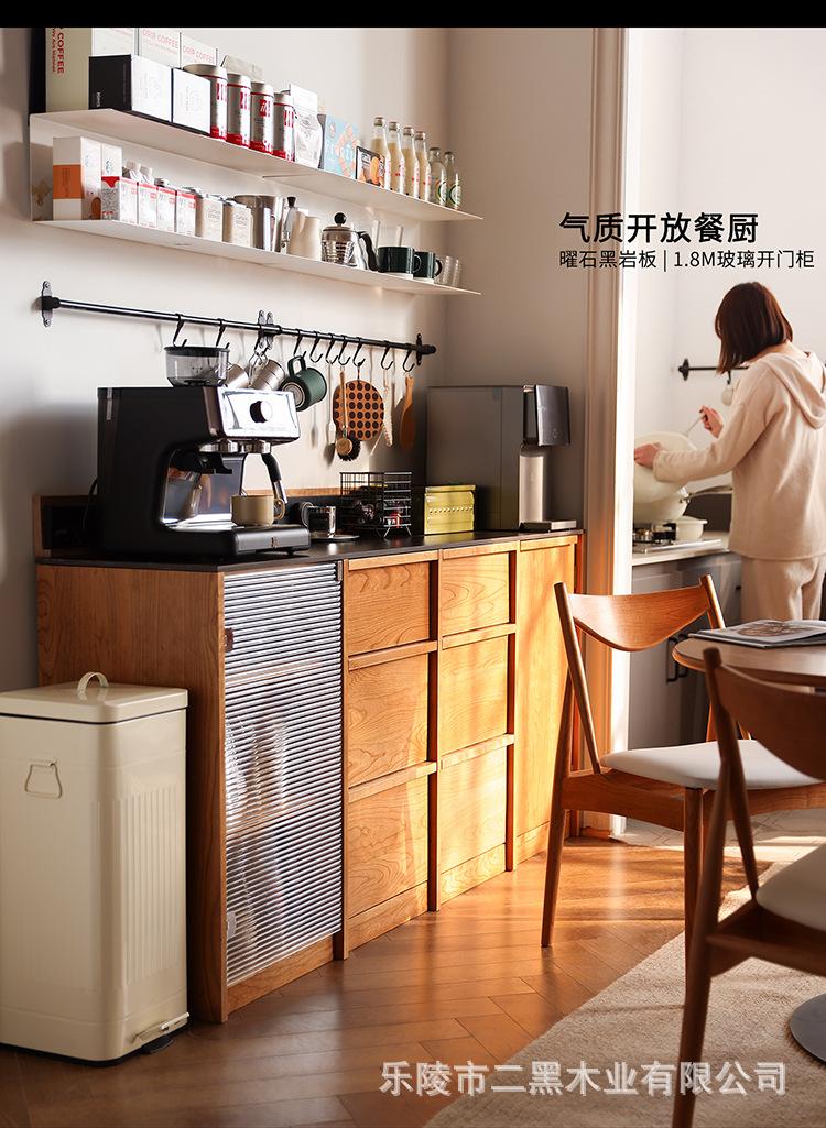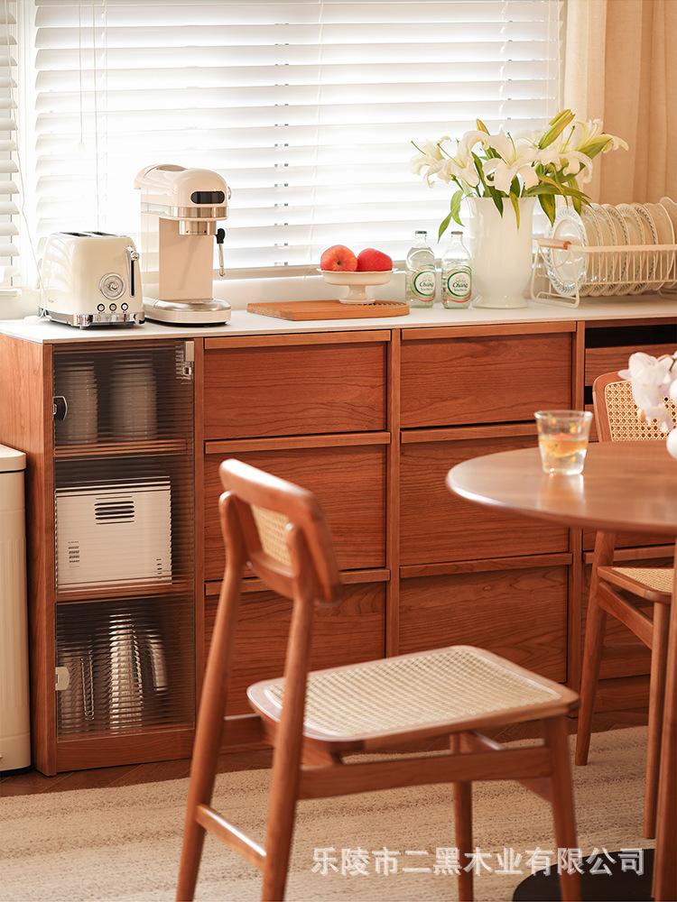 Gabinete bajo gabinete lateral de placa de roca Cerezo madera maciza gabinete de café gabinete lateral para snacks almacenamiento almacenamiento cómoda