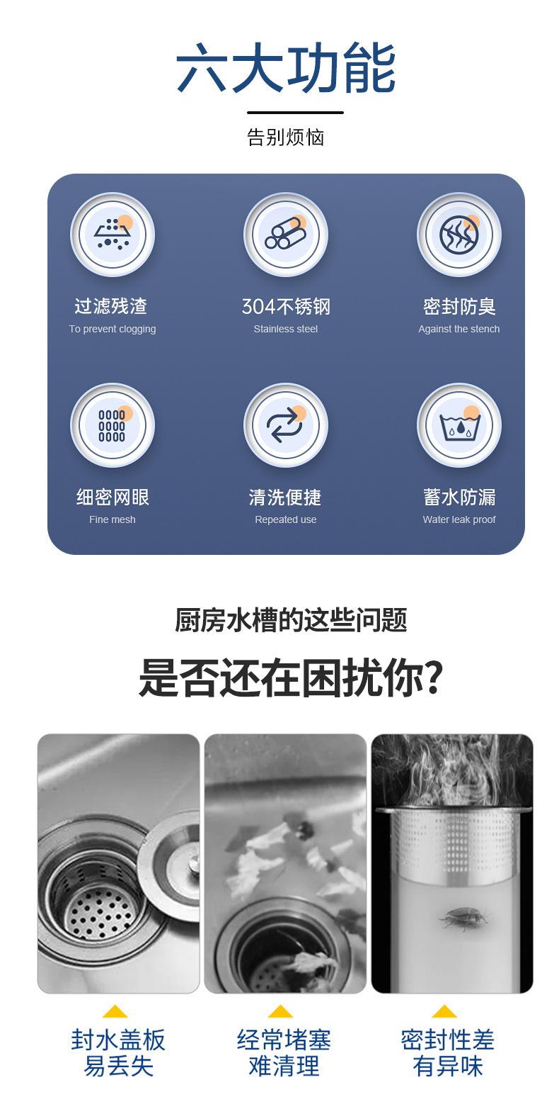 [flagship model] 304 stainless steel double filtration, anti-odor, universal for sinks
