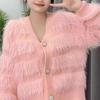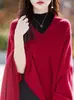 Suéter Nuevo de Primavera y Otoño 2025 con Cuello en V para Mujer, Diseño Holgado tipo Pulóver, Chaqueta tipo Chal de Largo Medio Perezoso a la Moda