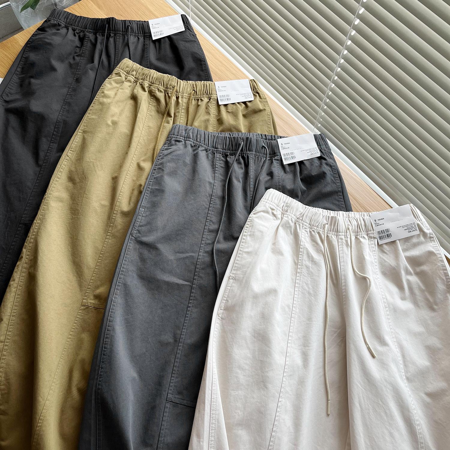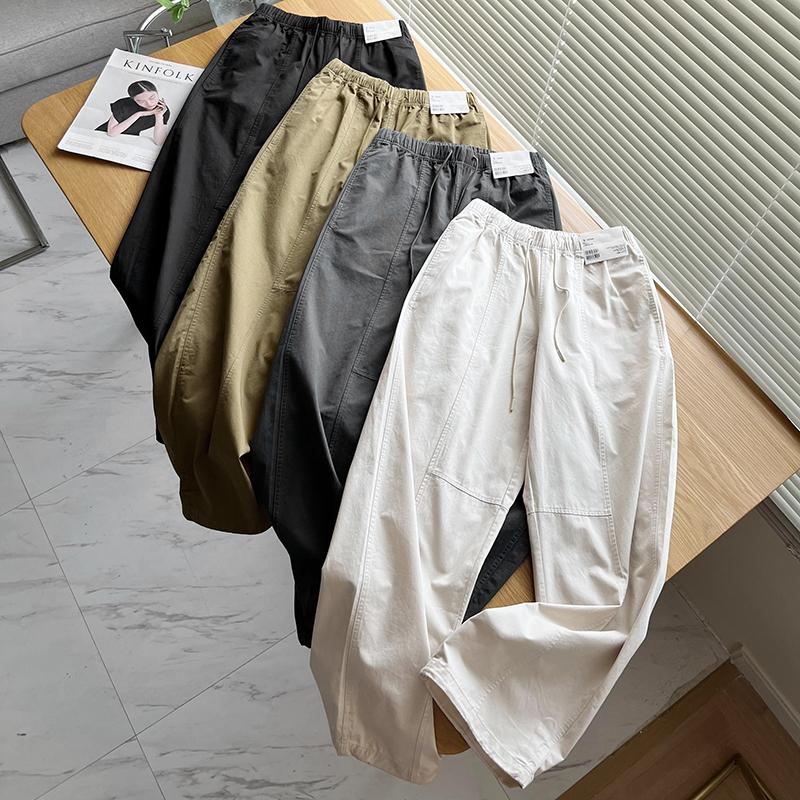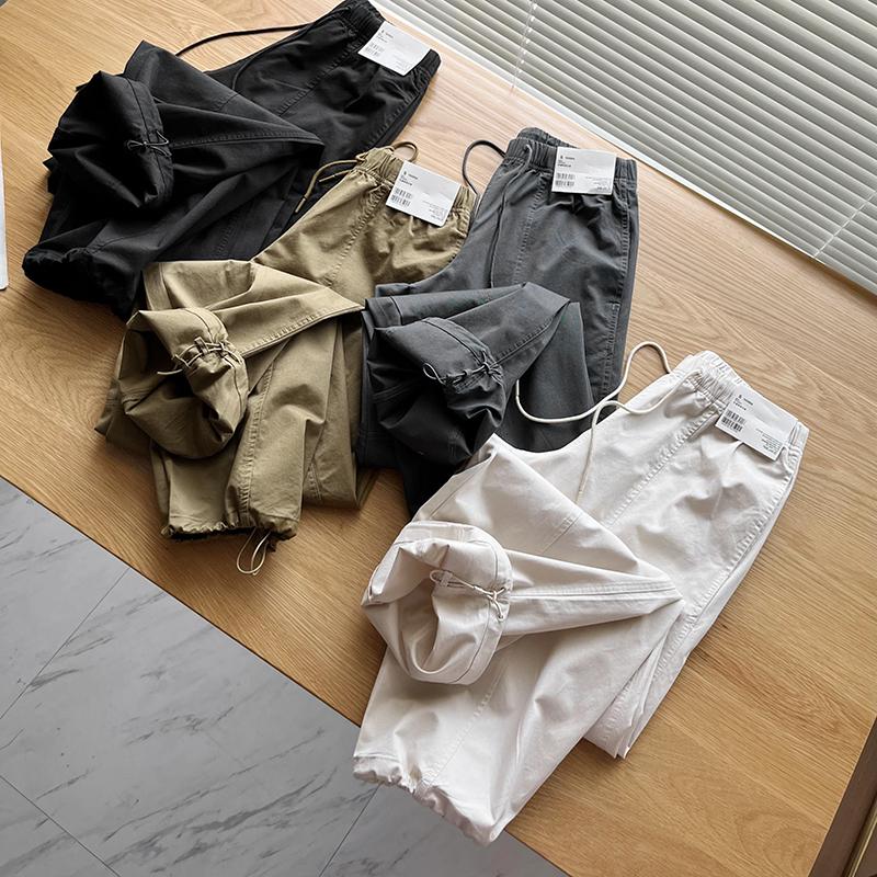 Probador japonés U otoño 2024 elástico cintura alta cordón se puede atar pies dos usos tubo recto utilitario paracaídas pantalones casuales