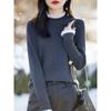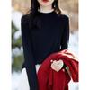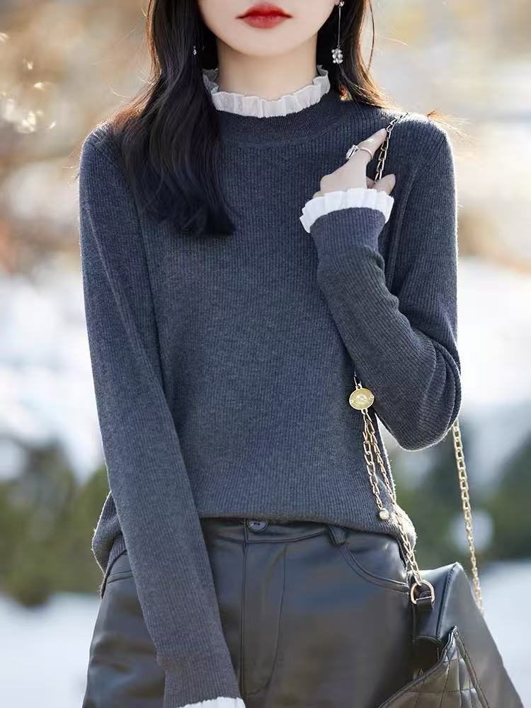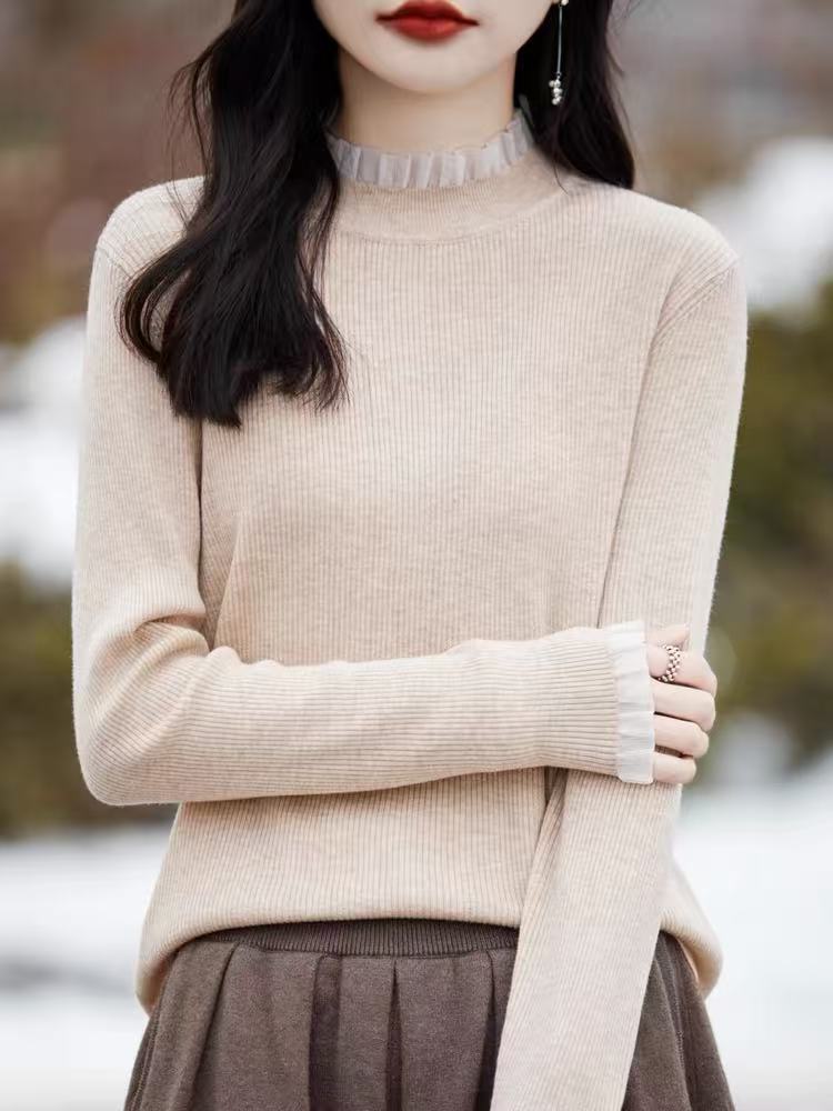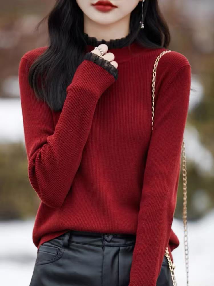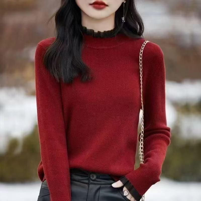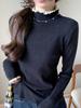 Suéter básico de estilo coreano para otoño e invierno 2025 para mujer, con cuello medio tortuga, encaje de hongo, estilo occidental, interior de color sólido, top de suéter tejido